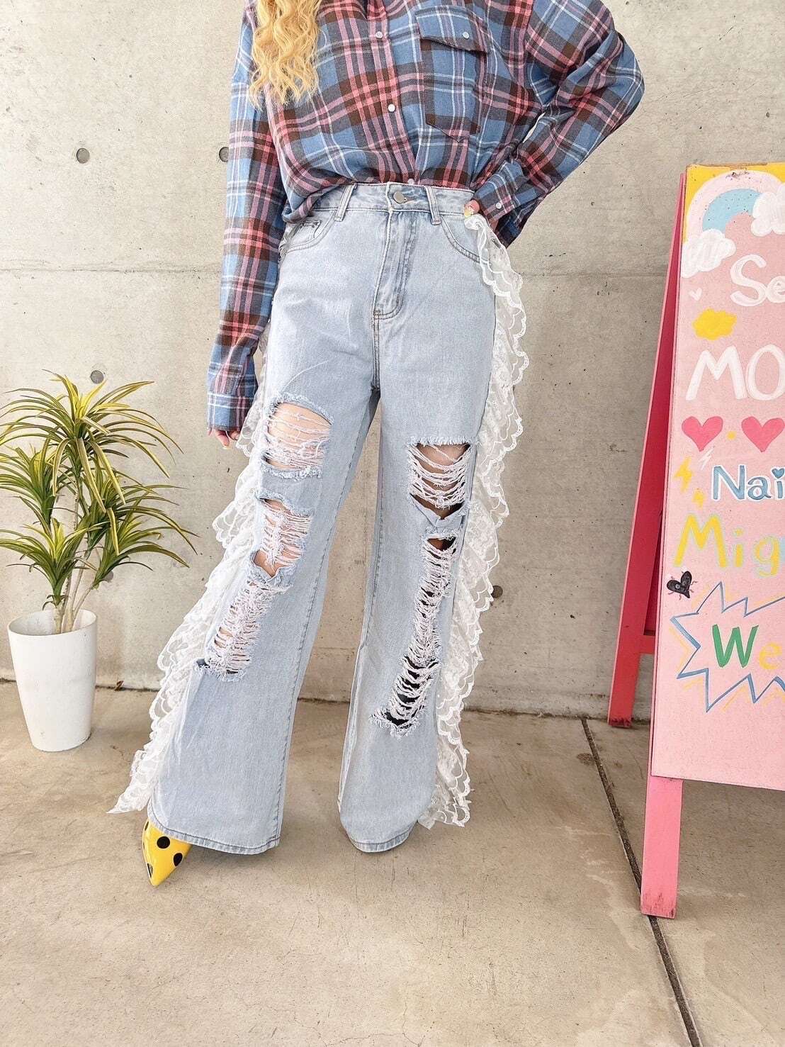 Star☆Pinkフリルパンツ/韓国/レディースファッション/可愛い/おしゃれ/ラフ/カジュアル/春/夏/秋(5-202)