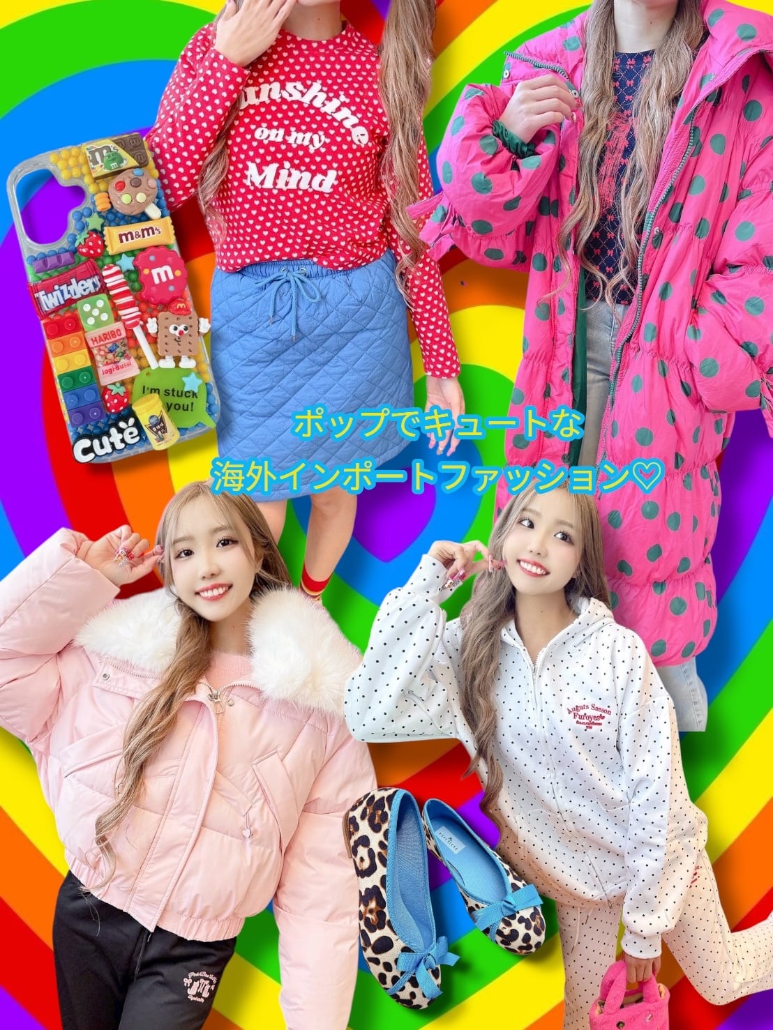ピンクドットダウンコート♡韓国/レディースファッション/アウター/柄/防寒/コート/ロング(1-184)