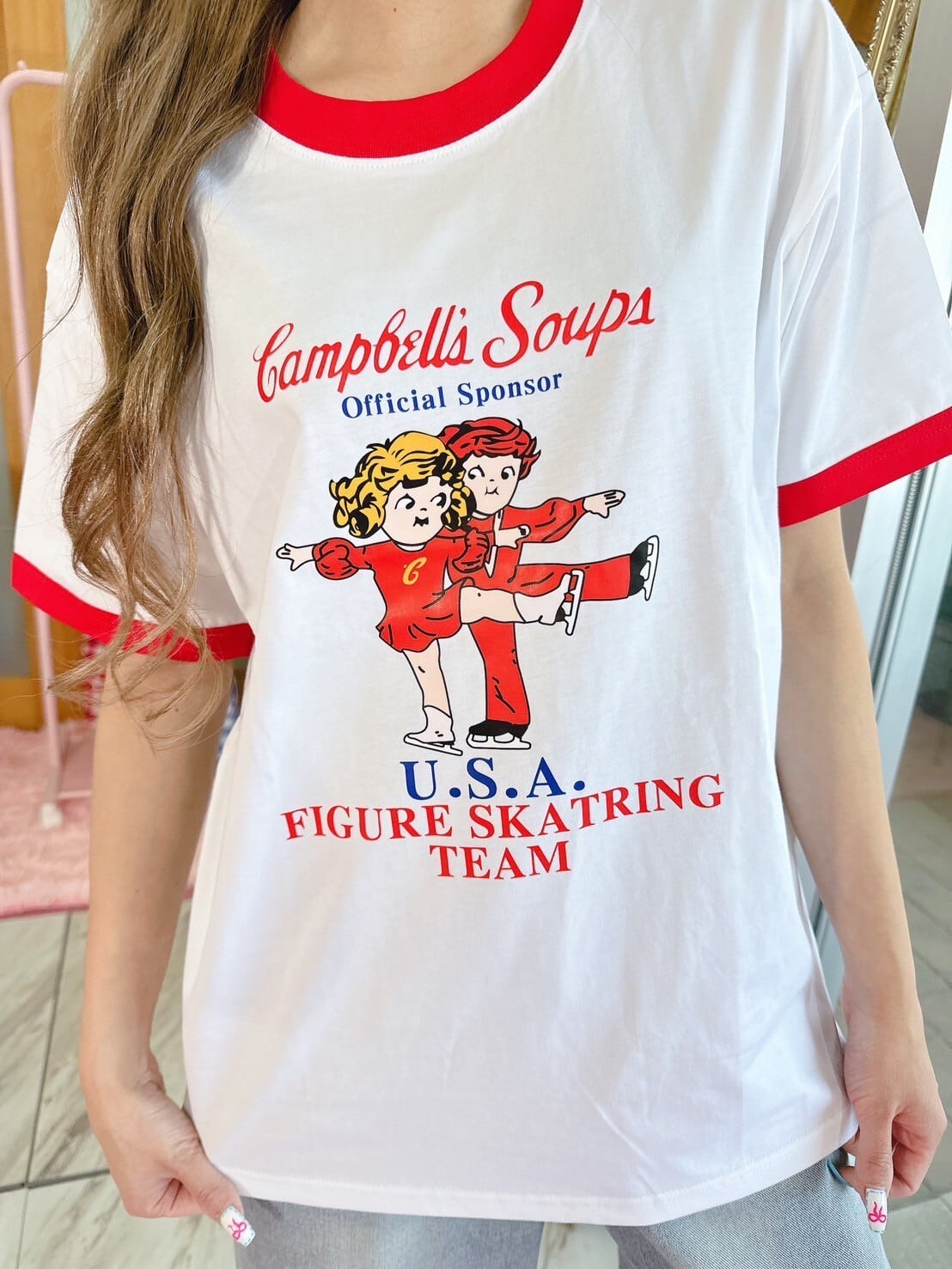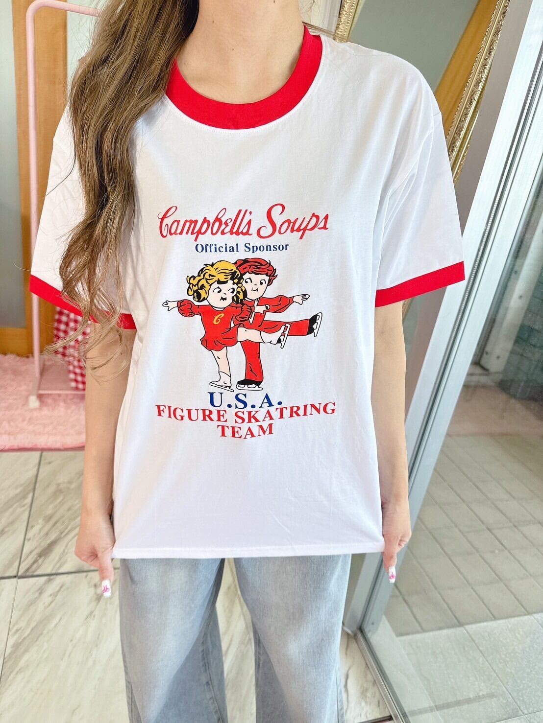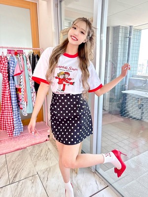 RedカジュアルラインロゴTシャツ/韓国/レディースファッション/可愛い/おしゃれ/ラフ/可愛い/赤/女の子/半袖/春/夏(3-362)
