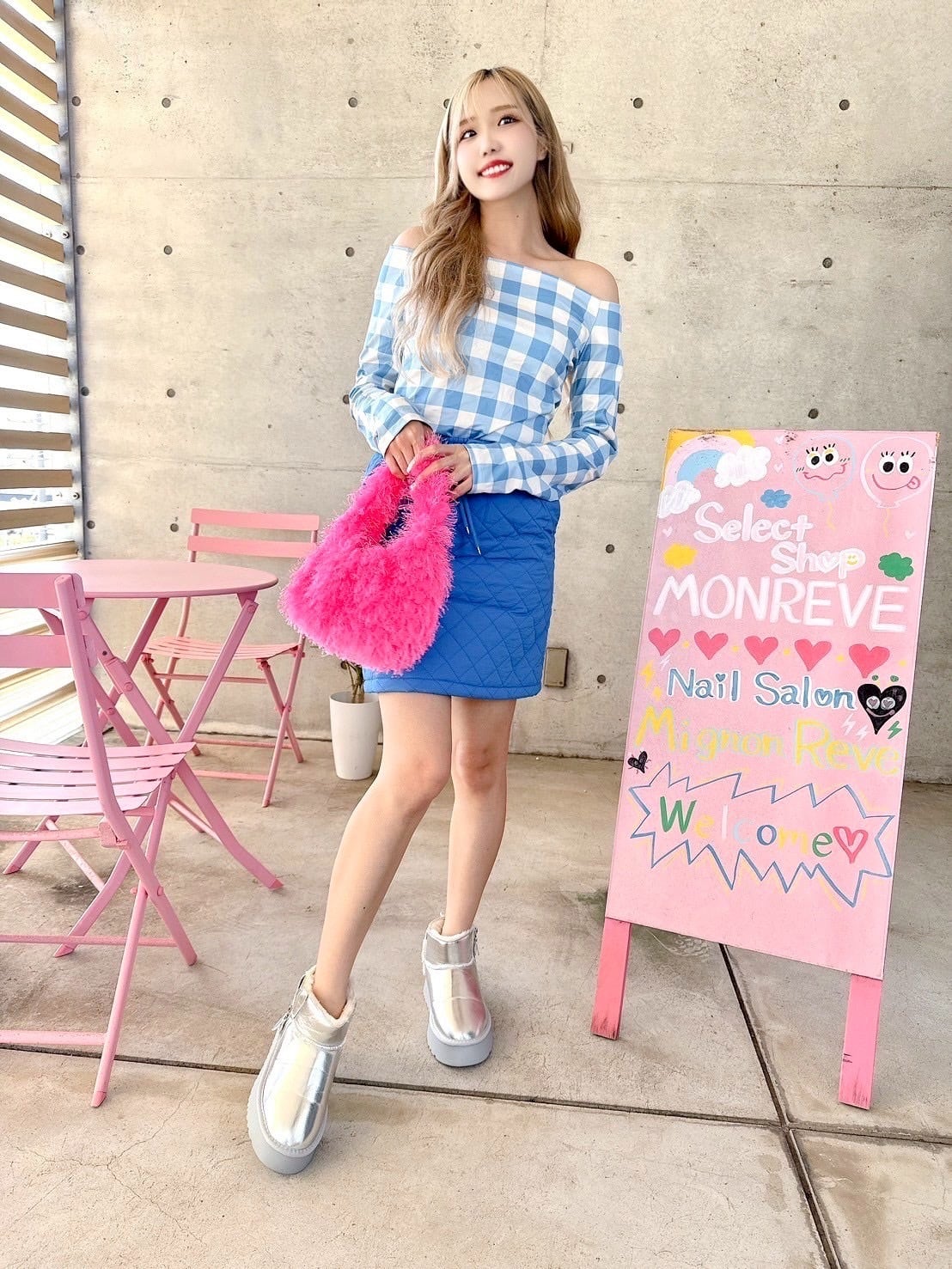 大人フェミニンな雰囲気のギンガムチェックオフショルトップス♡