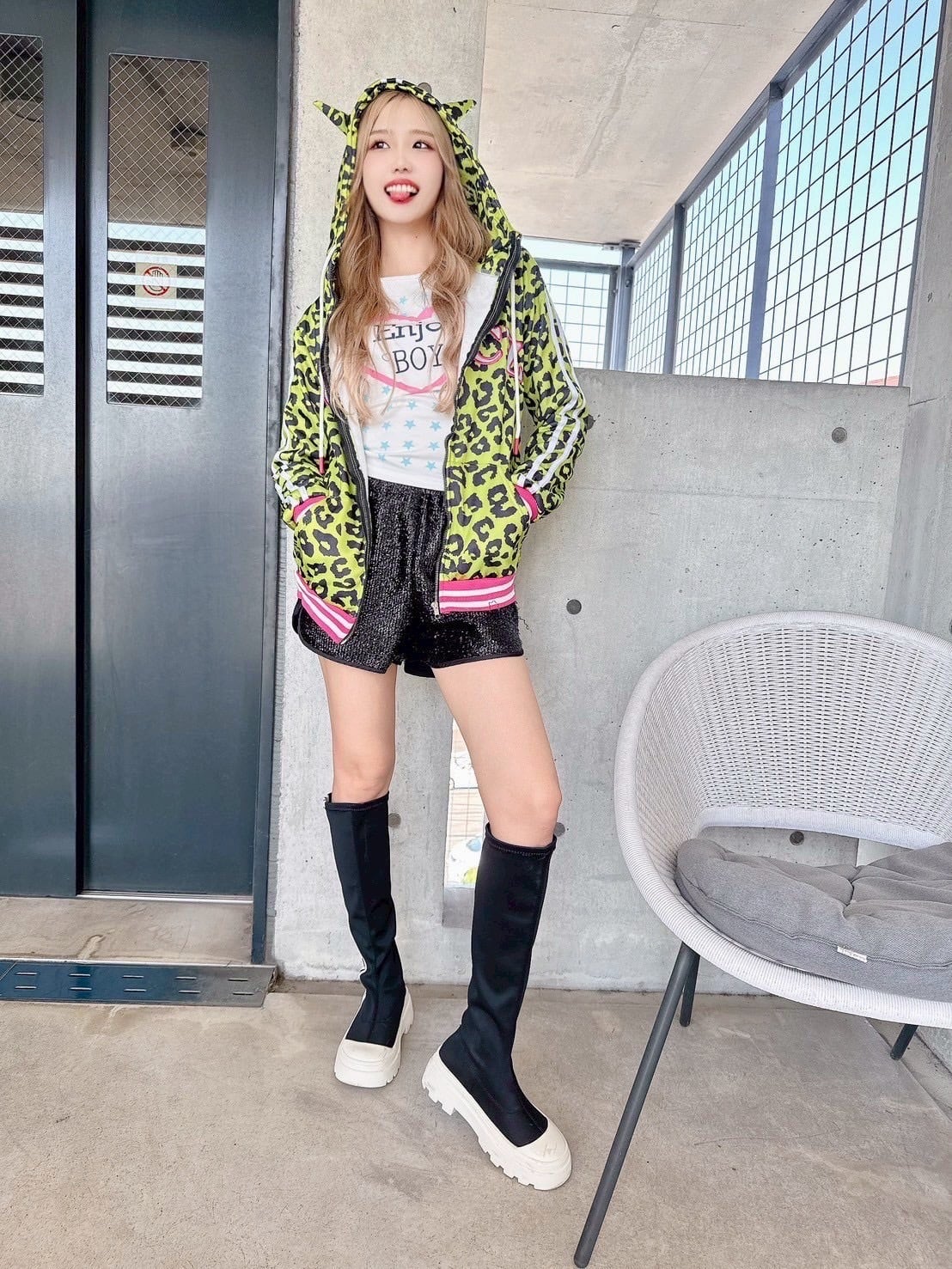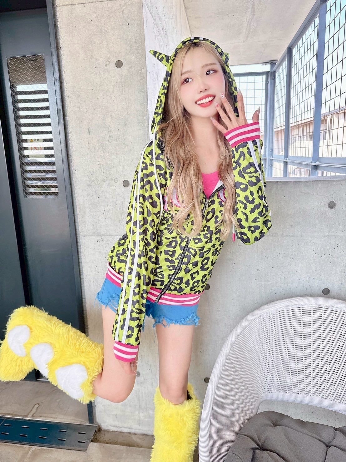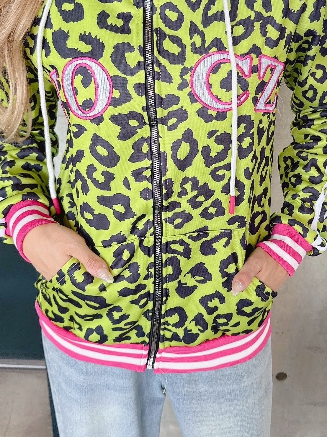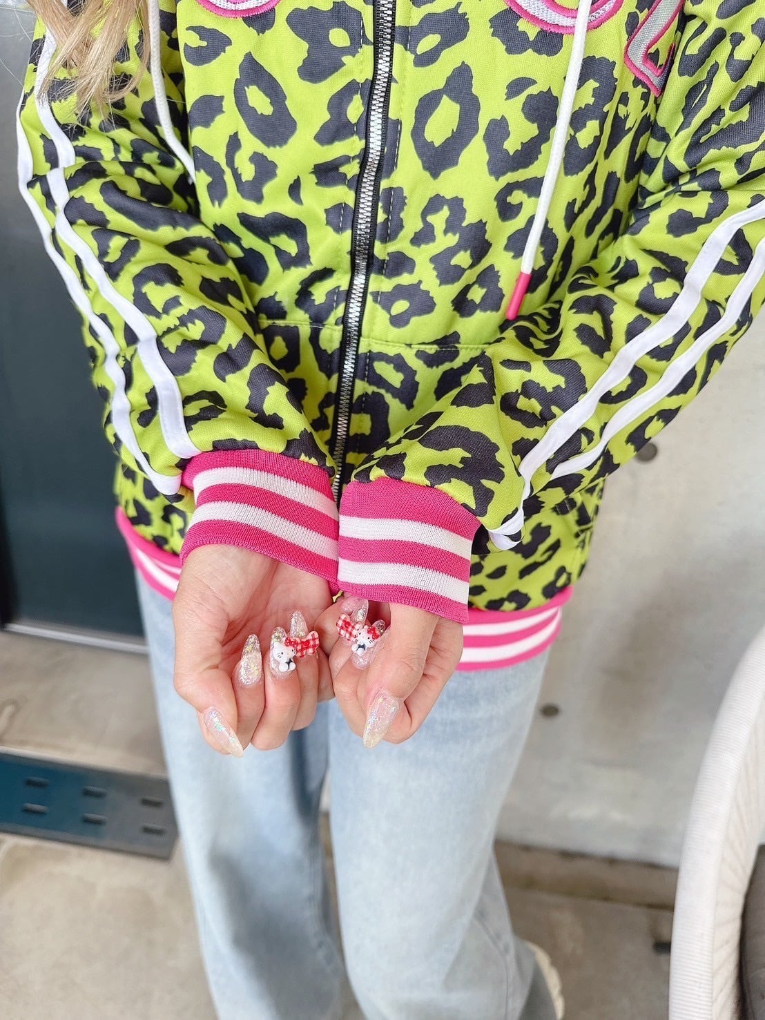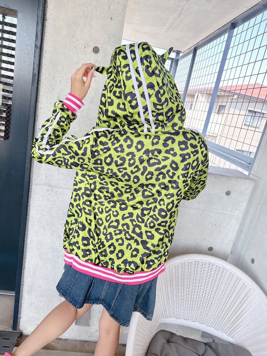 レオパードカジュアルラインパーカー/韓国/レディースファッション/可愛い/おしゃれ/ギャル/蛍光/ヒョウ柄/秋/冬(1-174)