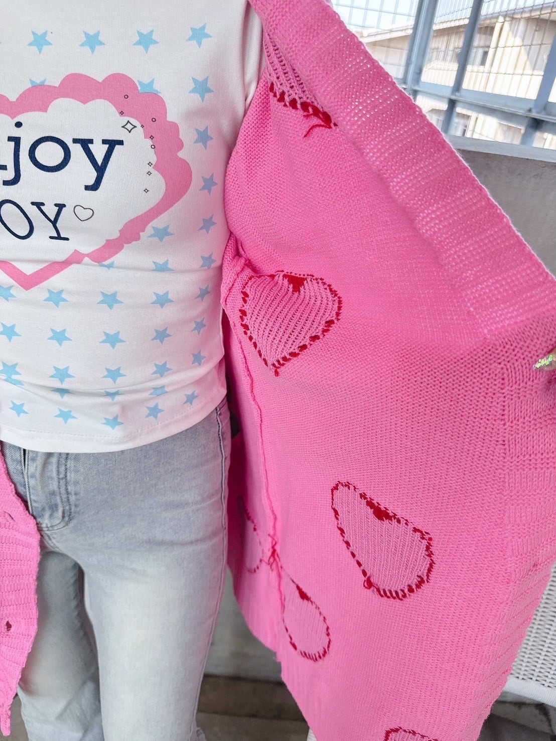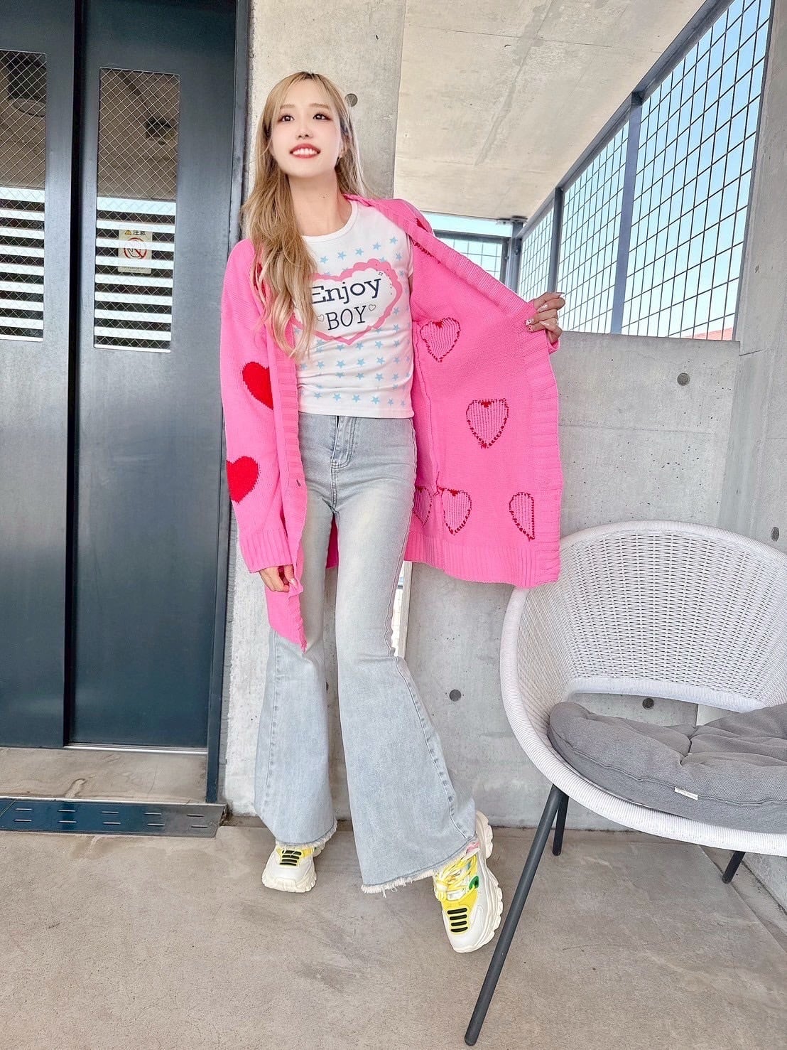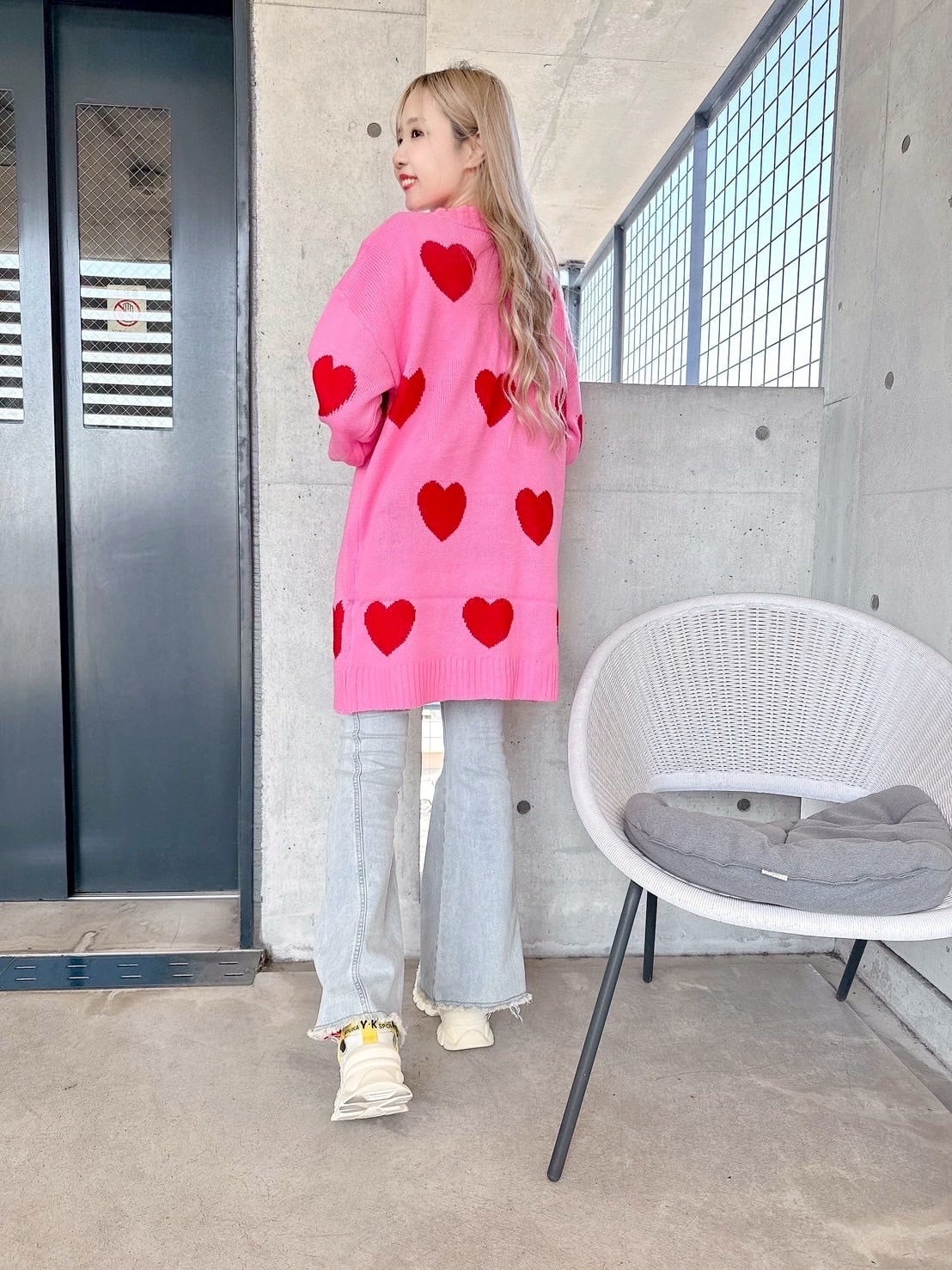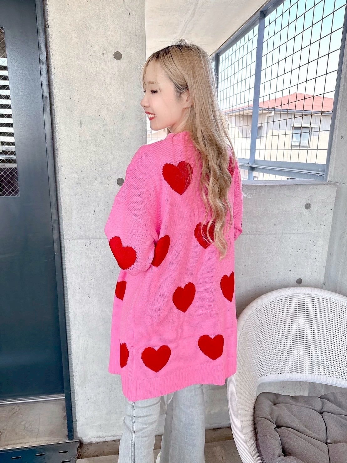Heartロングカーディガン/韓国/レディースファッション/可愛い/おしゃれ/個性/POP/派手/ピンク/春/秋/冬