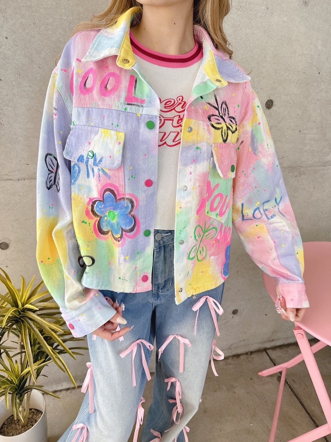 ロゴが魅力のカラフルペイントデニムジャケット♡