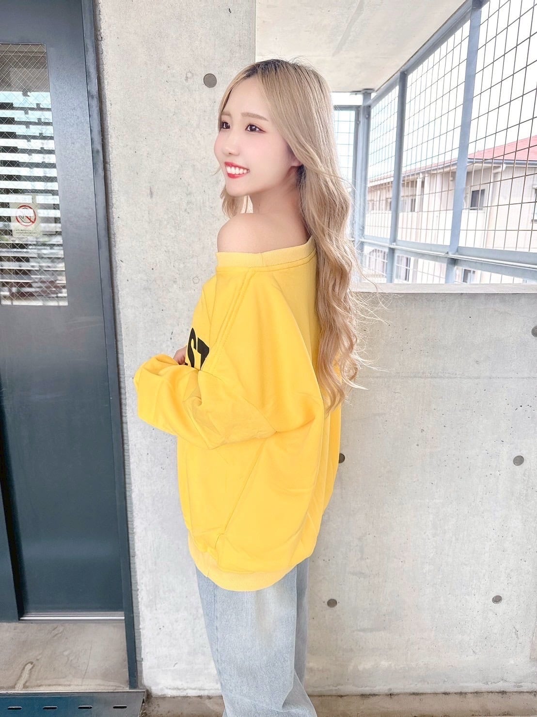 カジュアルな雰囲気をプラスするYellowカジュアルオフショルトレーナー♡