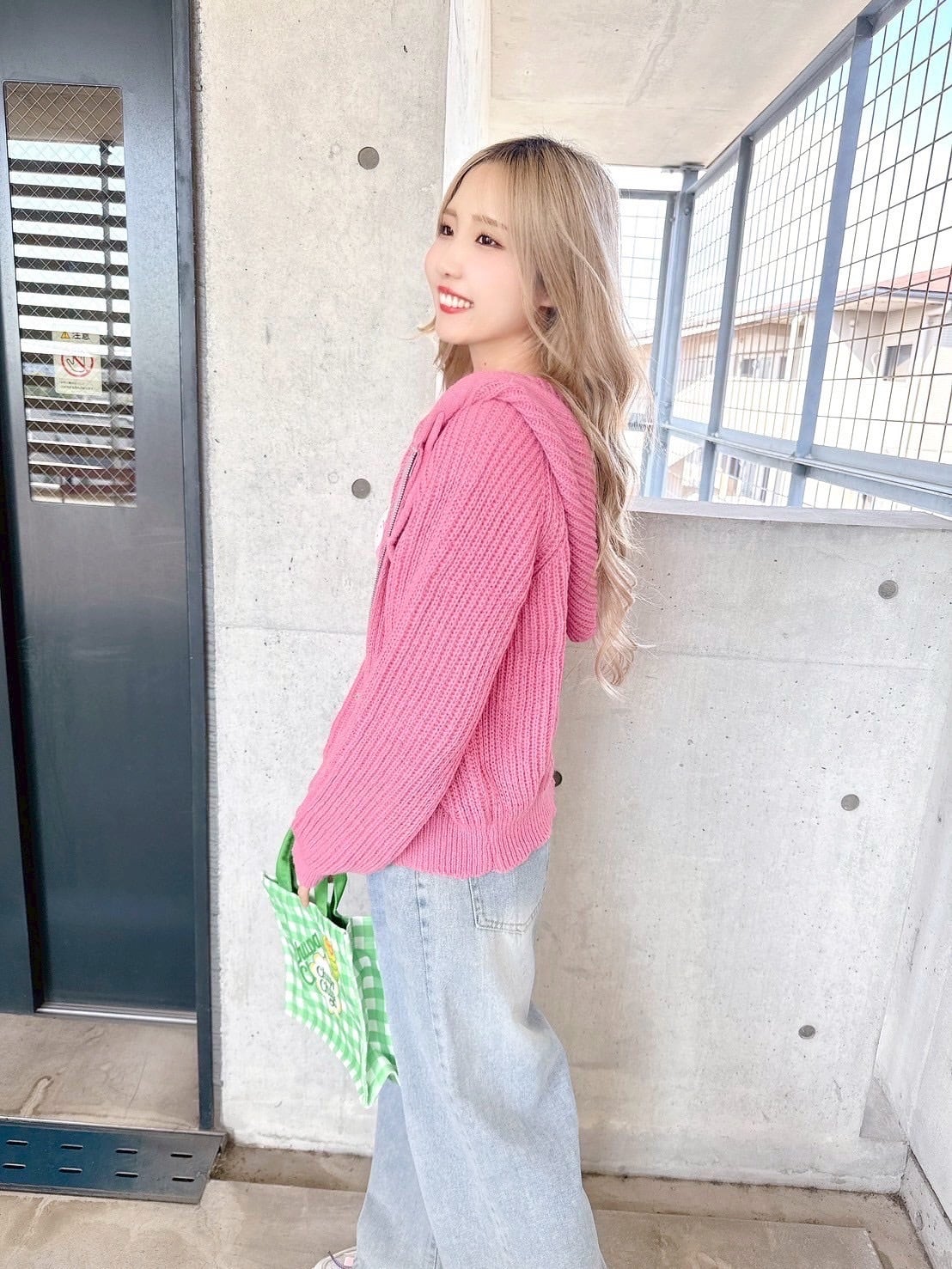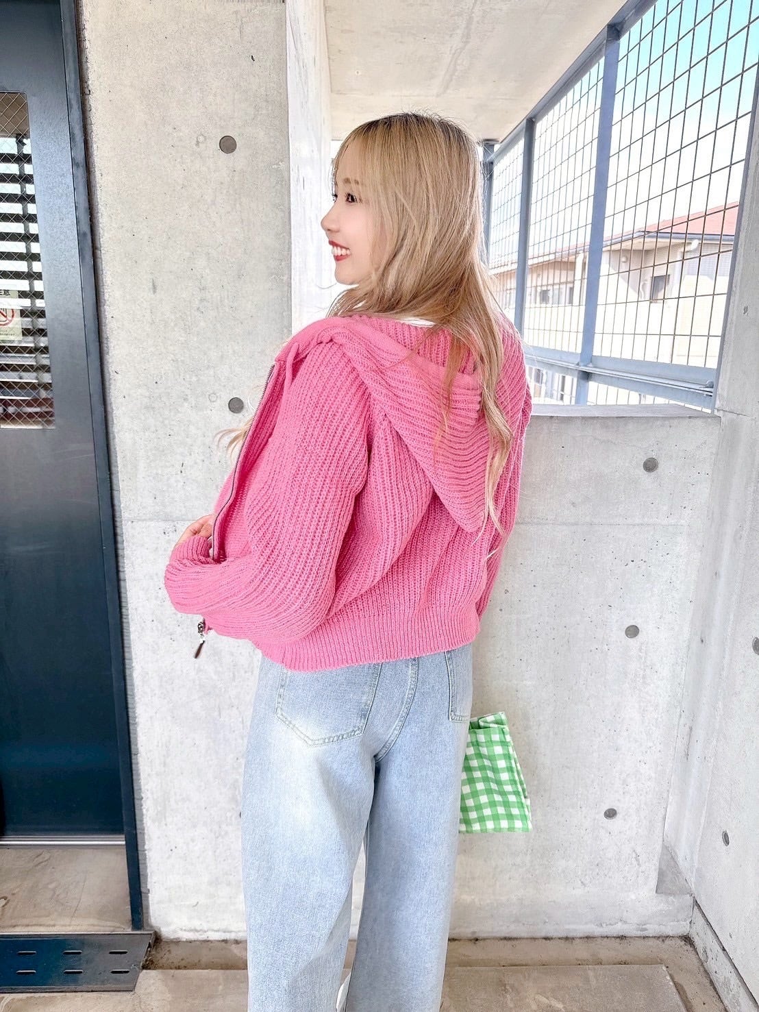 アクセントをプラスするPinkニットパーカー♡