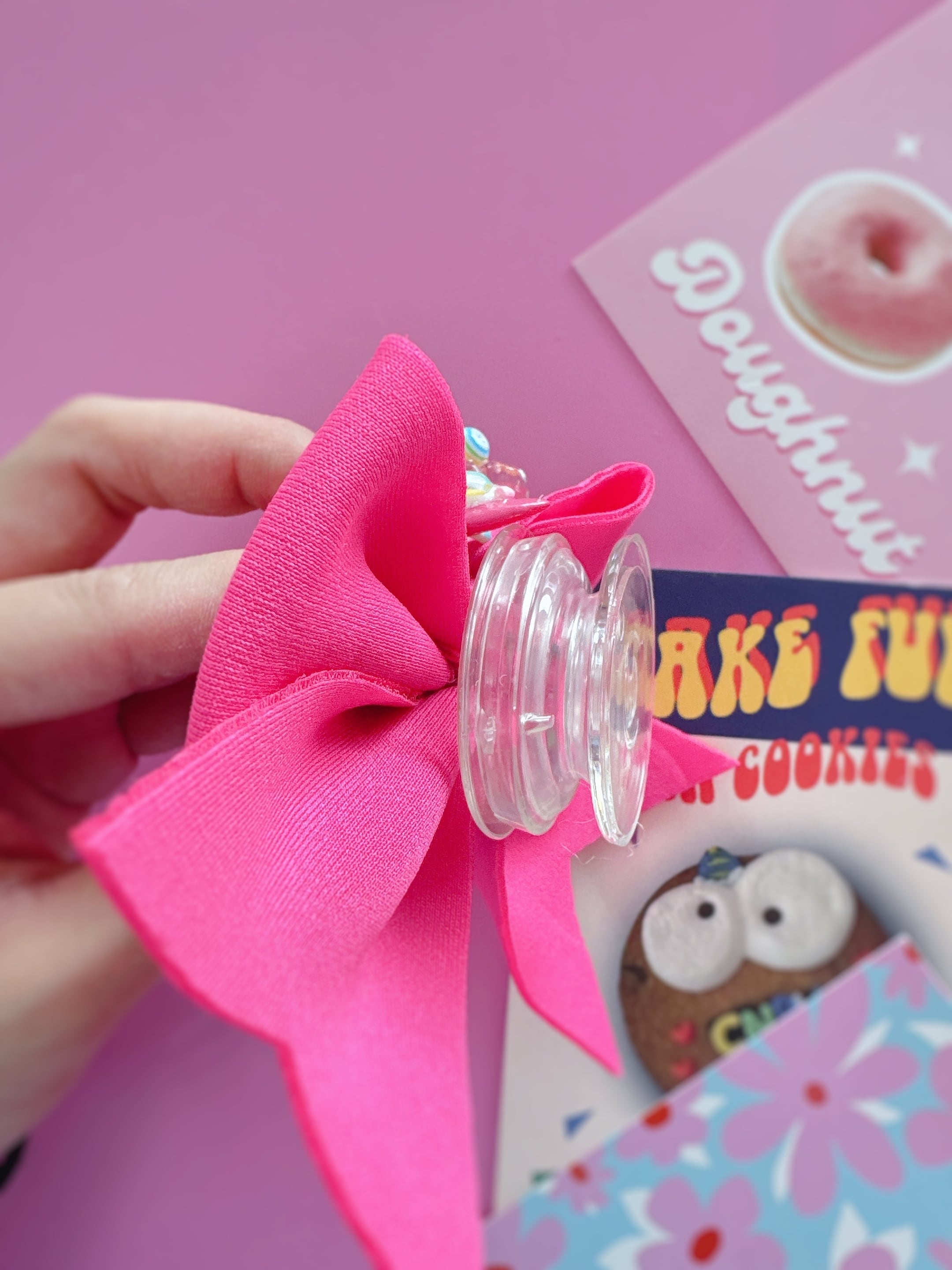 大きなリボンのスマホグリップがついたデザイン♡