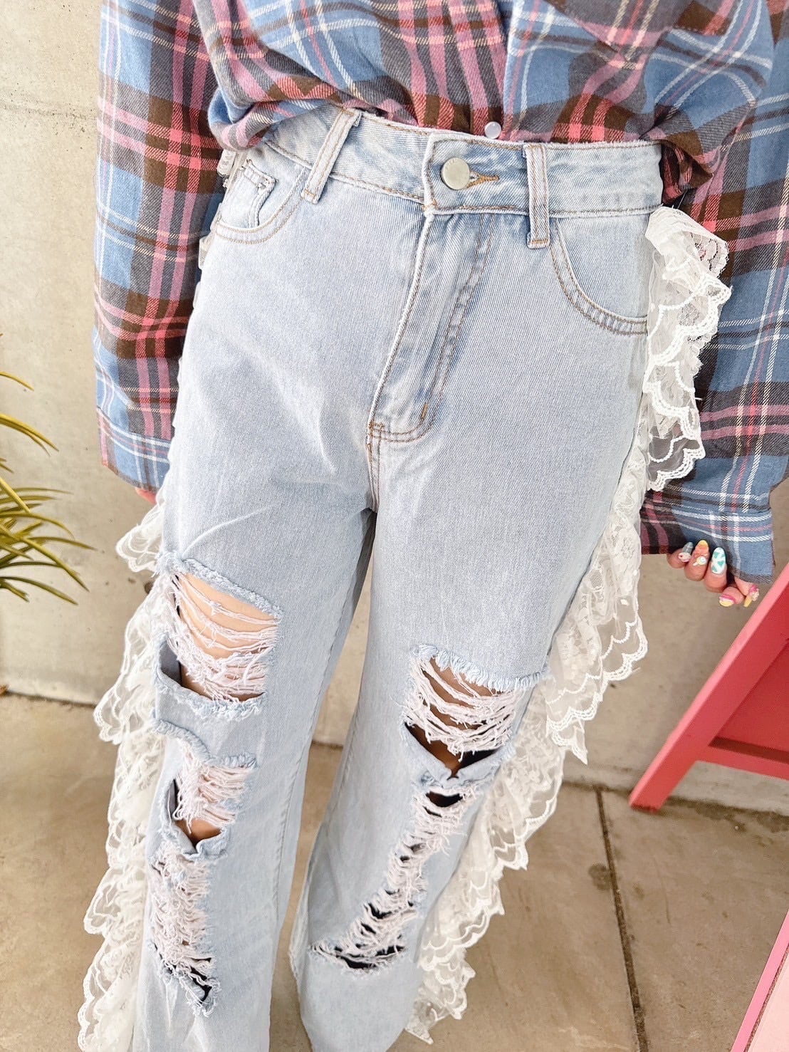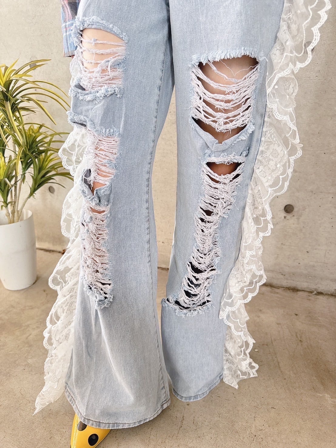 サイドフリルデニムパンツ♡/韓国/レディースファッション/可愛い/おしゃれ/ラフ/カジュアル/シンプル/派手/個性/春/秋/冬(5-196)