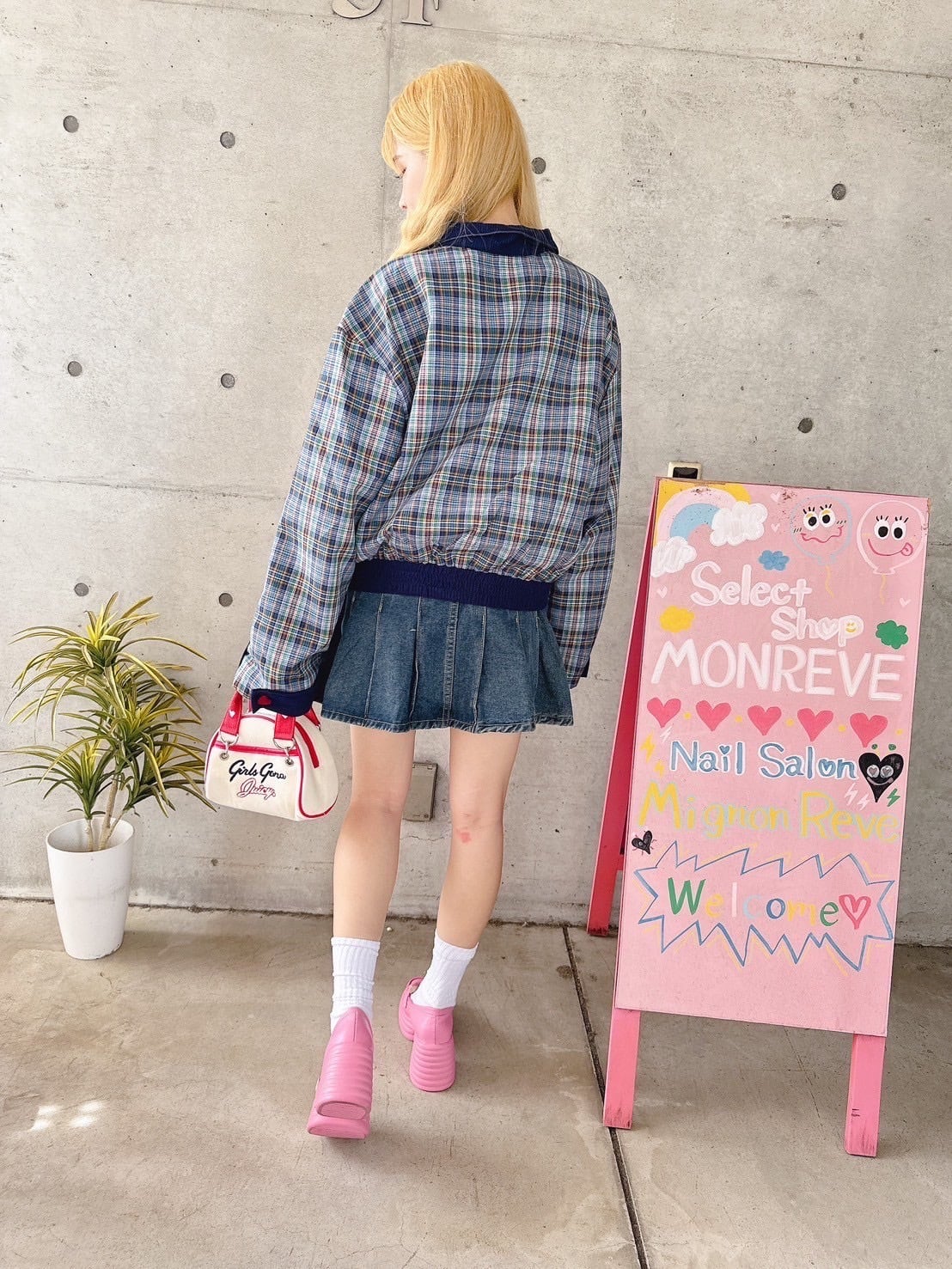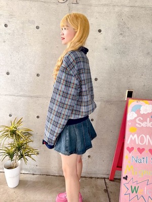 Heart♡チェックブルゾン/韓国/レディースファッション/可愛い/おしゃれ/カジュアル/ラフ/春/秋(1-177)