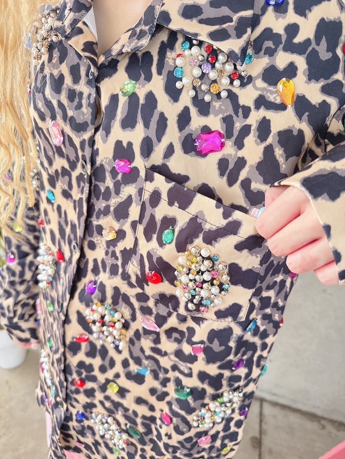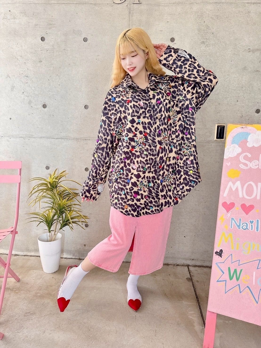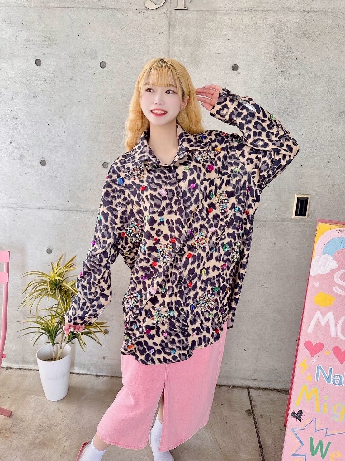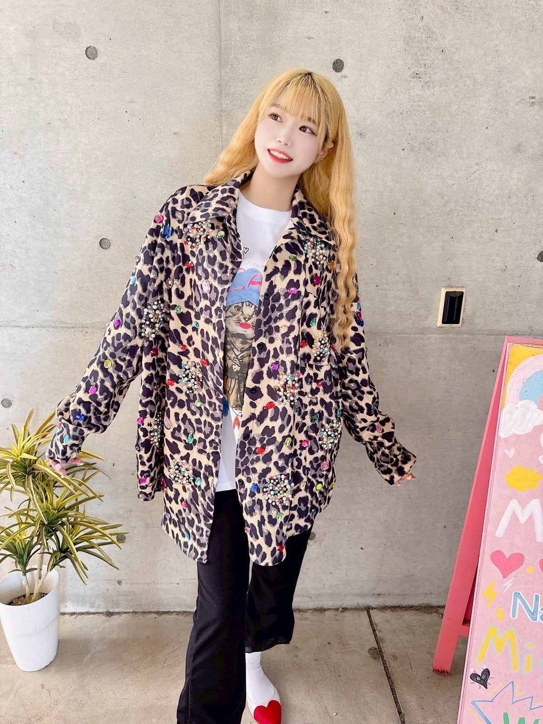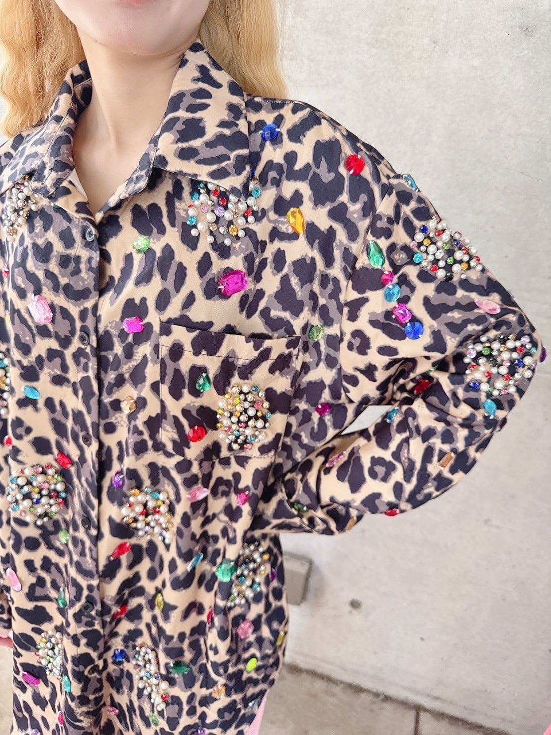 レオパードビジューシャツ/韓国/レディースファッション/可愛い/おしゃれ/ラフ/カジュアル/春/秋(2-059)