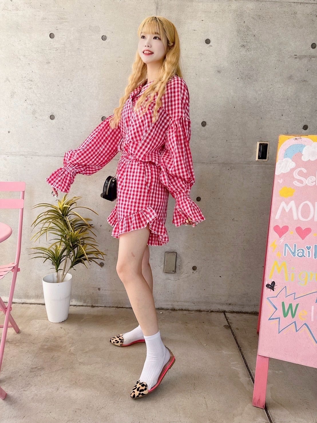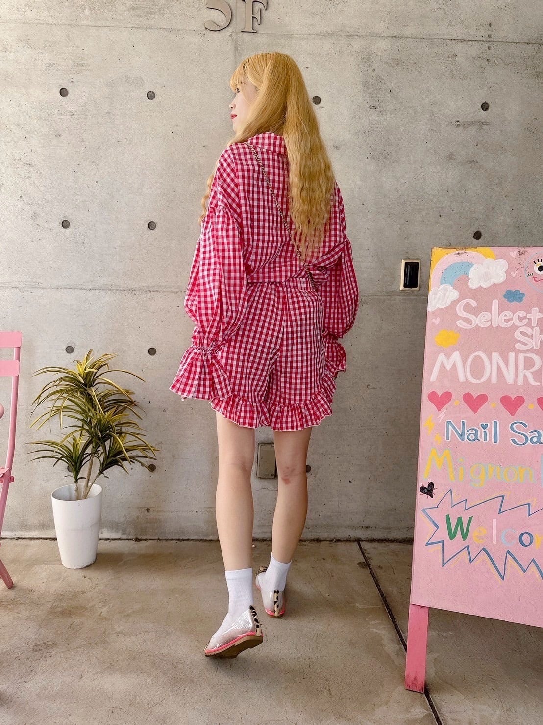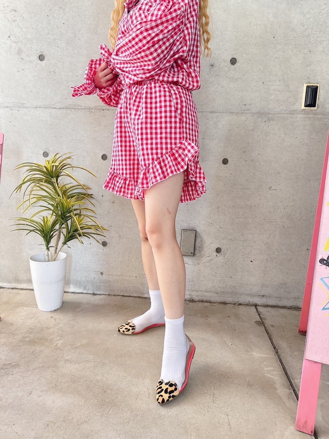 春夏にぴったりのRedブロックチェックセットアップ♡