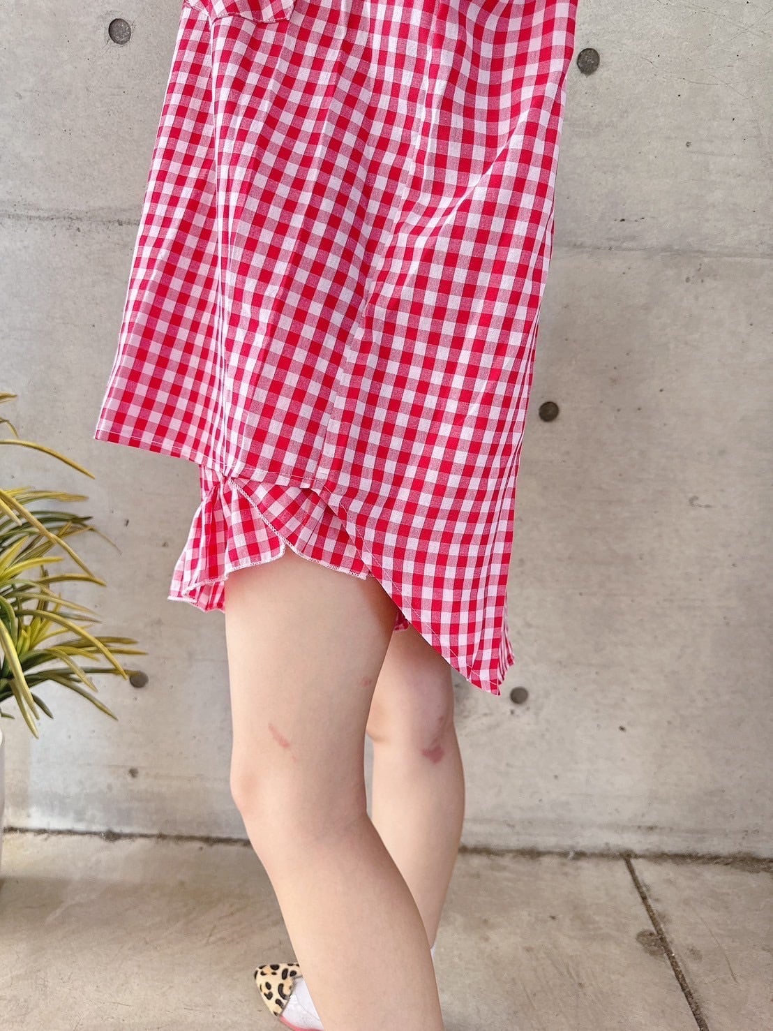 鮮やかな赤のブロックチェックが、コーディネートを一気に華やかにしてくれます♡