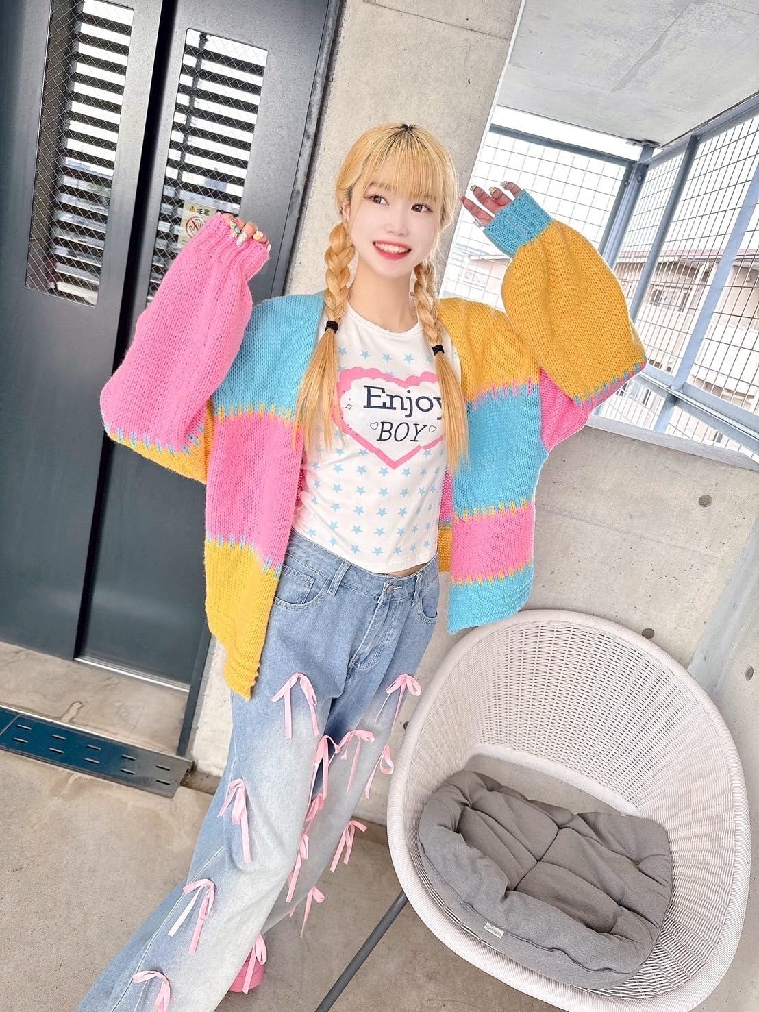 パステルボーダーカーディガン♡/韓国/レディースファッション/可愛い/おしゃれ/ラフ/カジュアル/春/秋(1-178)