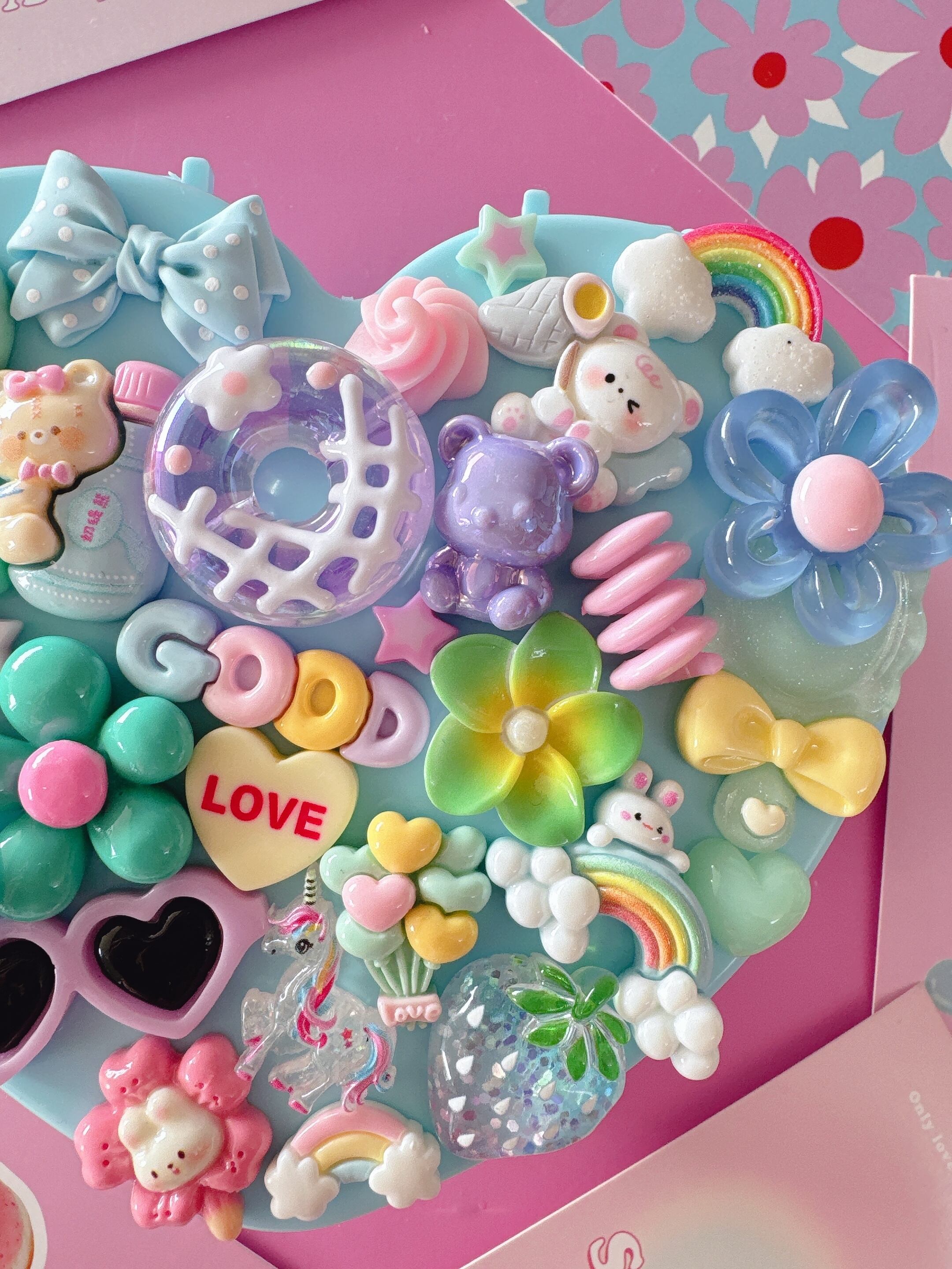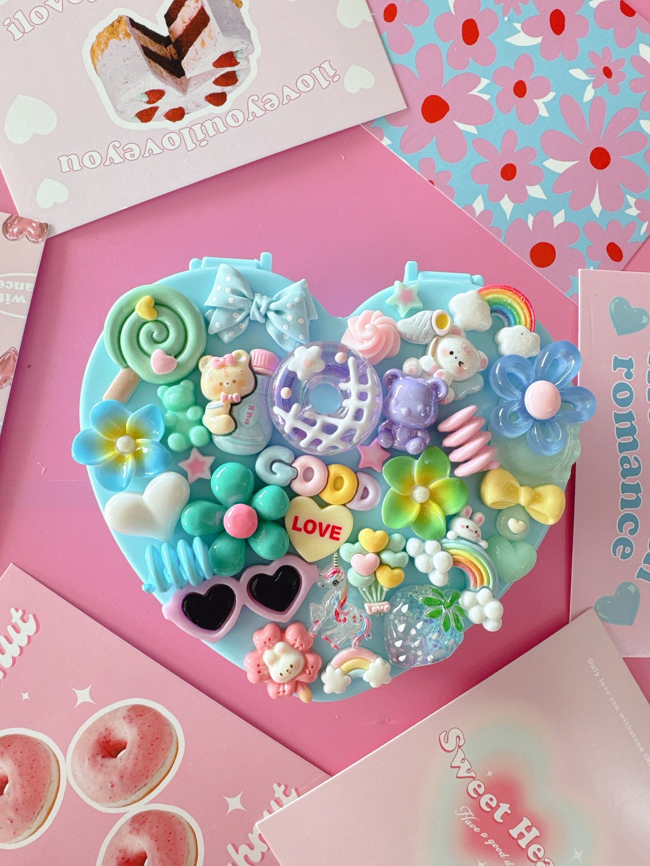 統一感の色合いと可愛いパーツで埋め尽くされた小物ケースデコ♡