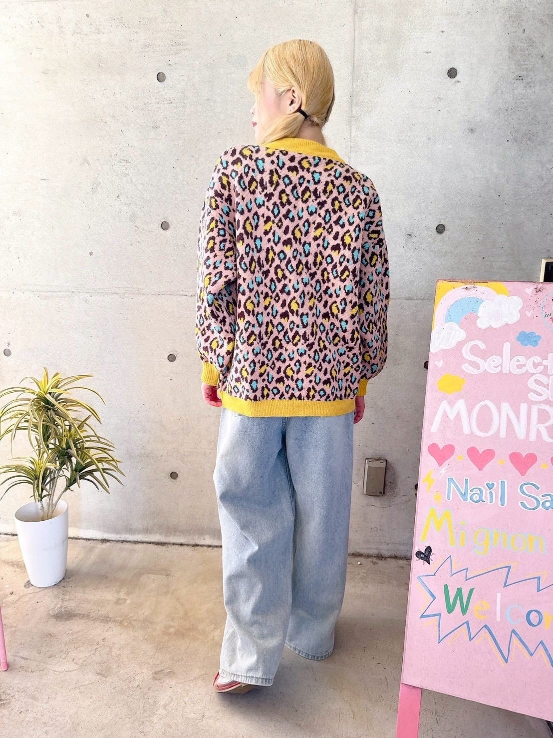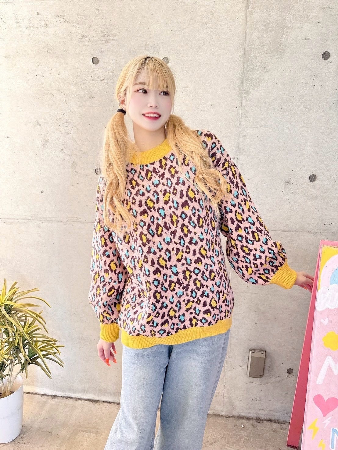 Pink×Yellowレオパードニットトップス♡/韓国/レディースファッション/可愛い/おしゃれ/ラフ/カジュアル/春/秋/冬(6-225)