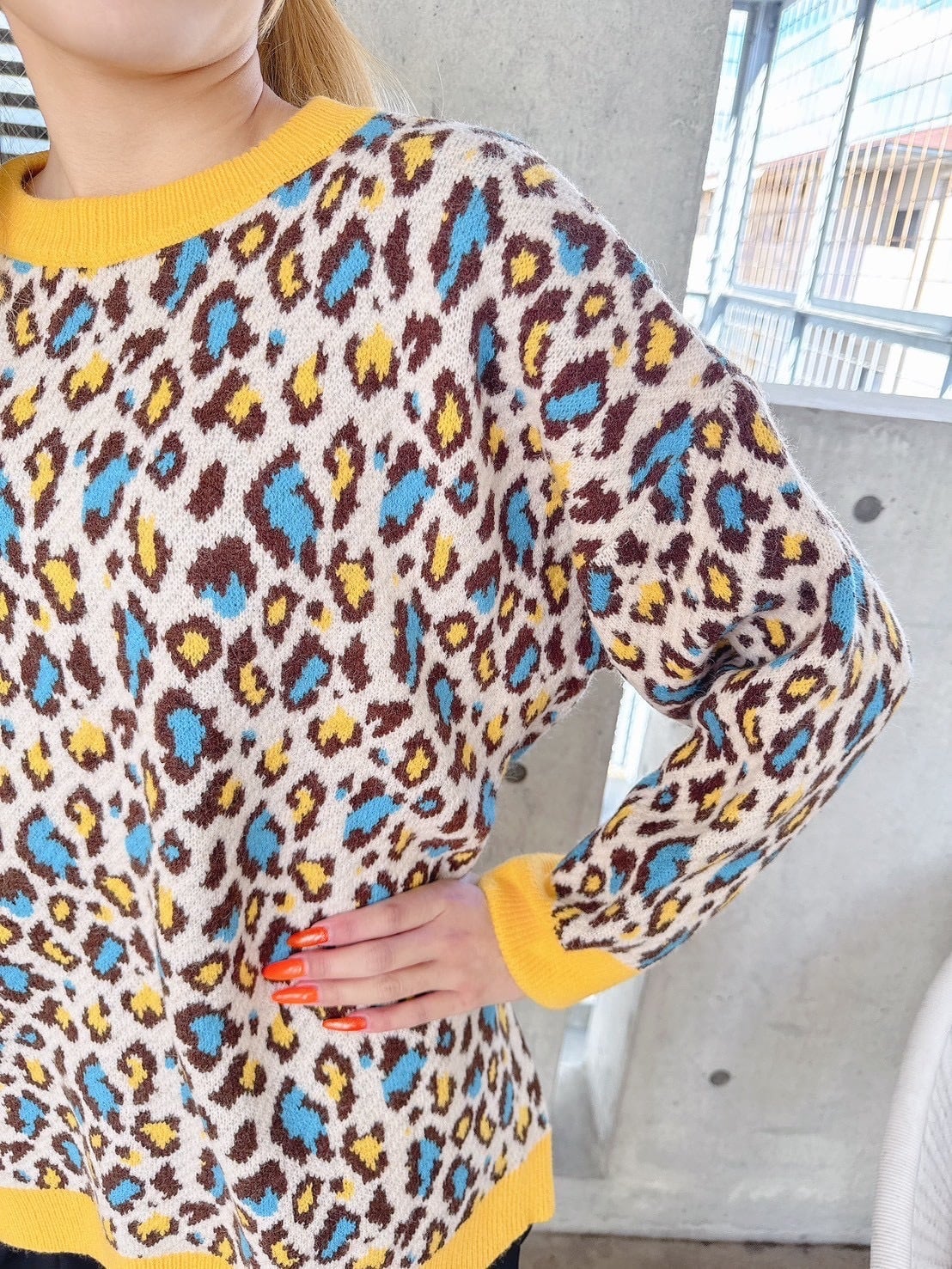 White×Yellowレオパードニットトップス♡/韓国/レディースファッション/可愛い/おしゃれ/ラフ/カジュアル/春/秋/冬(6-227)