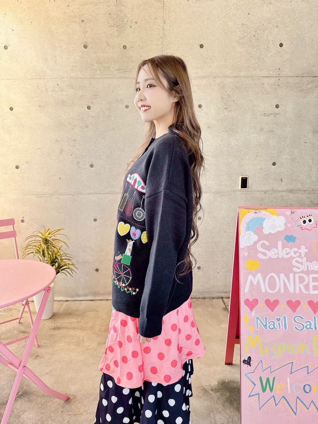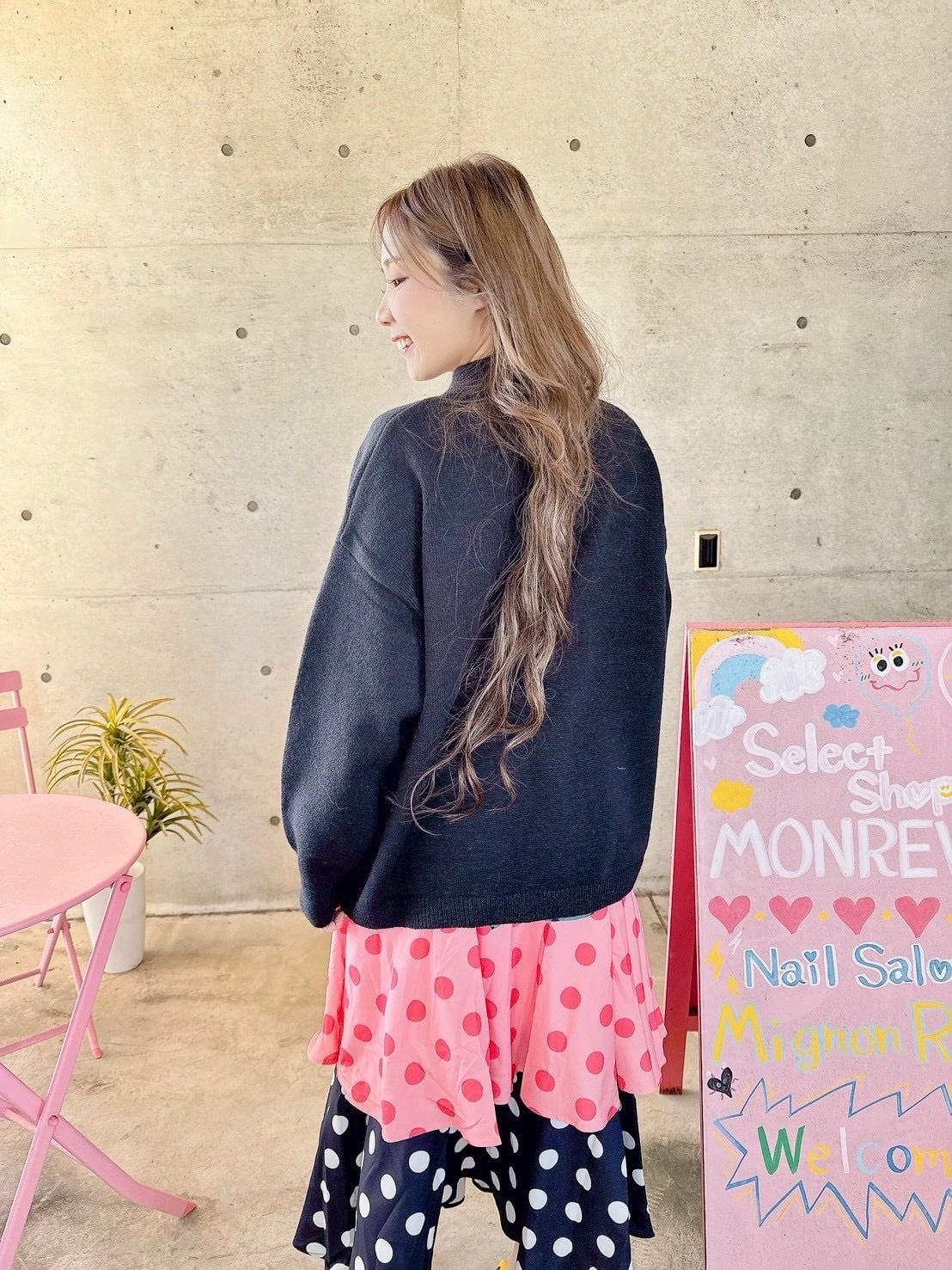 首元も程よくつまったラウンドネックで上品な印象もプラスします♪