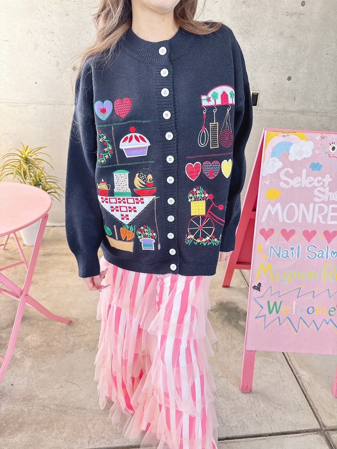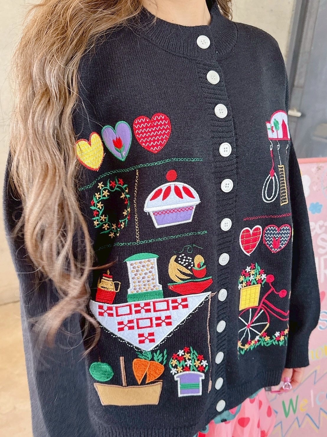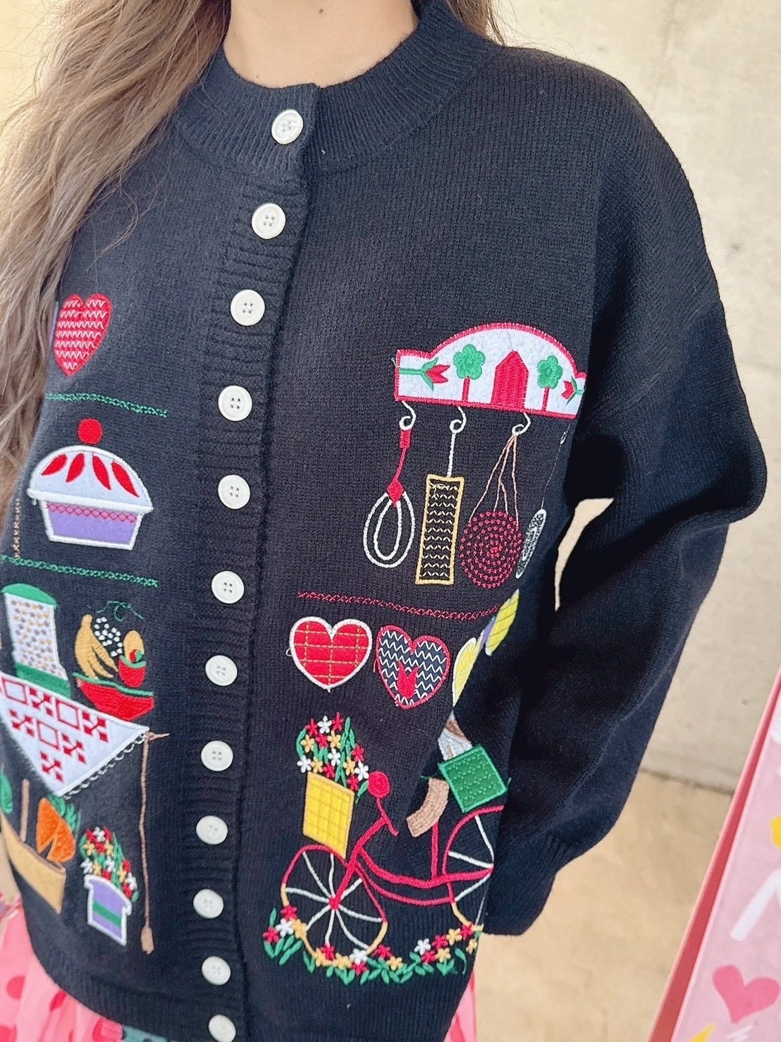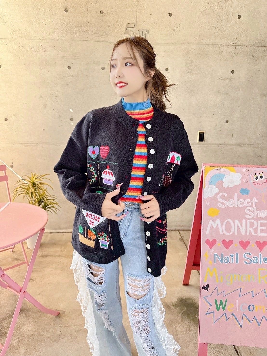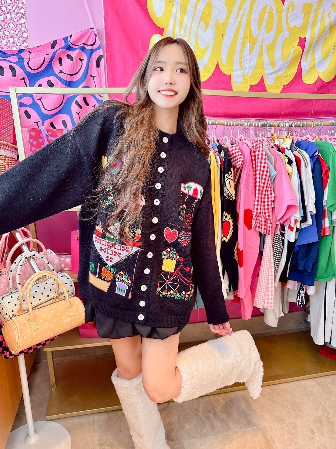 Black刺繍カーディガン♡韓国/レディースファッション/可愛い/カラフル/個性/羽織/派手/春/秋/冬(1-182)