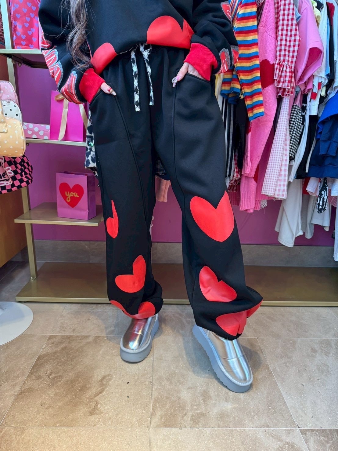 BIGハートロゴセットアップ♡/韓国/レディースファッション/可愛い/おしゃれ/ラフ/カジュアル/春/秋/冬/(0-242)