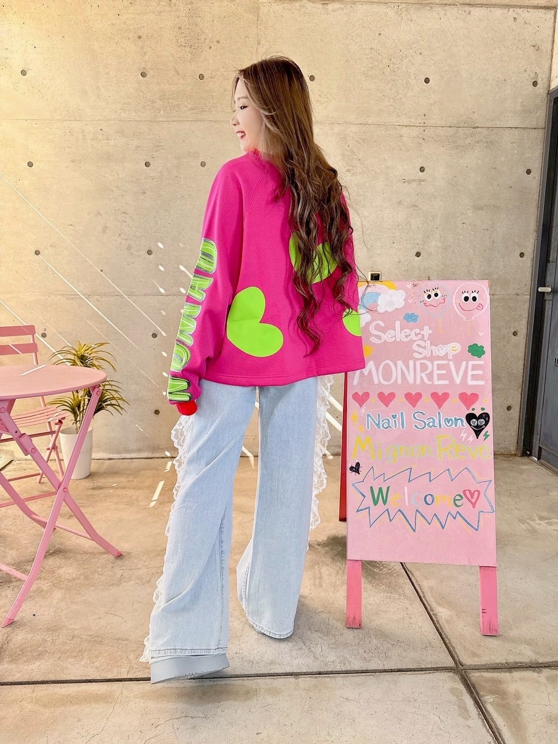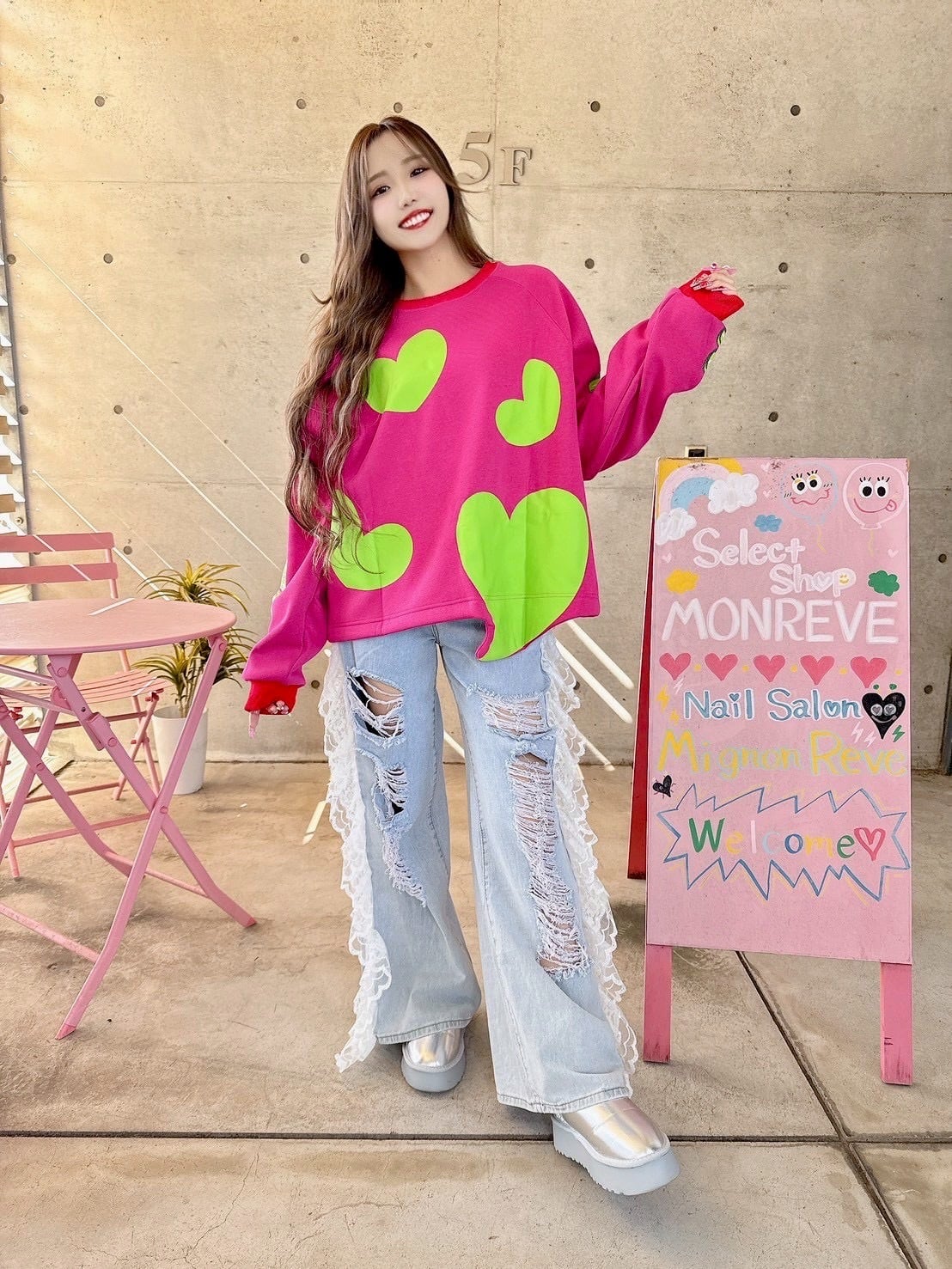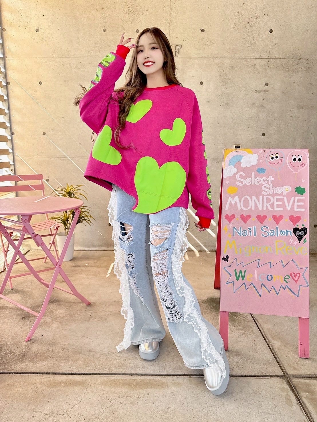 コーディネートを一気に明るくするPink♡ハートトレーナー