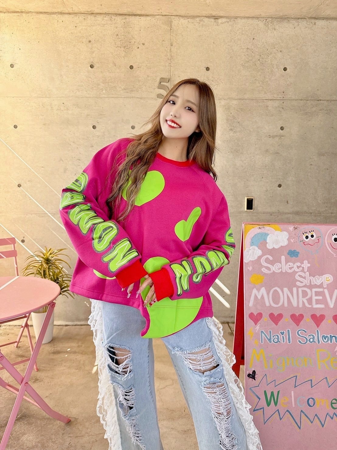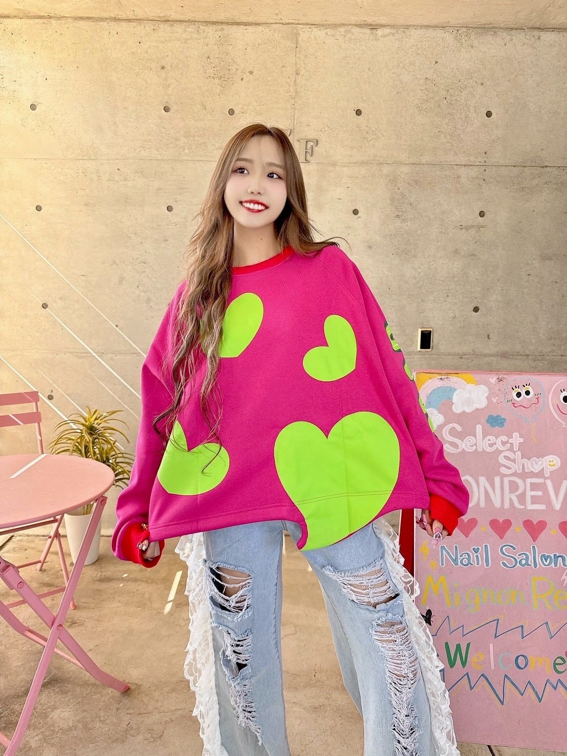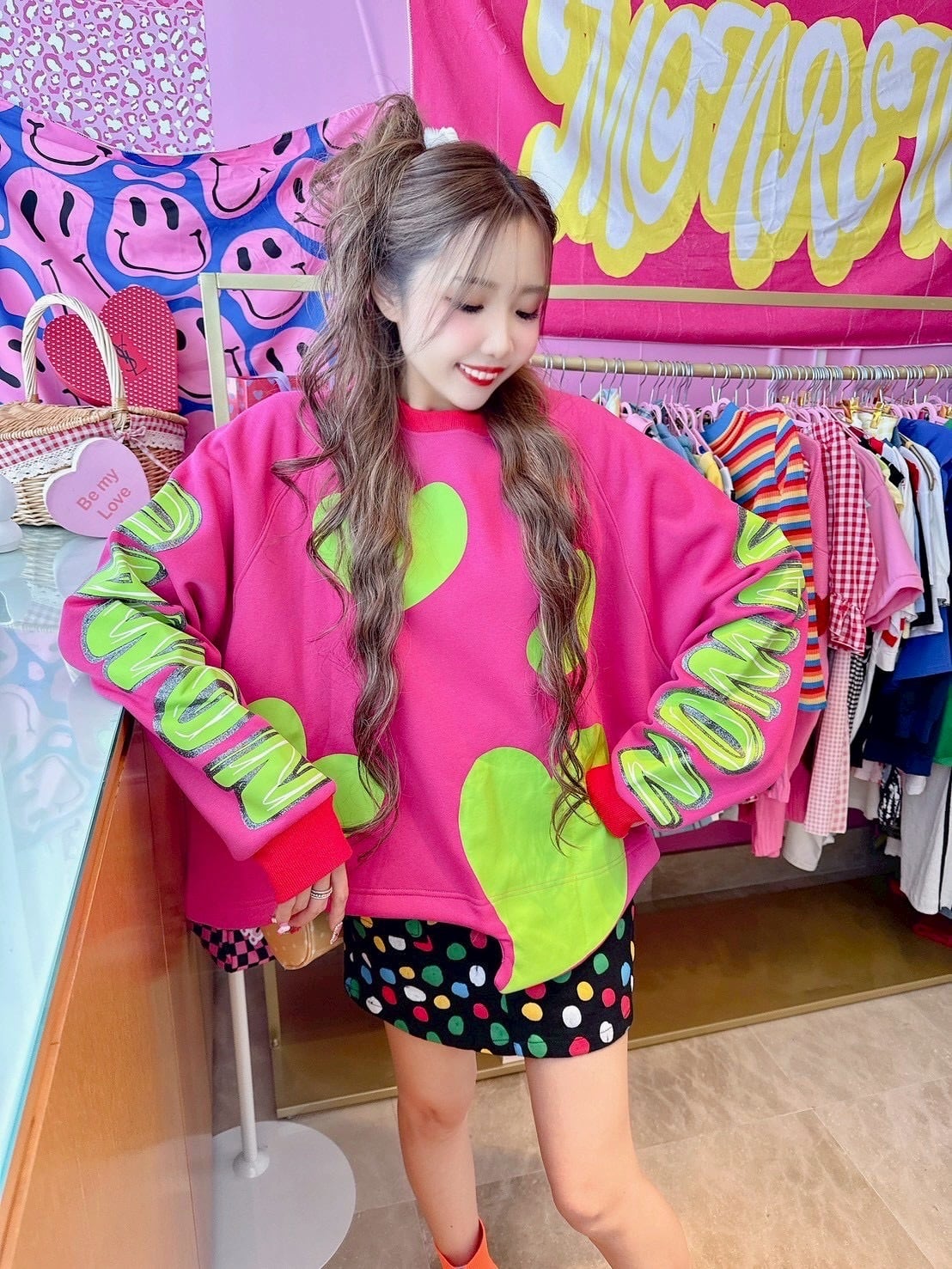 コーディネートを一気に明るくするPink♡ハートトレーナー