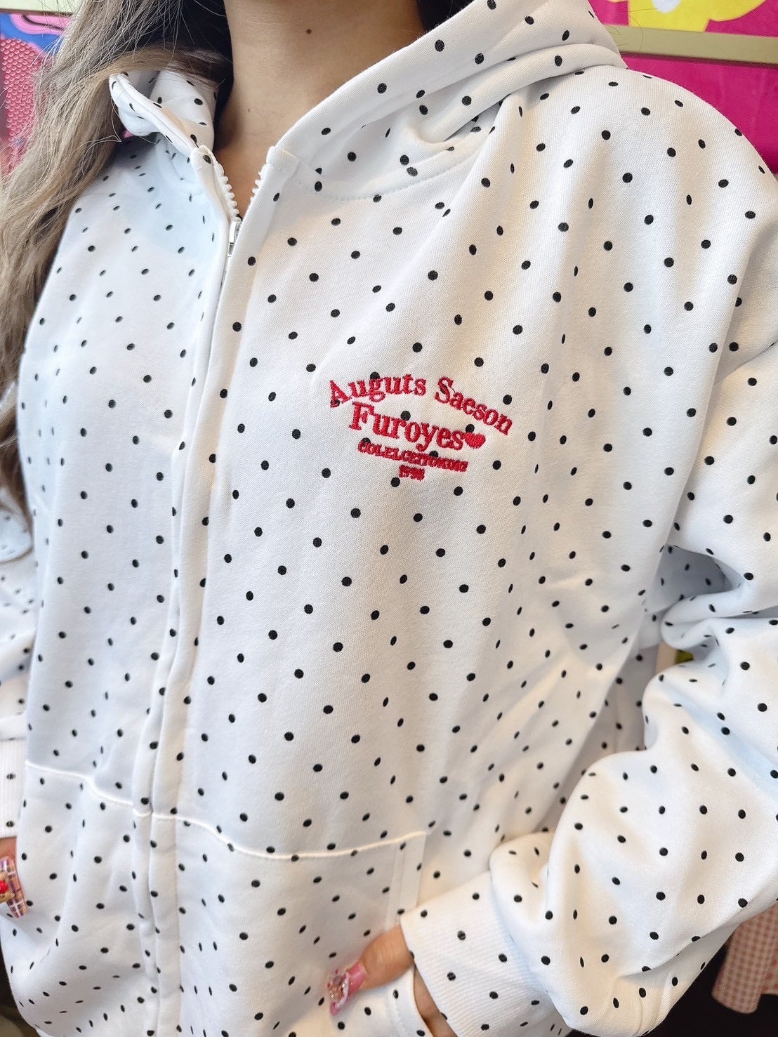 ドット♡カジュアルセットアップ/韓国/レディースファッション/ラフ/可愛い/おしゃれ/大人/フード付き(0-244)