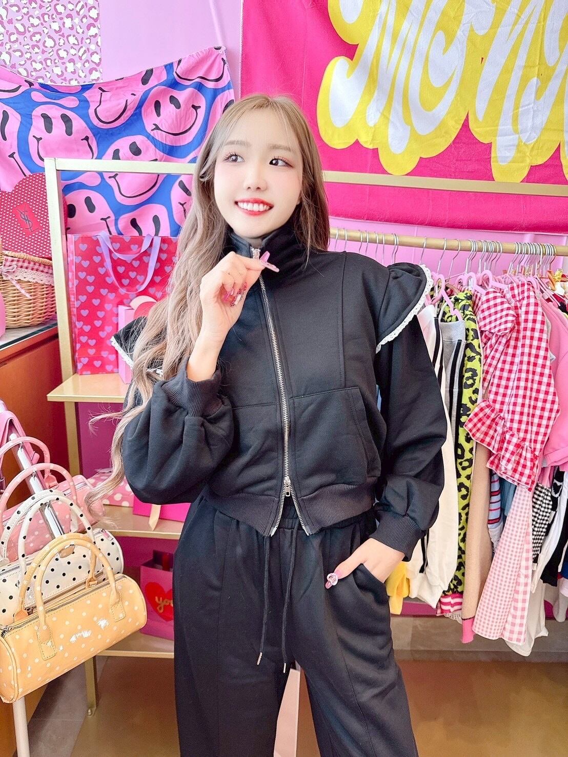Blackフリルセットアップ/韓国/レディースファッション/シンプル/綺麗め/大人女子/カジュアル