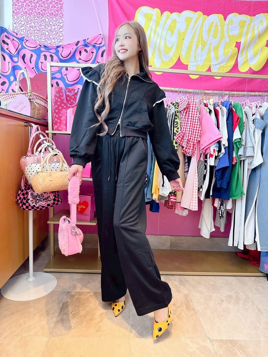 カジュアルながらも華やかさと上品な印象を与えるフリルセットアップ♡