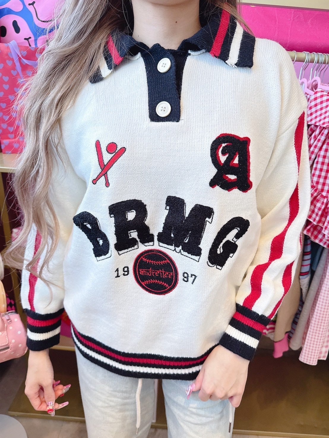 baseball♡スポーティーニット♡韓国/レディースファッション/ニット/トップス/白/アメリカン/ライン/カジュアル