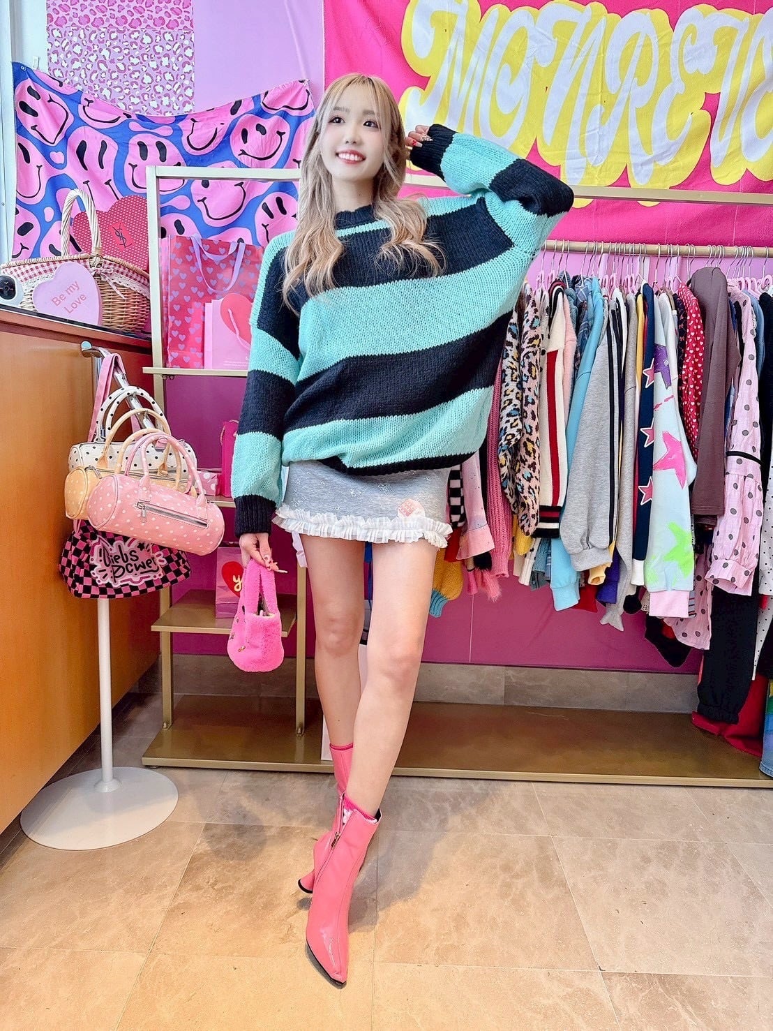 鮮やかなカラーが魅力のボーダーニット♡