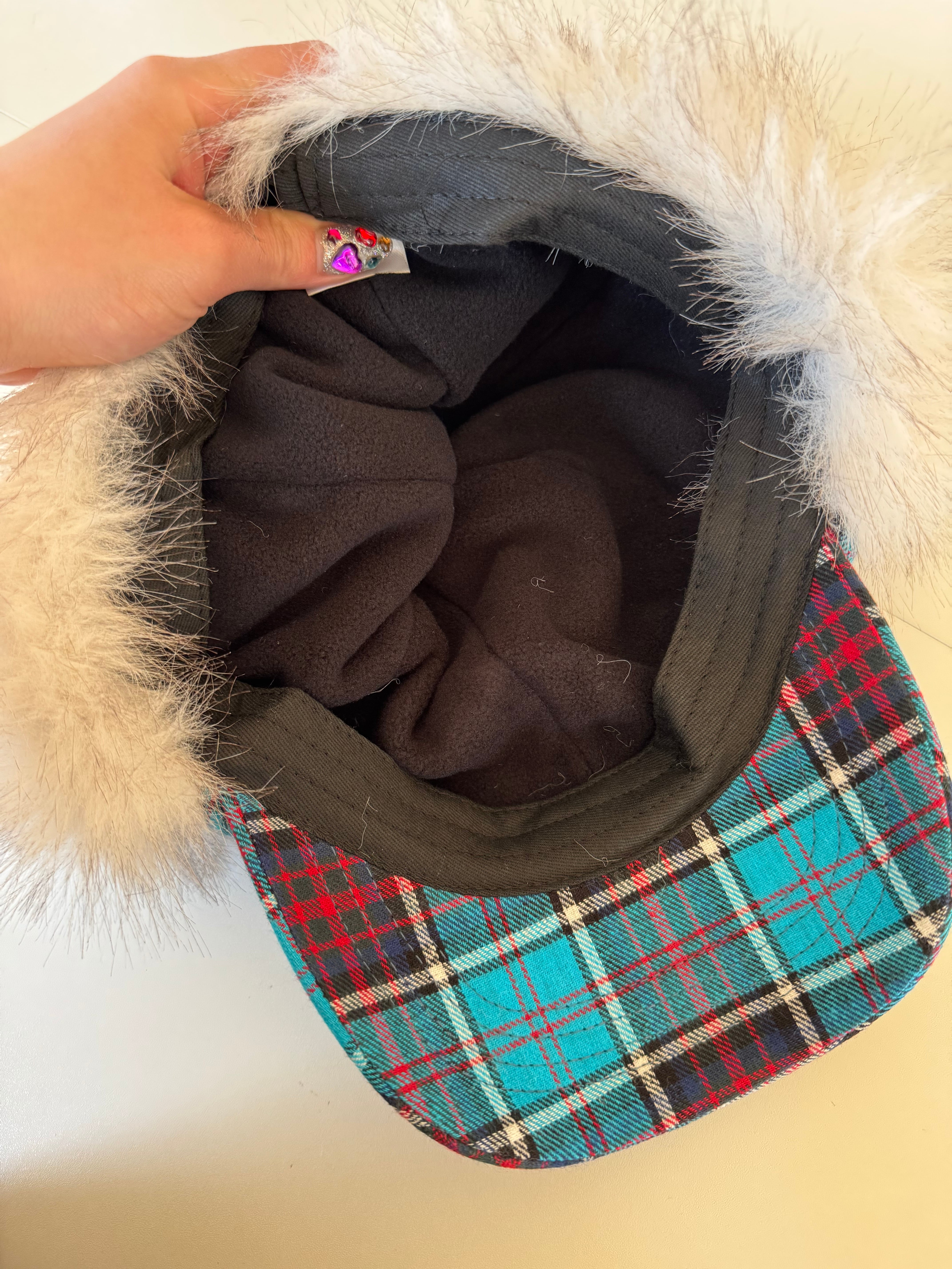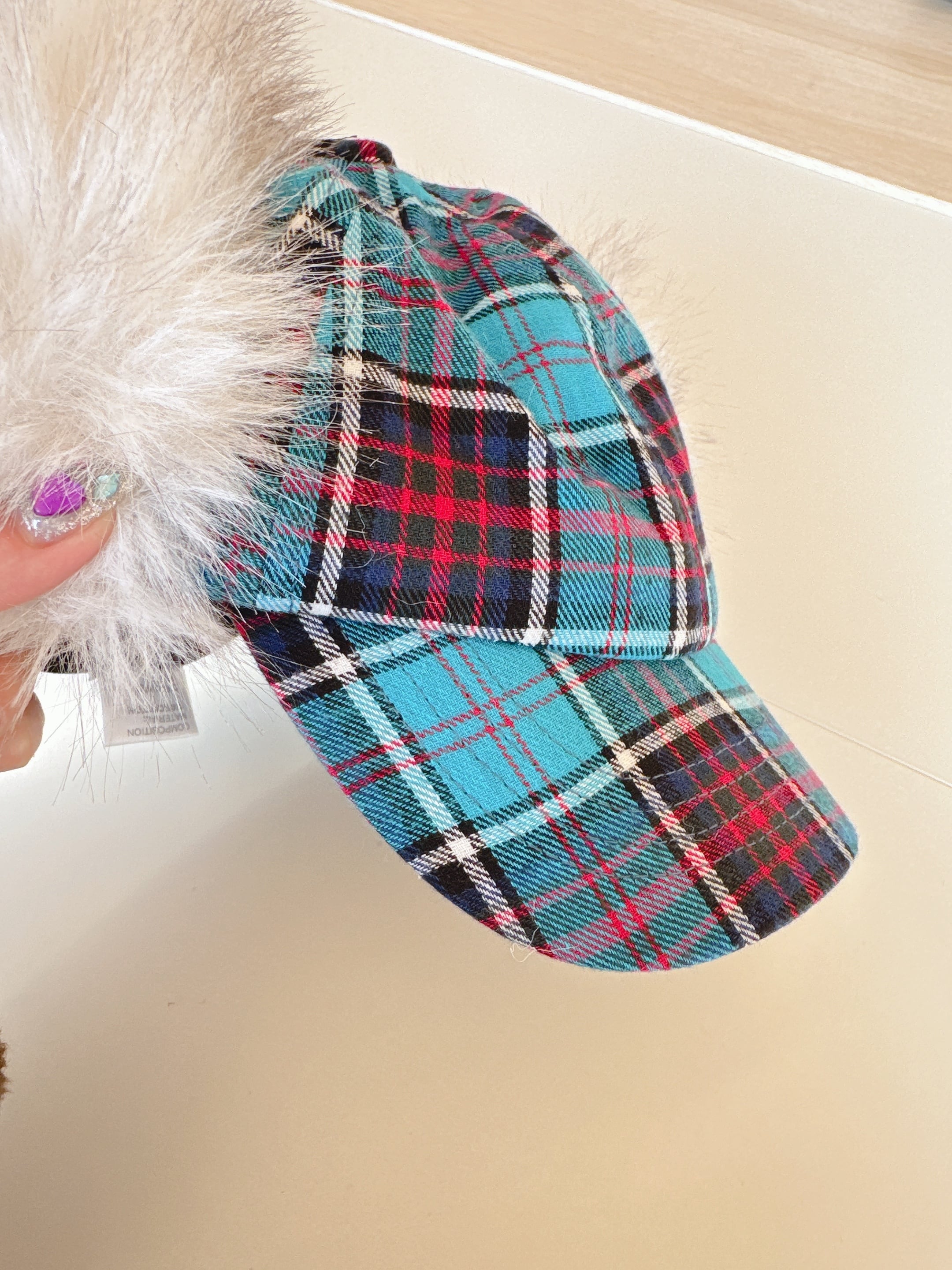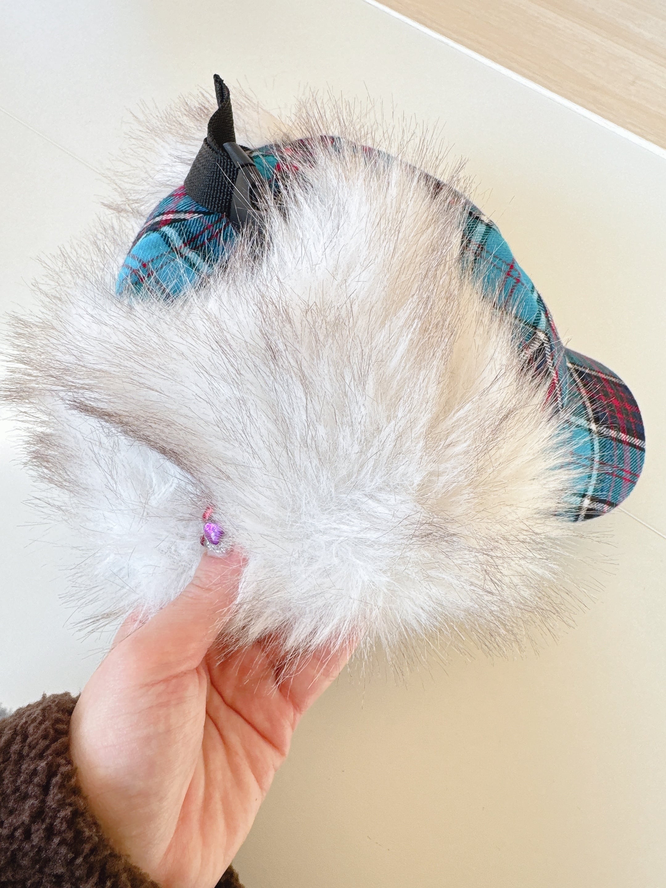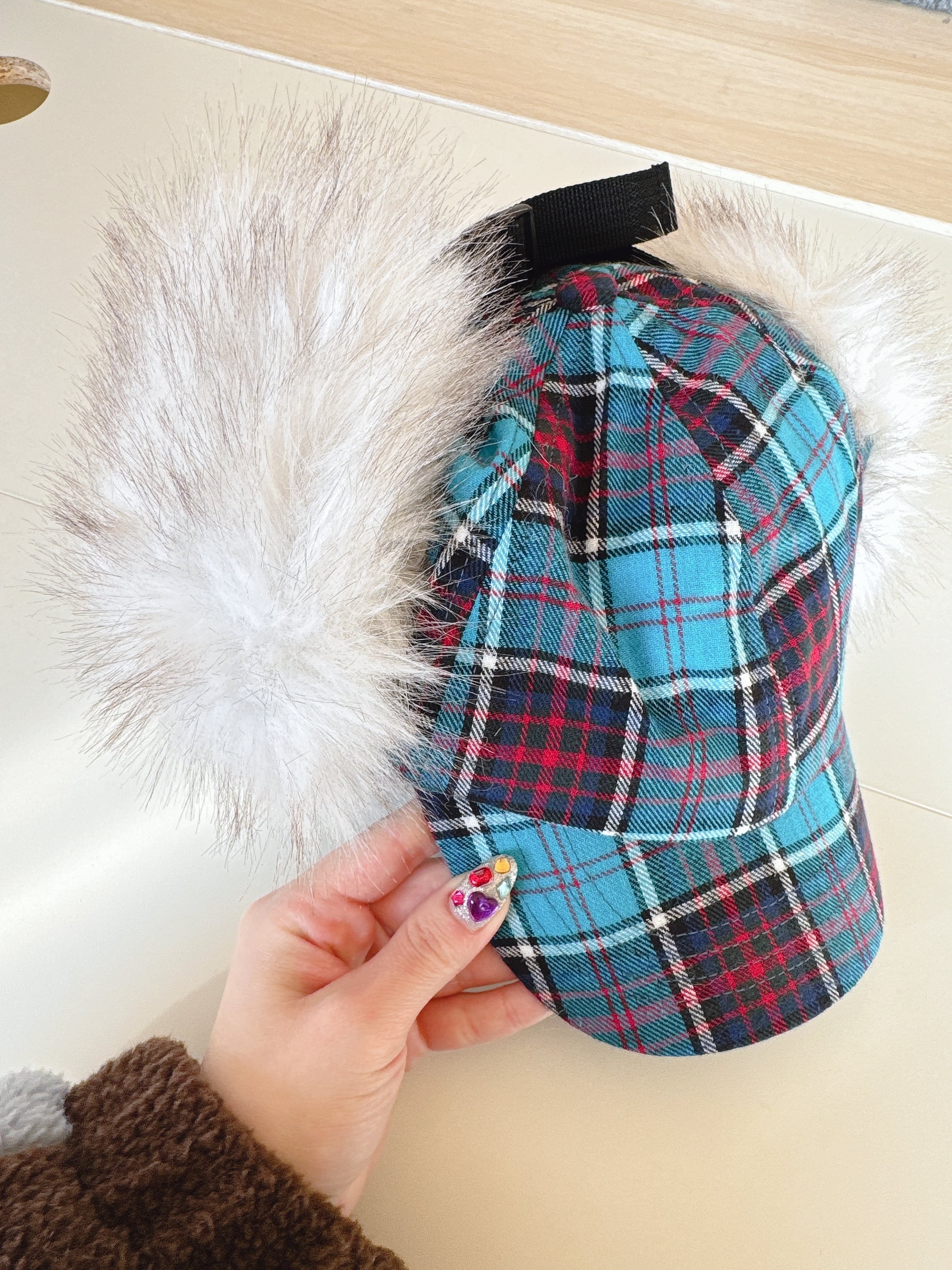 Blueタータンチェックファーキャップ/韓国/レディースファッション/可愛い/おしゃれ/ラフ/カジュアル