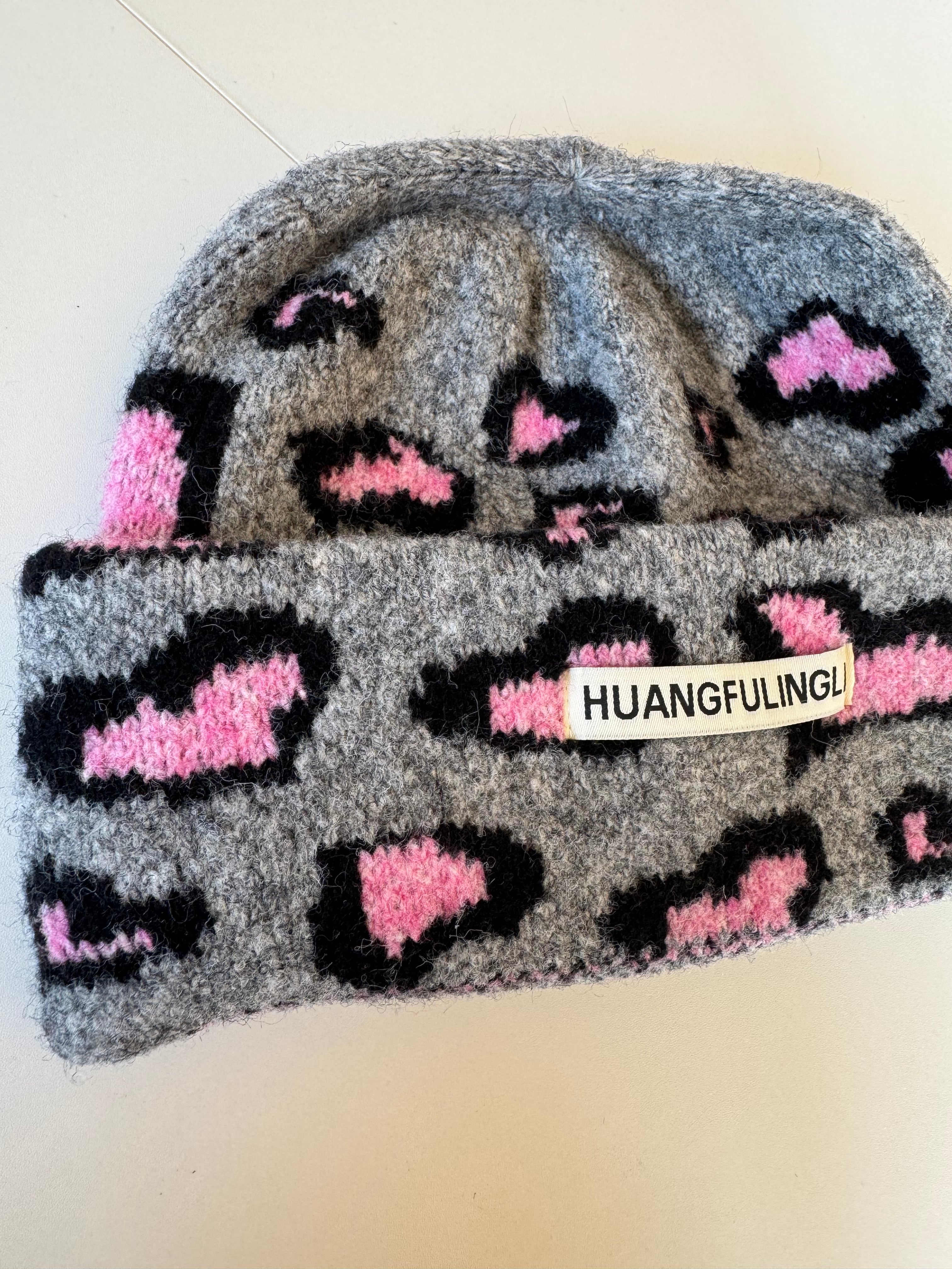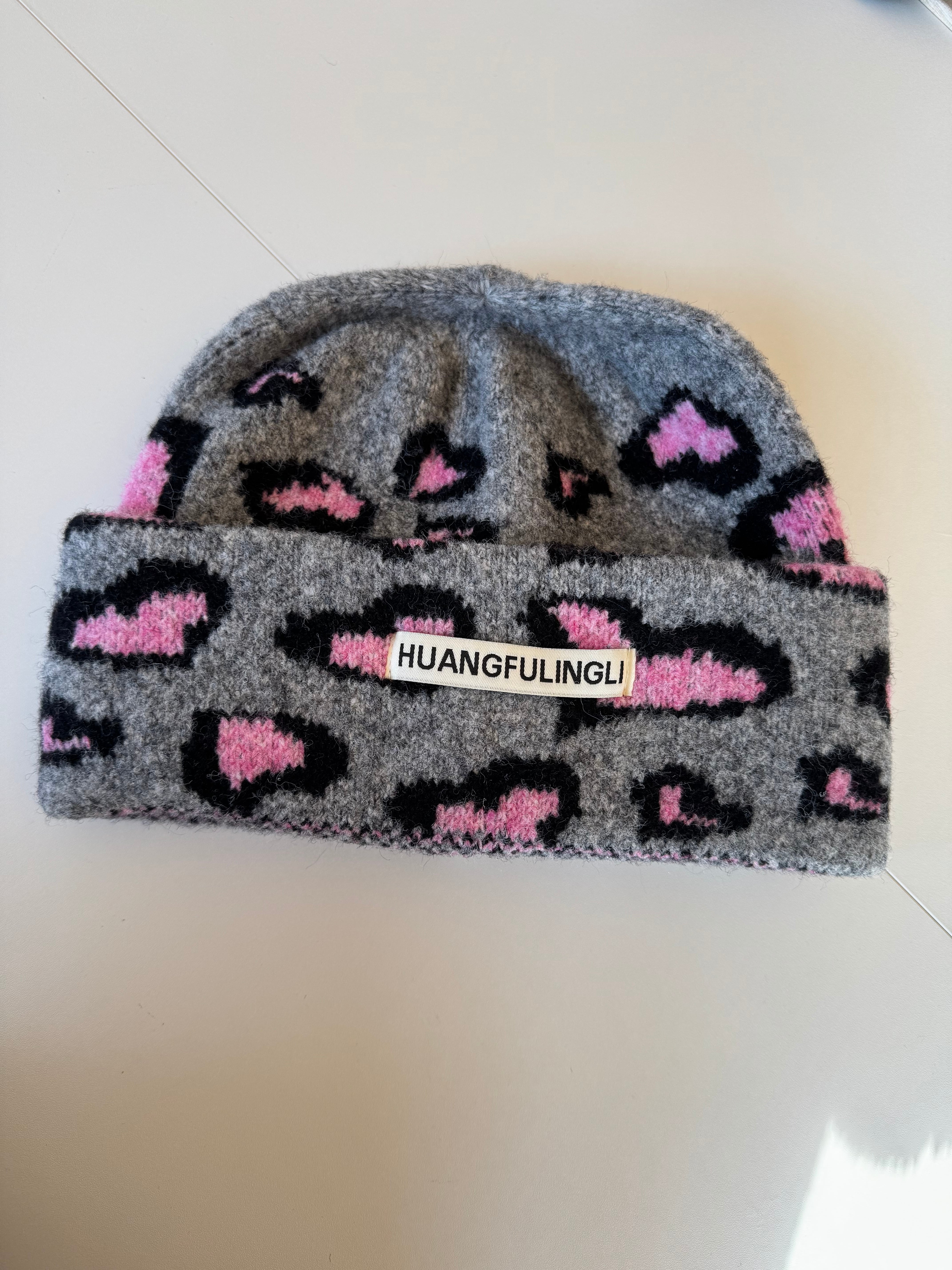 ピンクのかわいらしいレオパード柄が印象的なニット帽♡