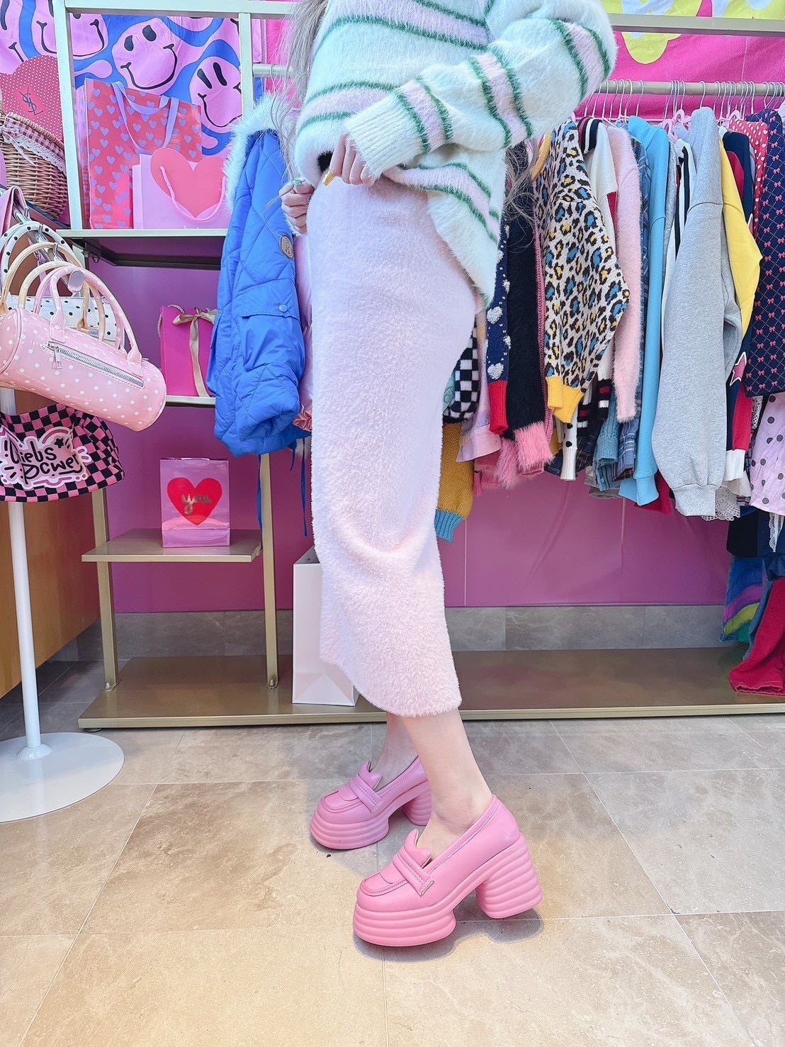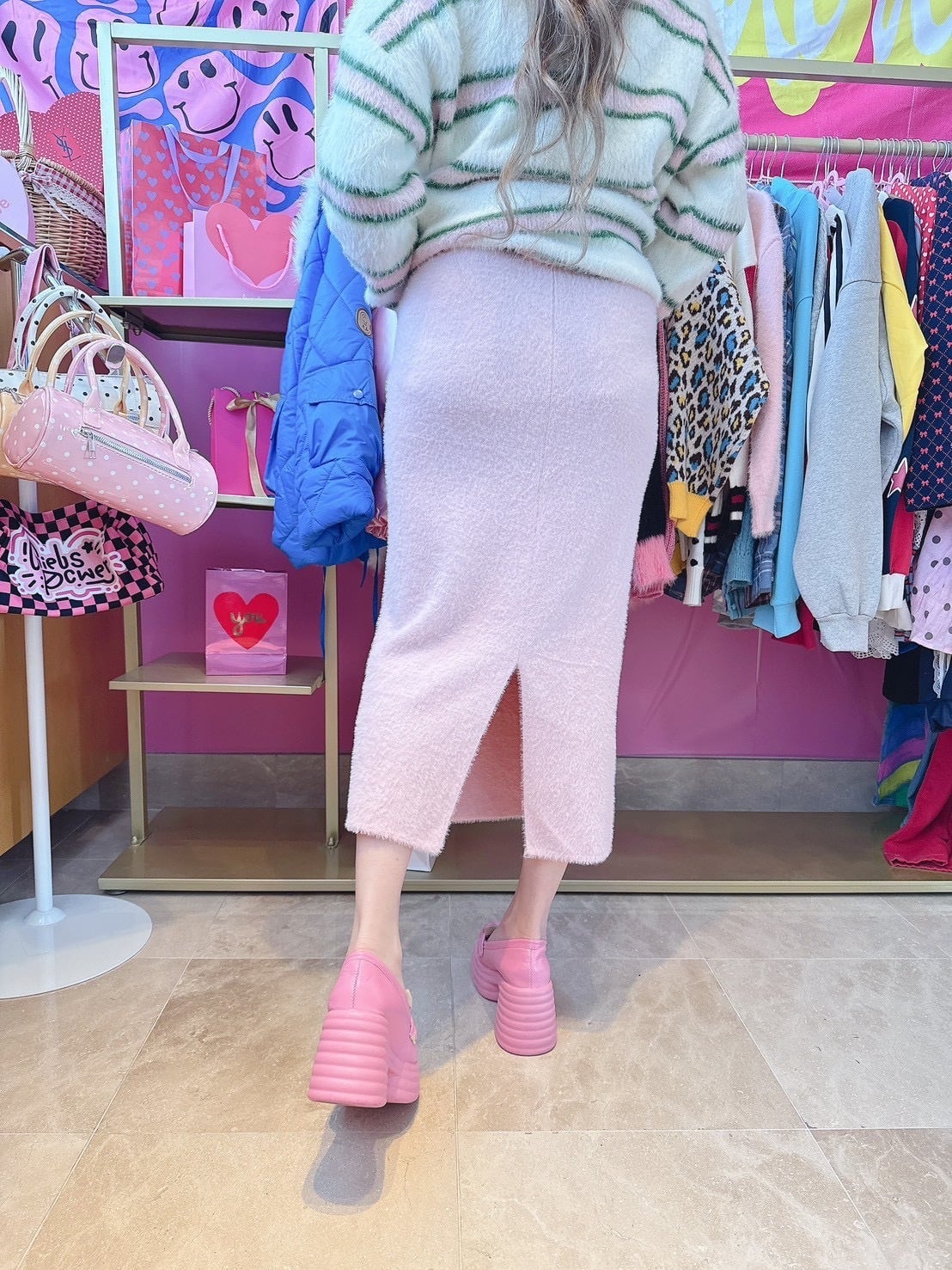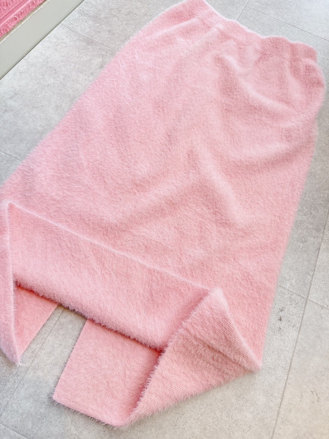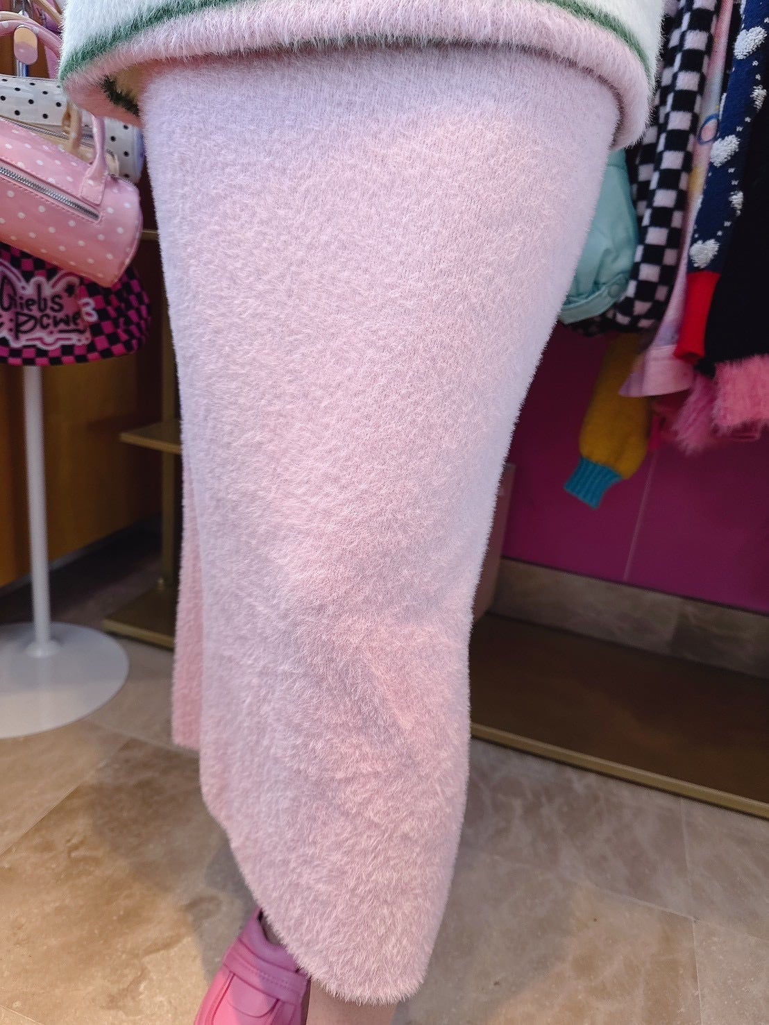 ロングニットペンシルスカート♡韓国/レディースファッション/ニット/ピンク/パステル/モコモコ(7-073)