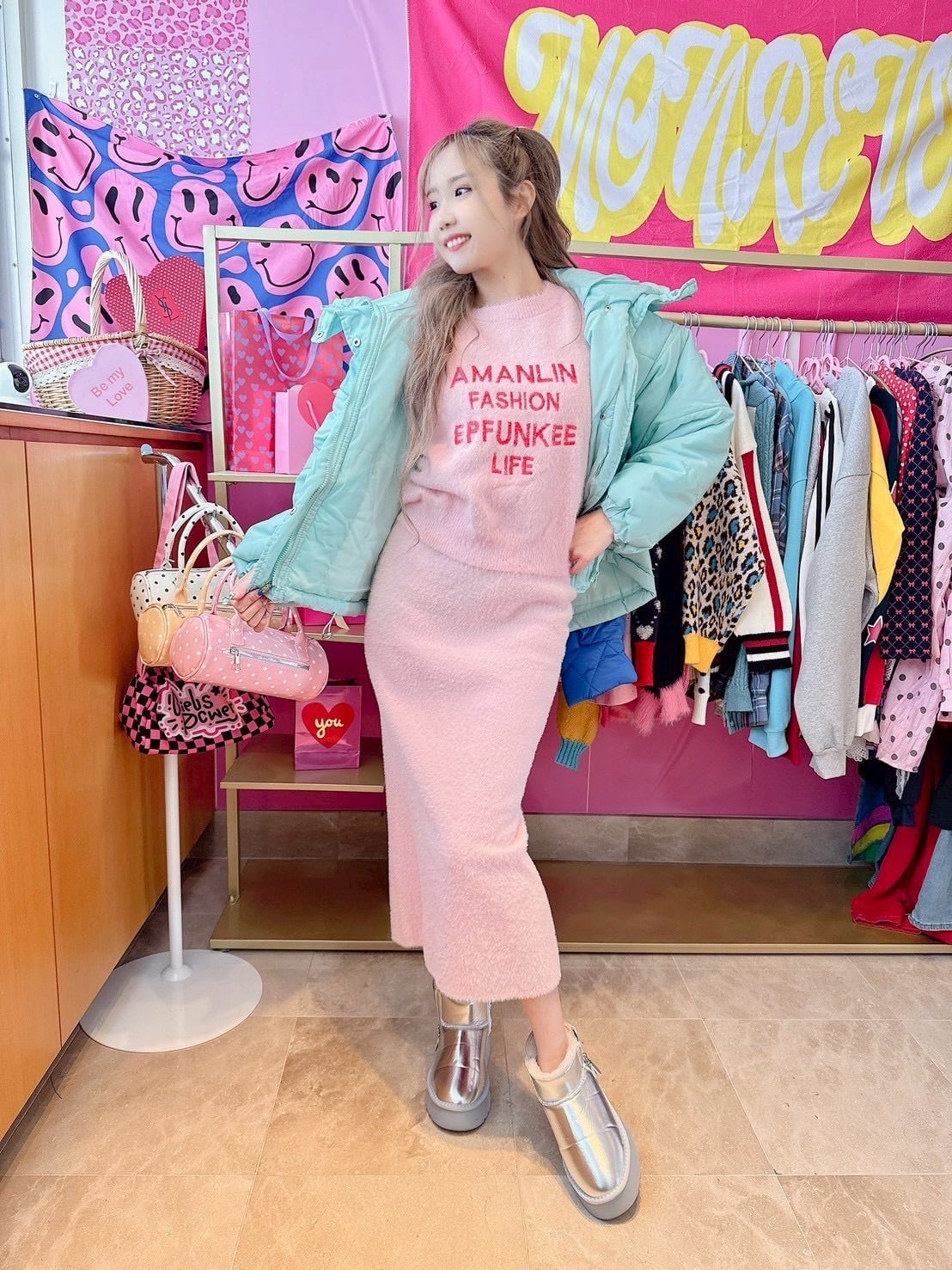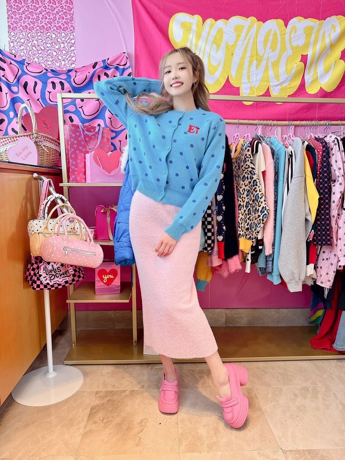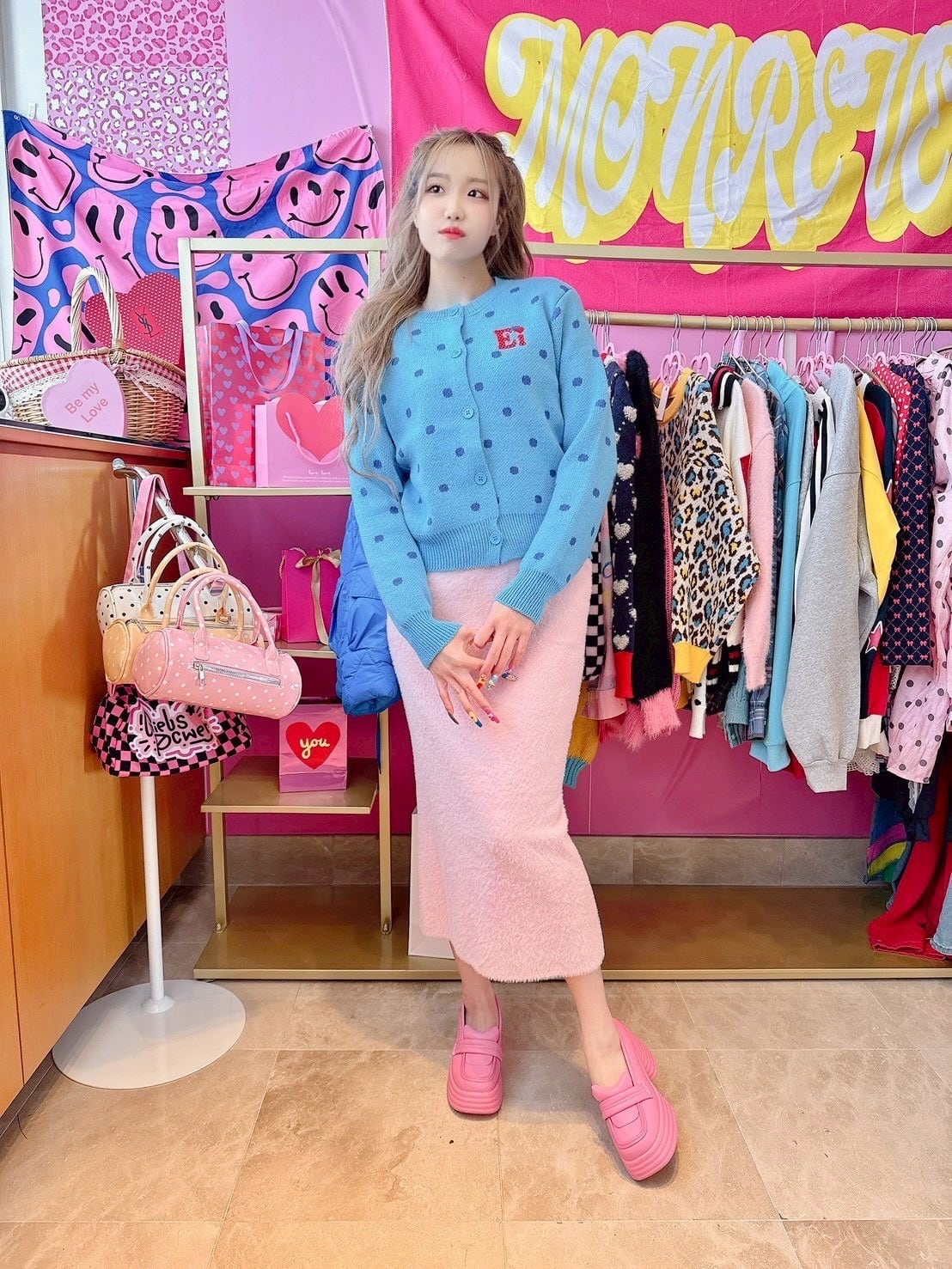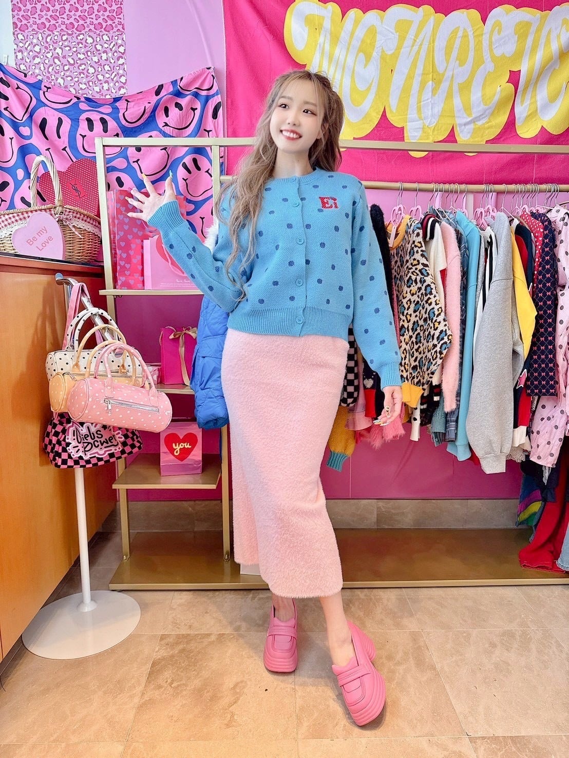 ロングニットペンシルスカート♡韓国/レディースファッション/ニット/ピンク/パステル/モコモコ(7-073)