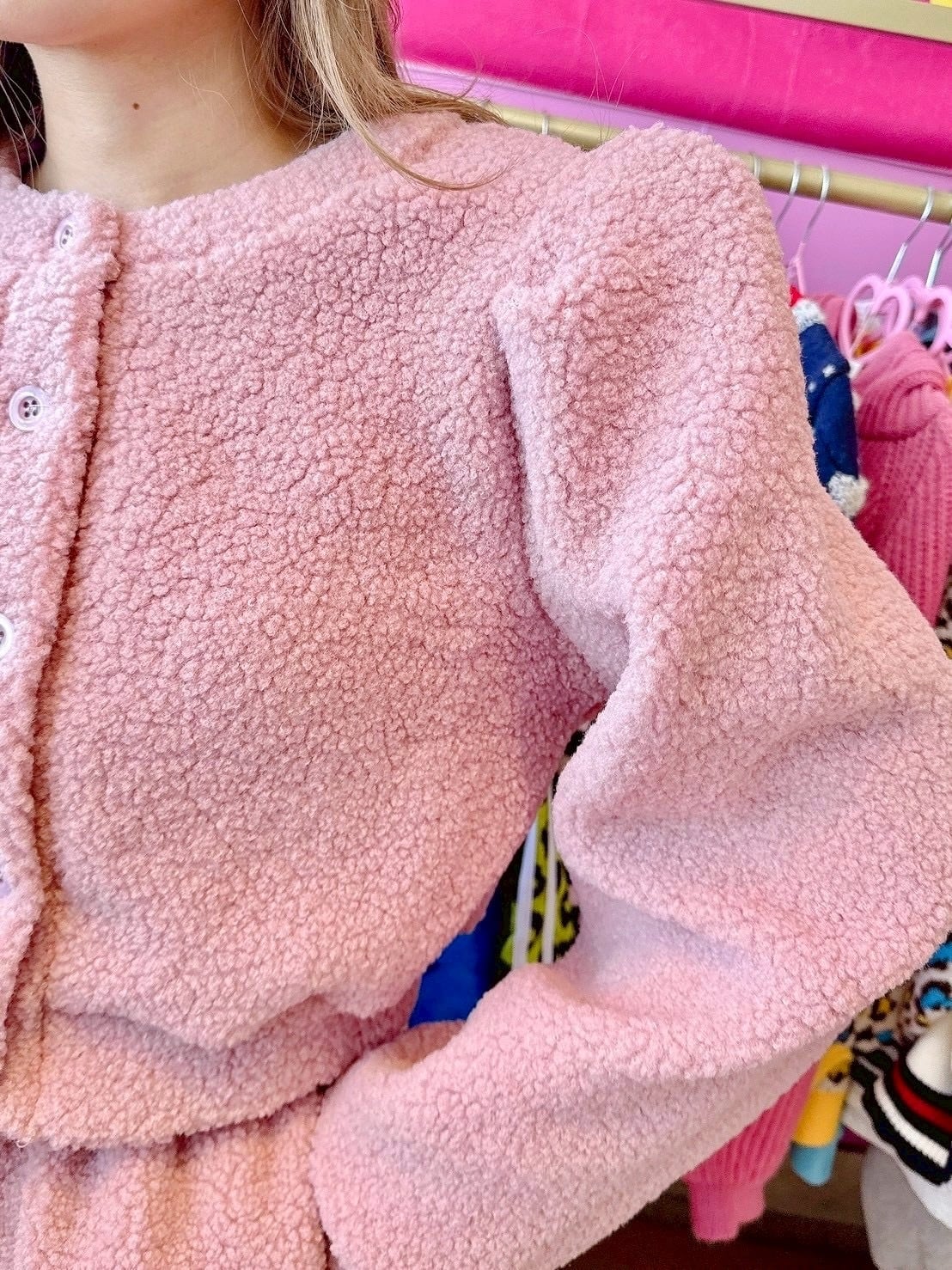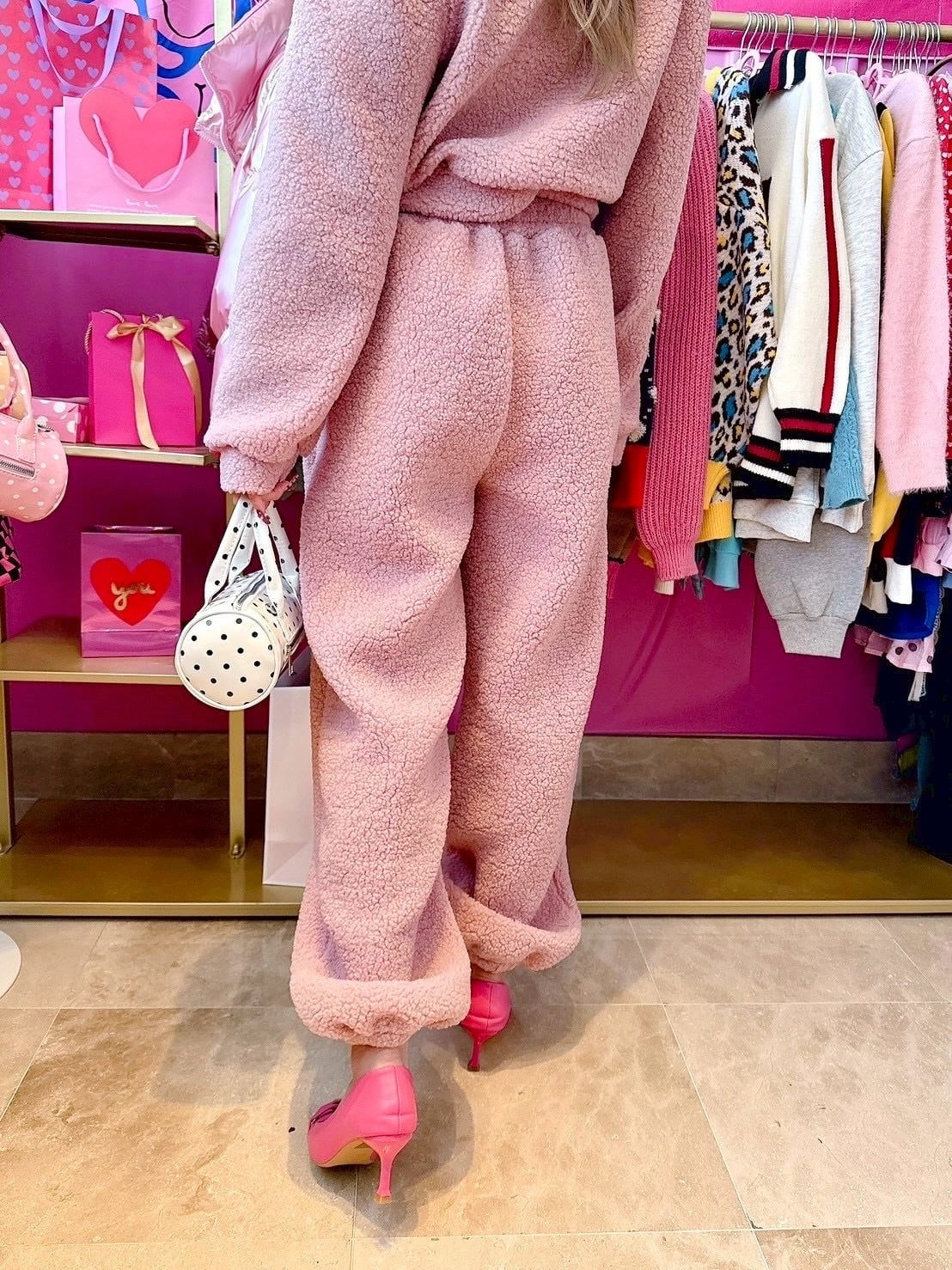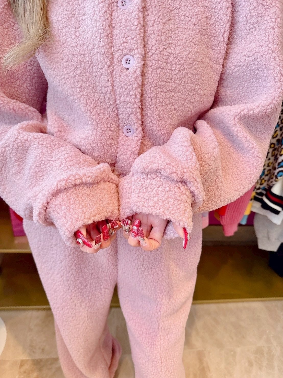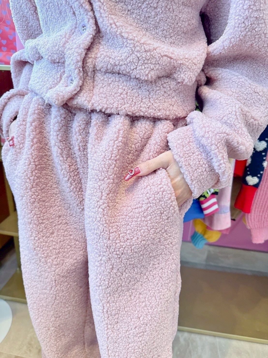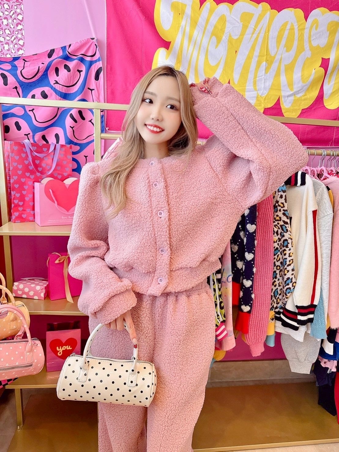 可愛らしいピンクカラーが目を引くボアセットアップ♡