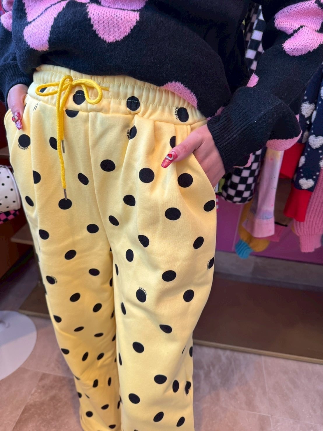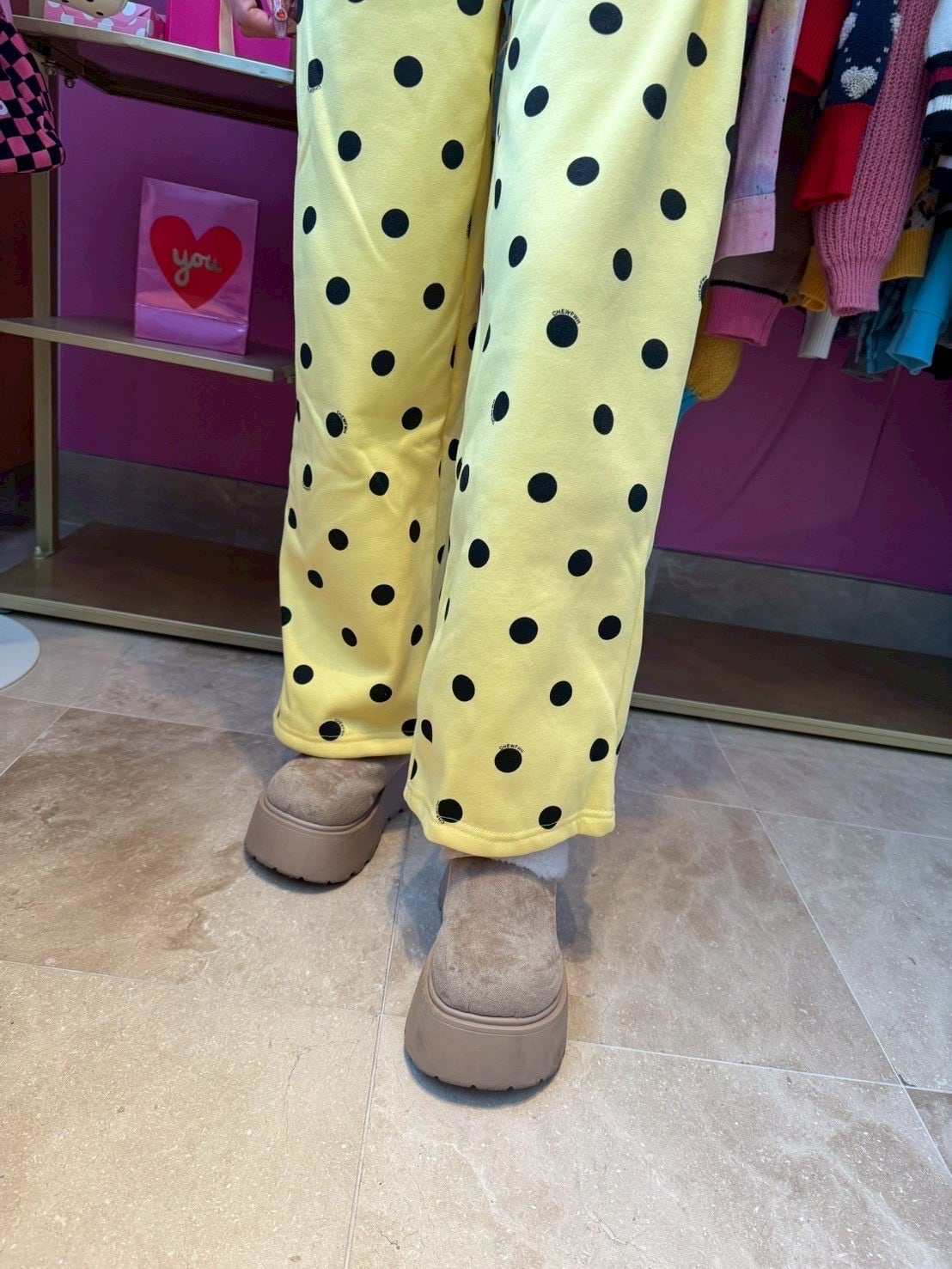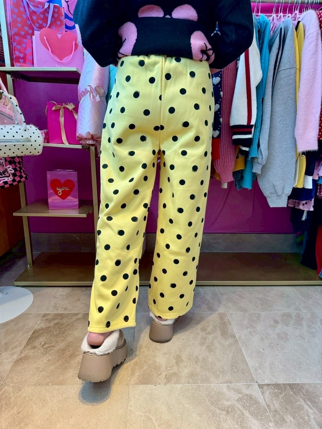Yellowドットスウェットパンツ/裏起毛/韓国/レディースファッション/可愛い/おしゃれ/ラフ/カジュアル/POP/派手/個性(5-208)