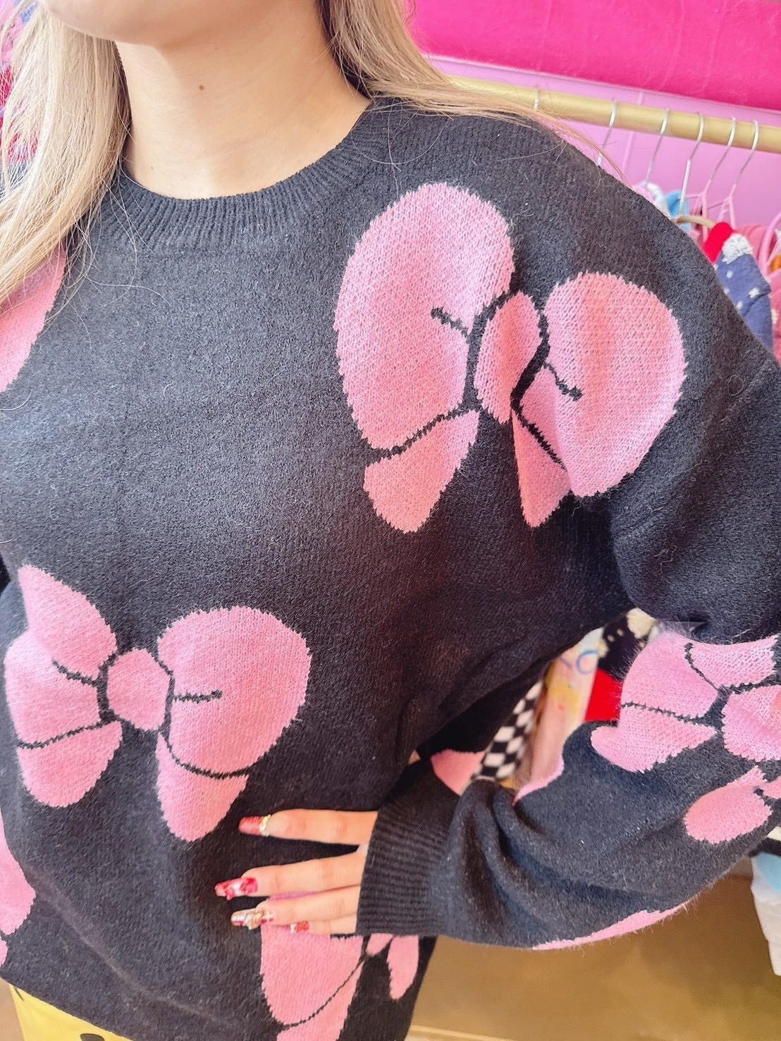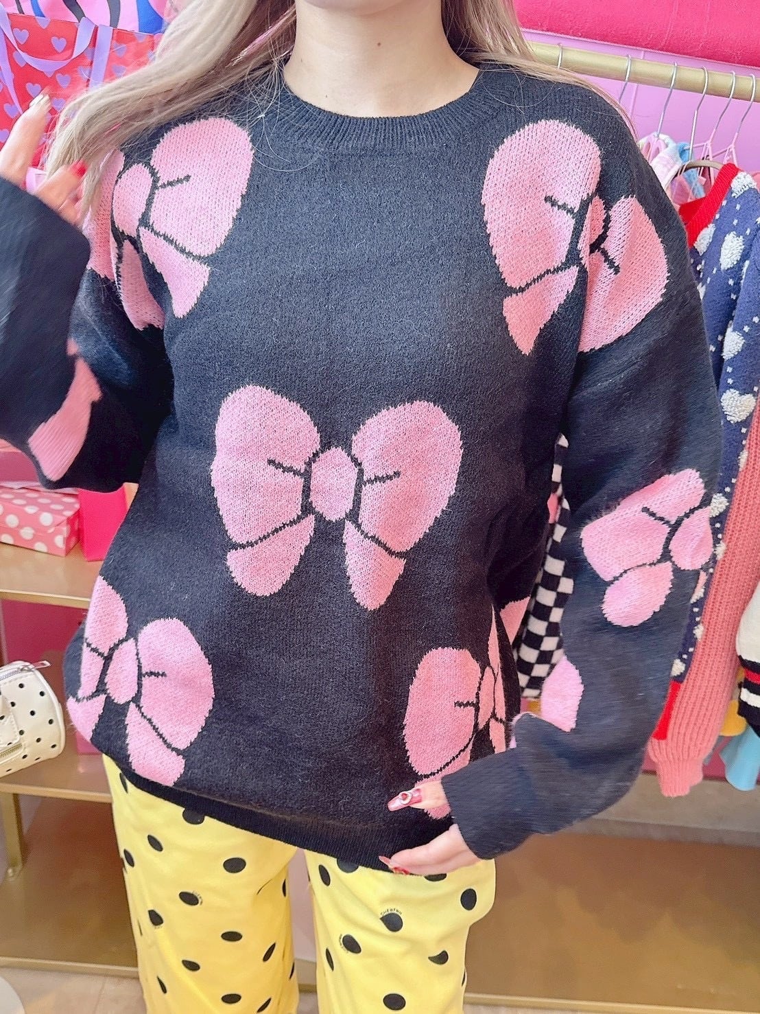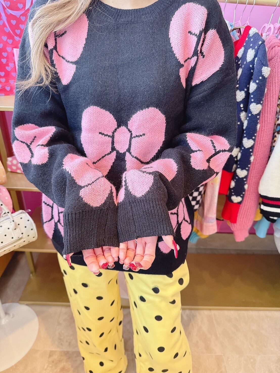 存在感のあるリボンデザインがポイントのニットトップス♡