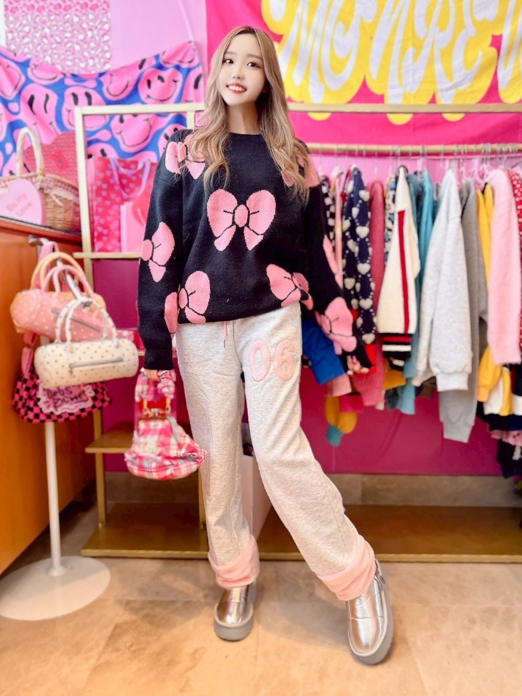 リボンニットトップス/韓国/レディースファッション/可愛い/おしゃれ/ラフ/カジュアル/厚手/大人(6-237)