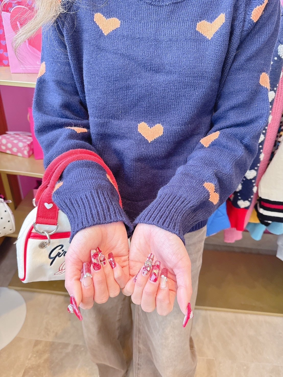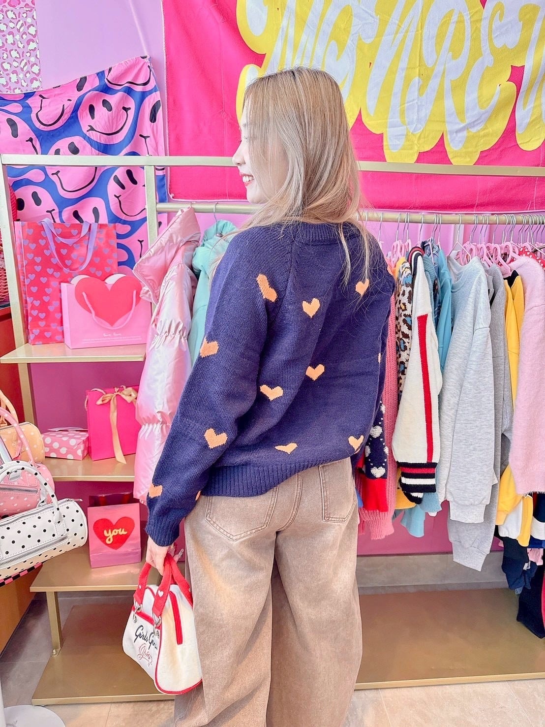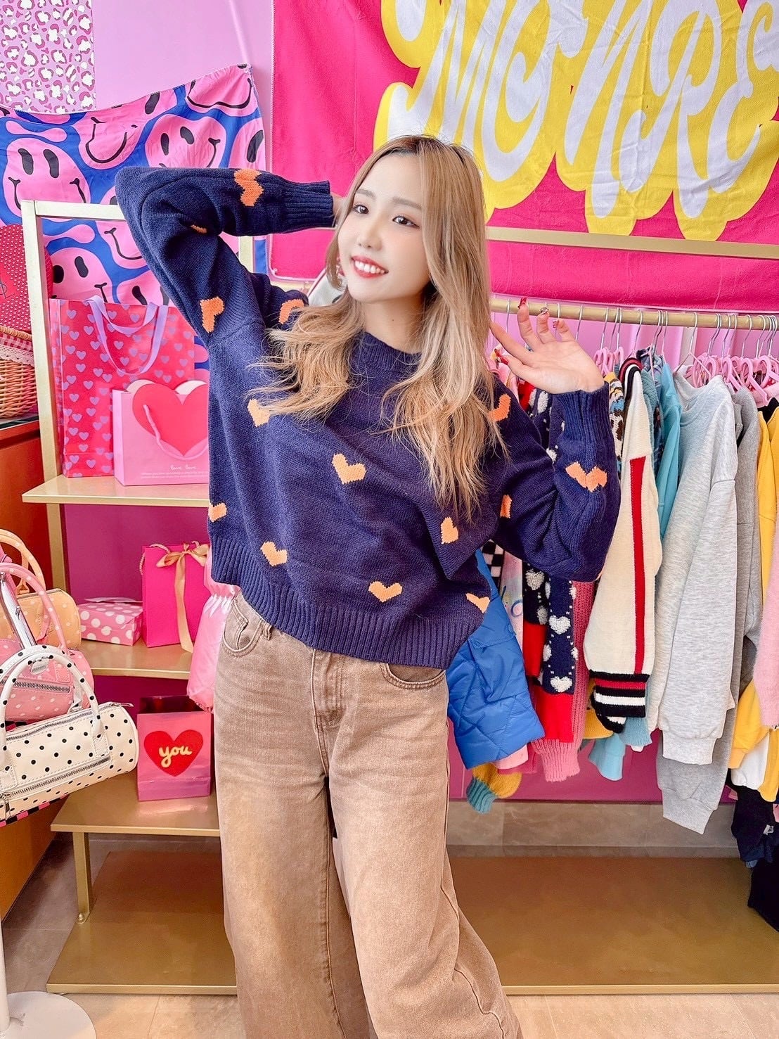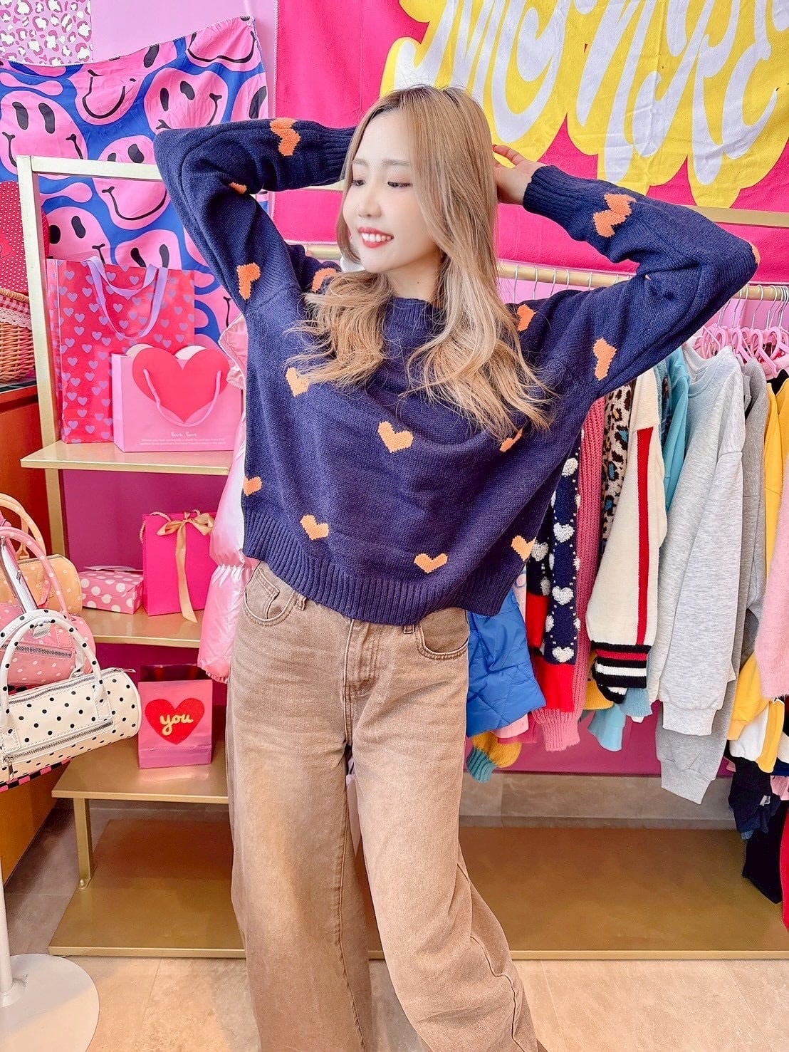 Navyハートロゴニットトップス/韓国/レディースファッション/可愛い/おしゃれ/ラフ/カジュアル/大人/モノトーン/シンプル/冬(6-235)