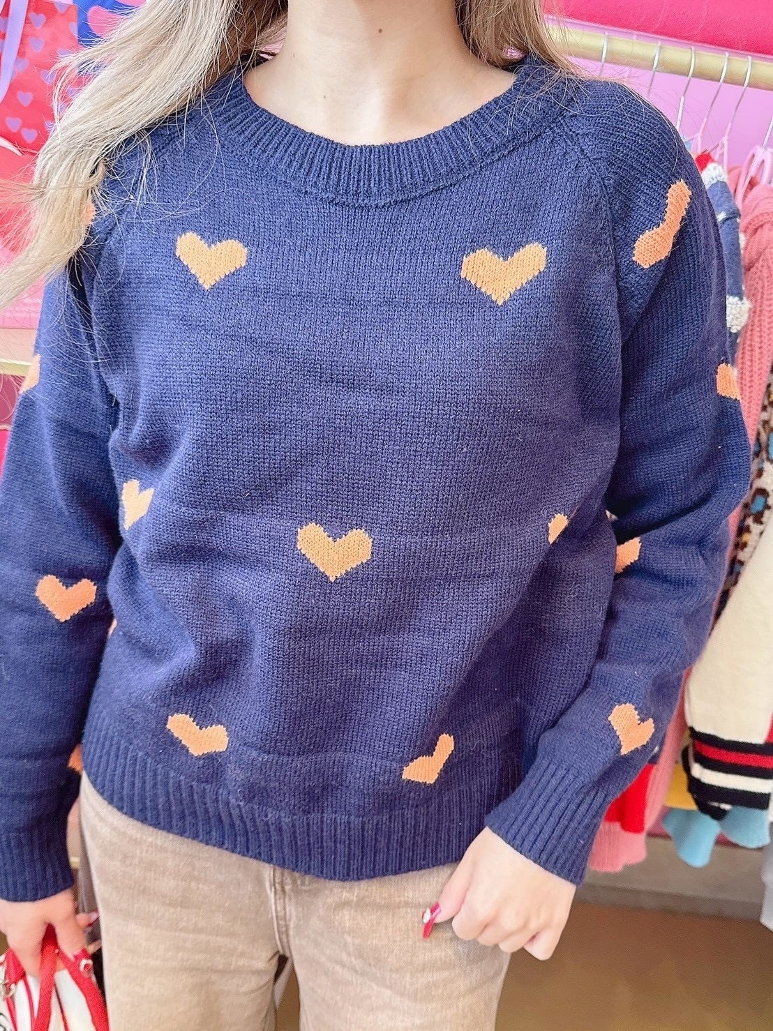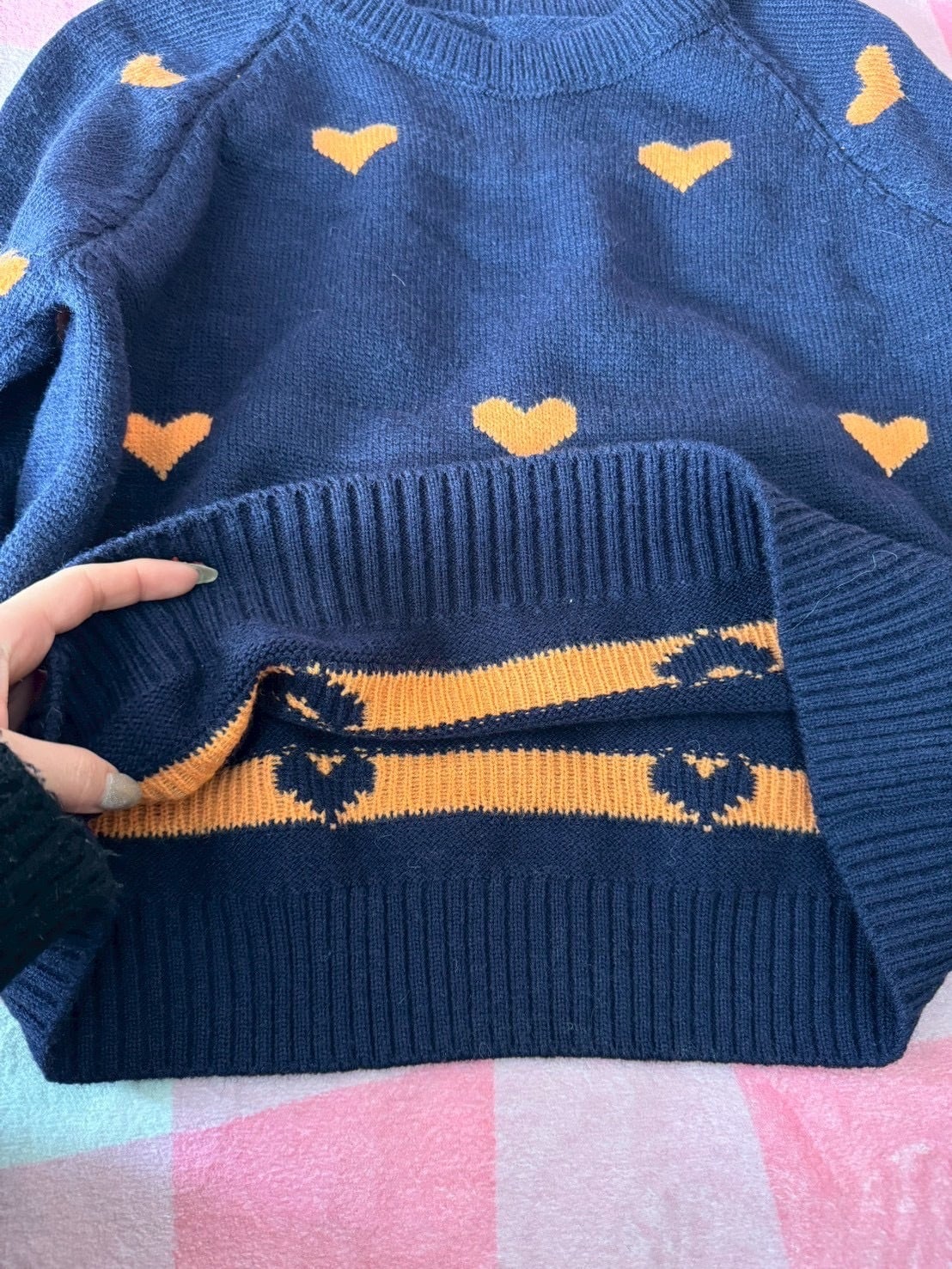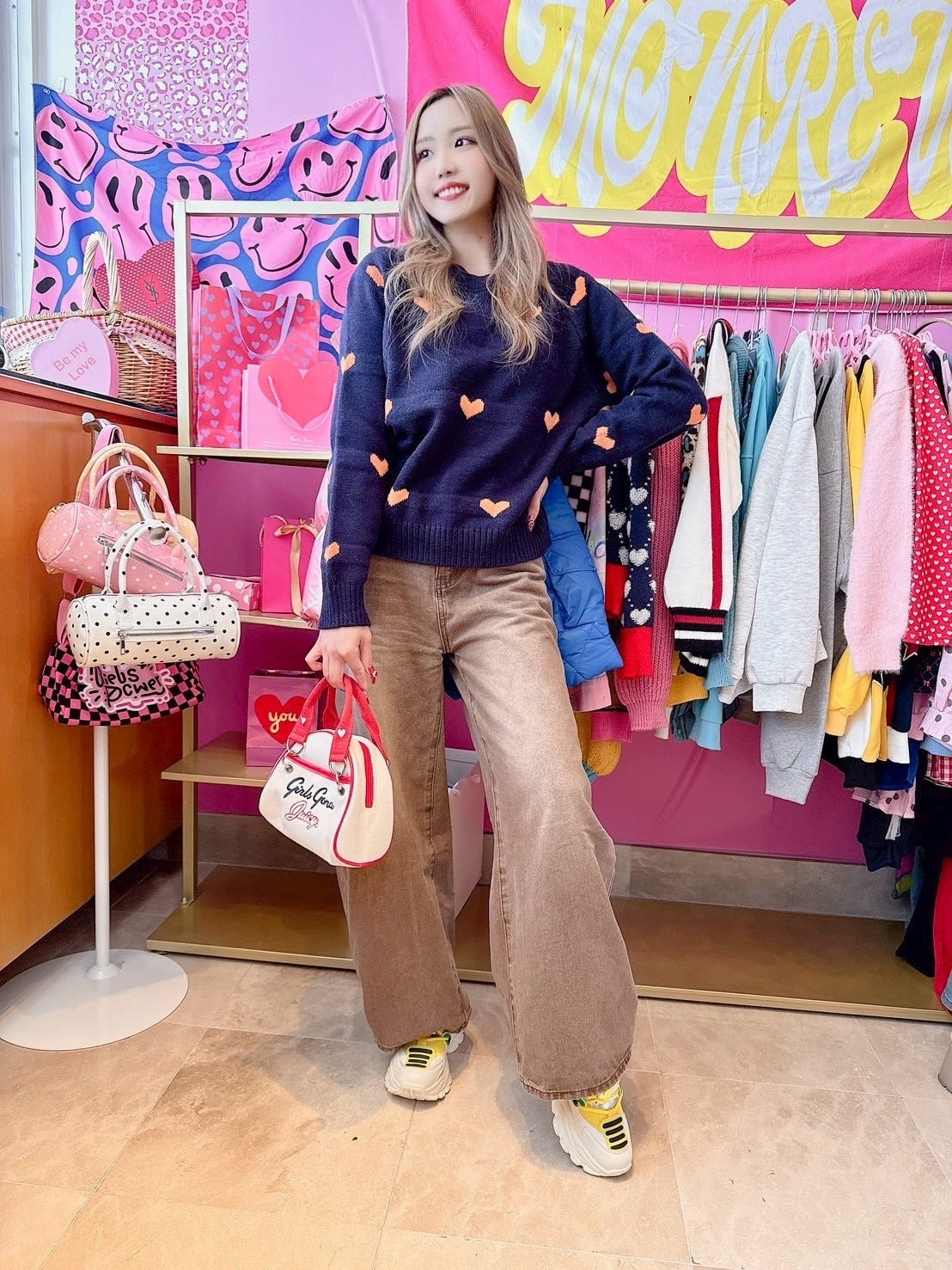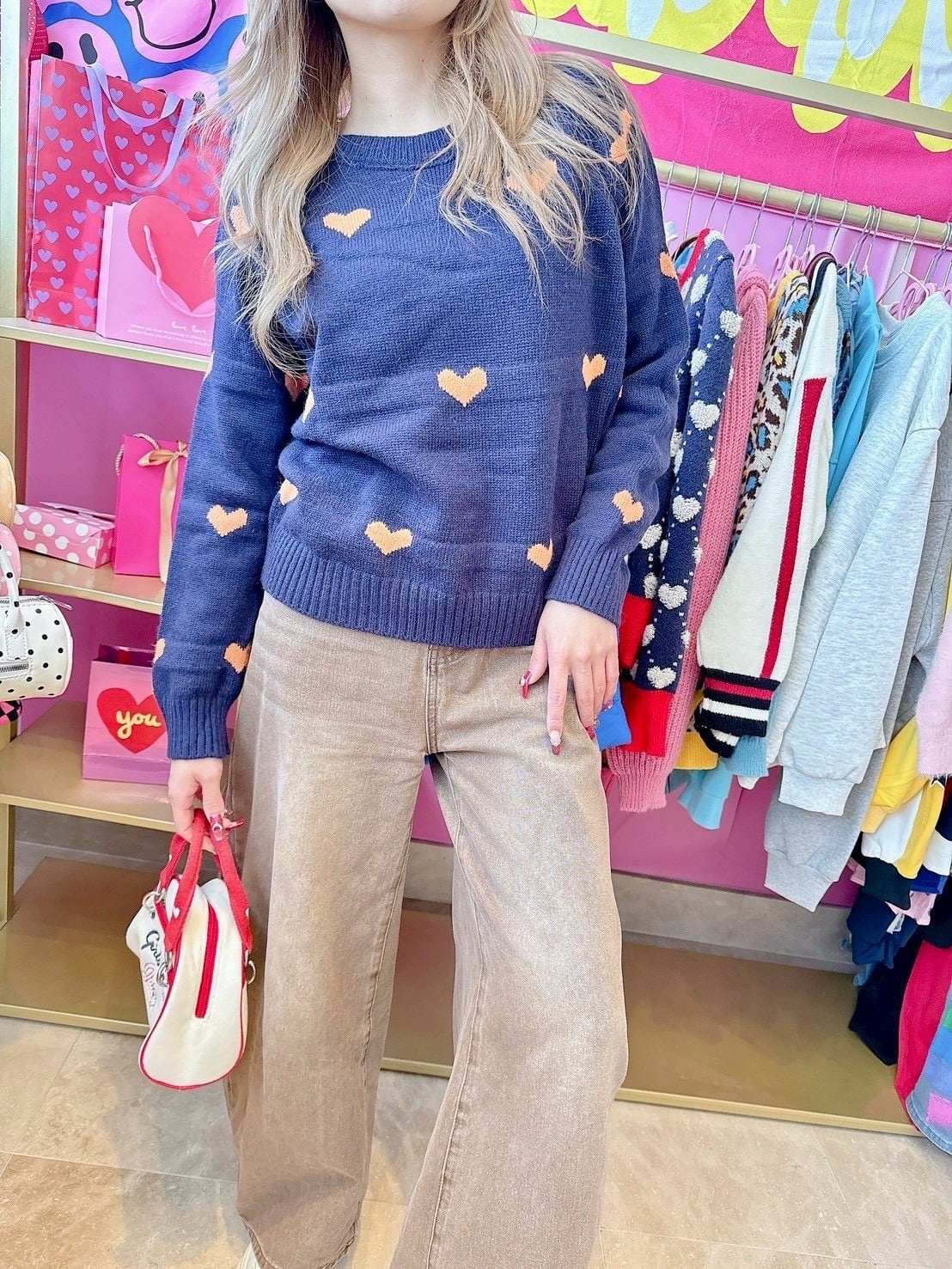Navyハートロゴニットトップス/韓国/レディースファッション/可愛い/おしゃれ/ラフ/カジュアル/大人/モノトーン/シンプル/冬(6-235)