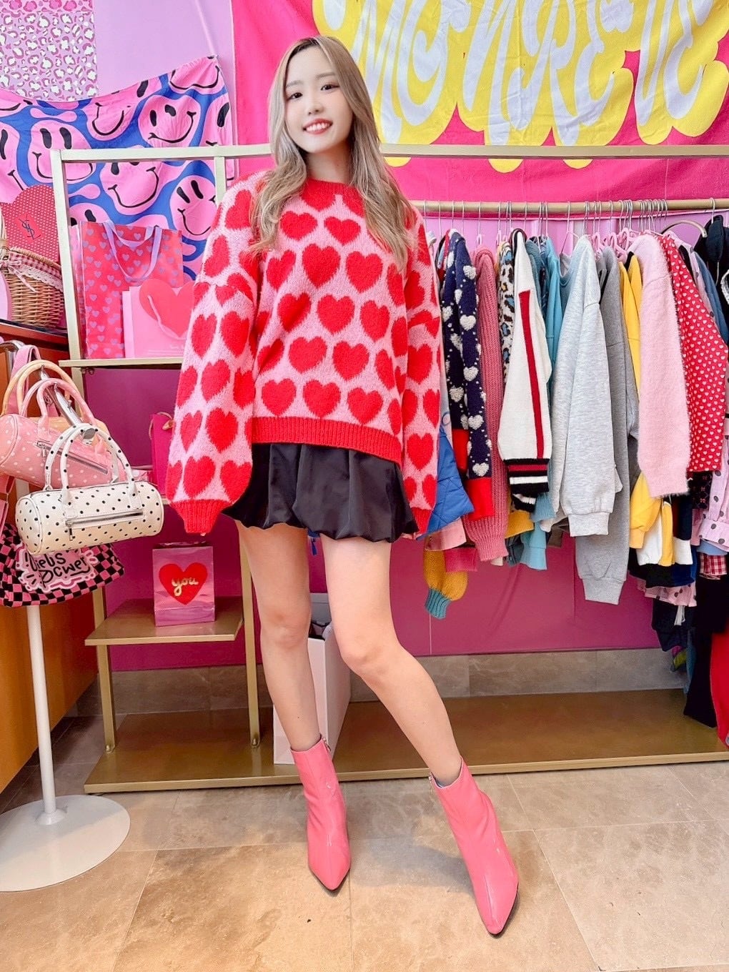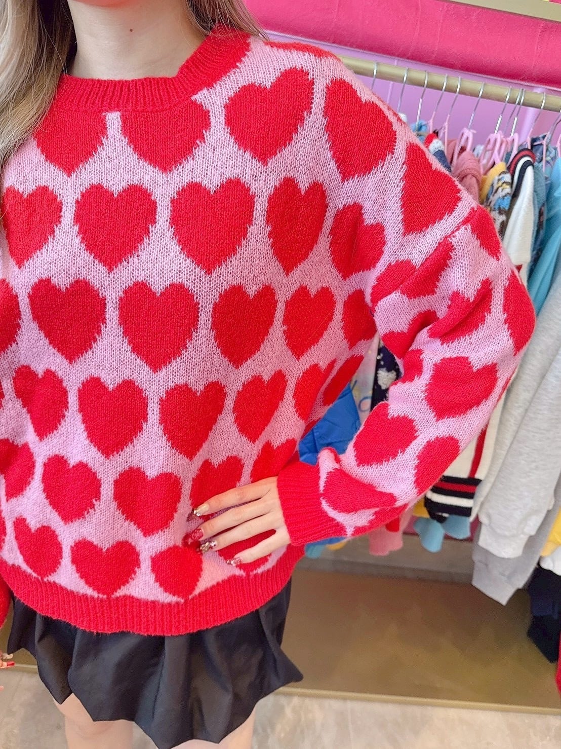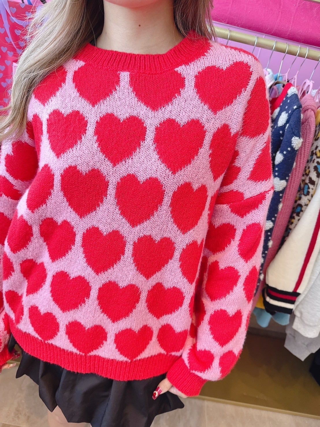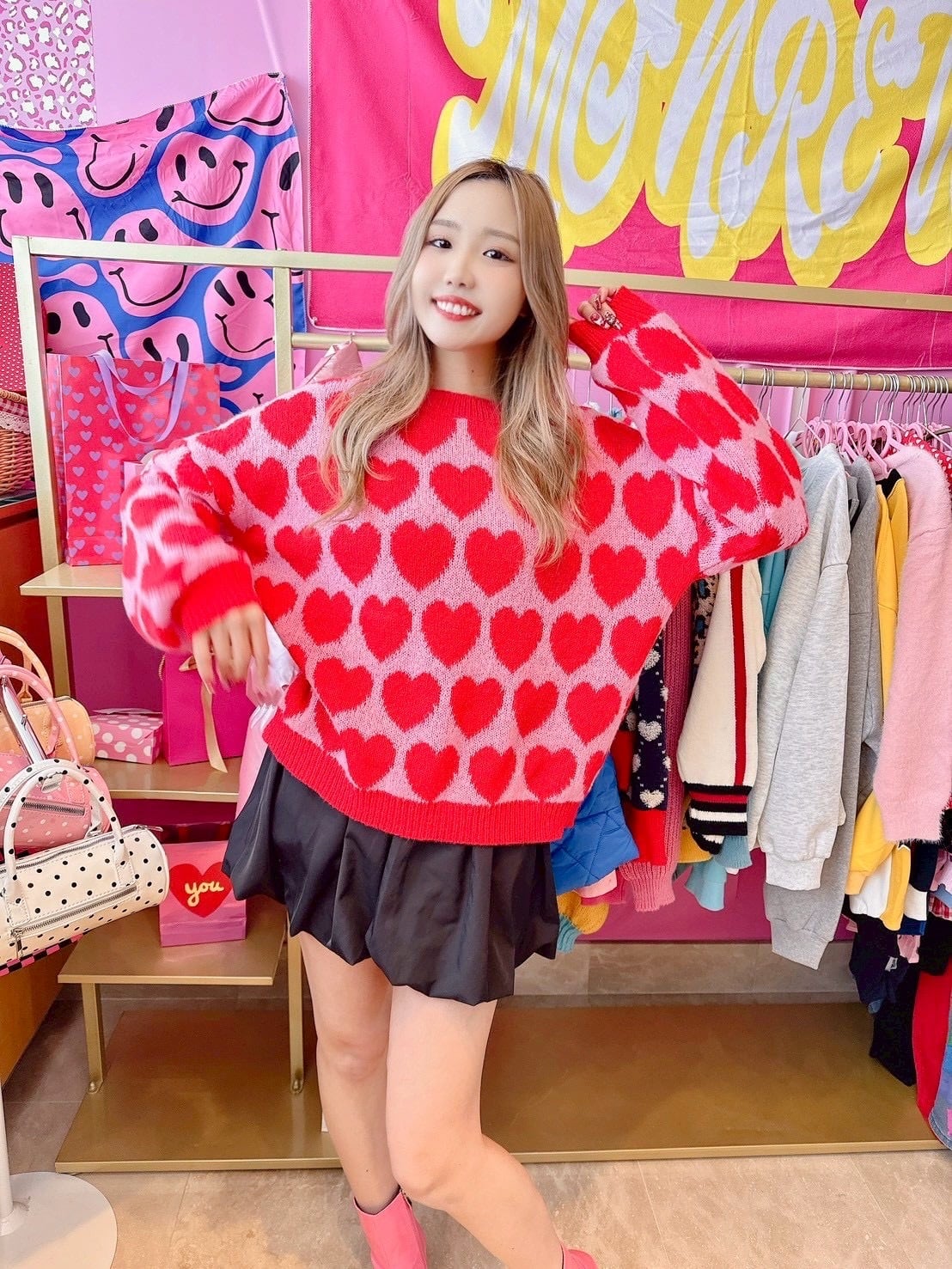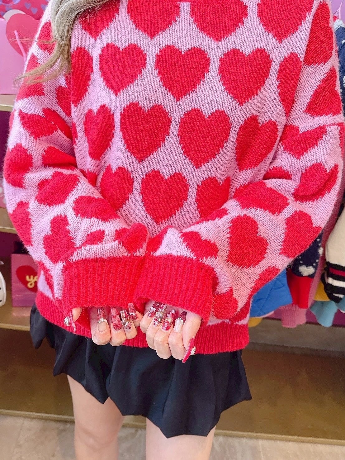 Redハートニットトップス/韓国/レディースファッション/可愛い/おしゃれ/ラフ/厚手/カジュアル/POP/女子/冬(6-234)