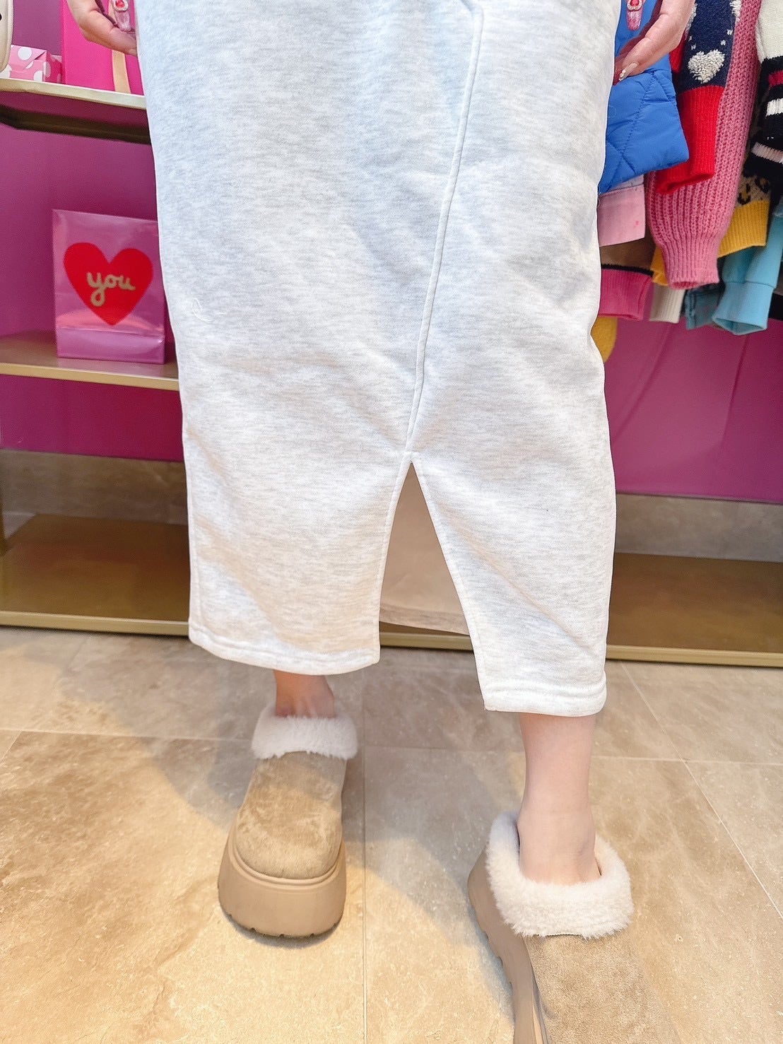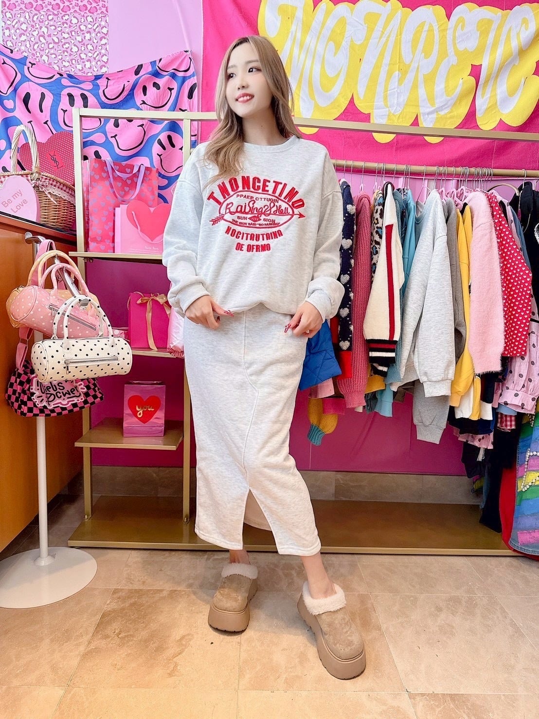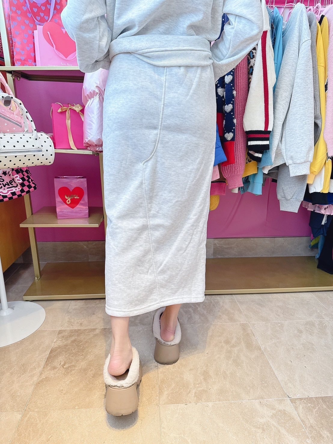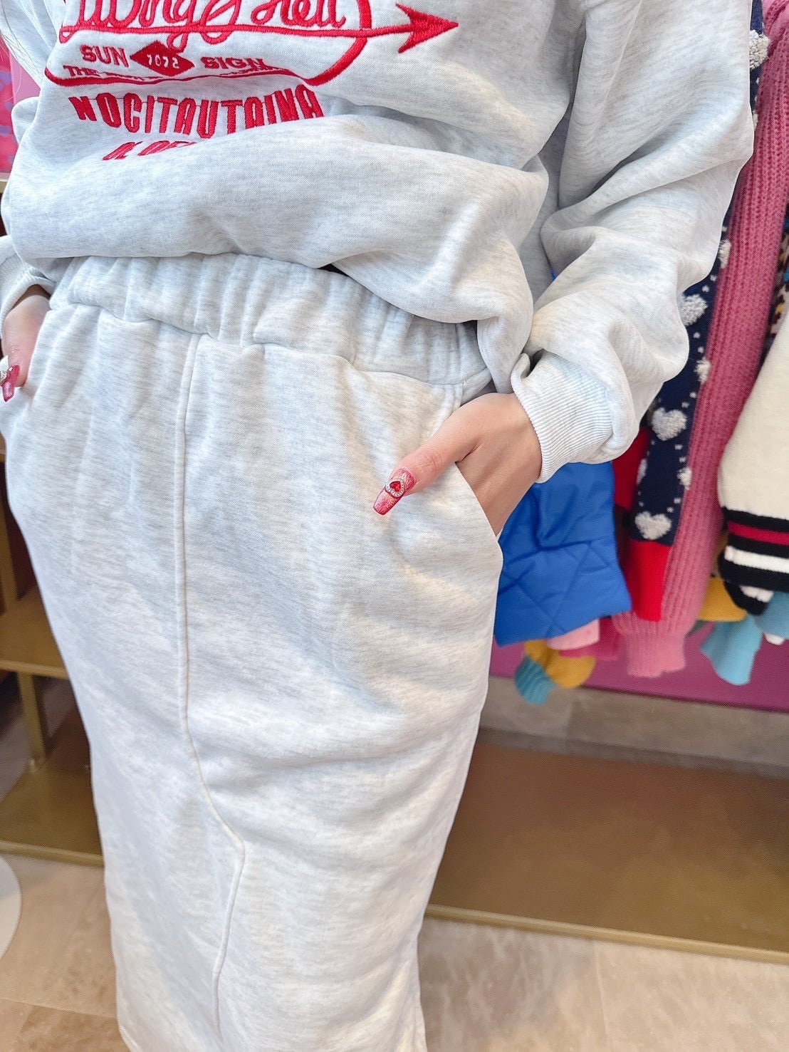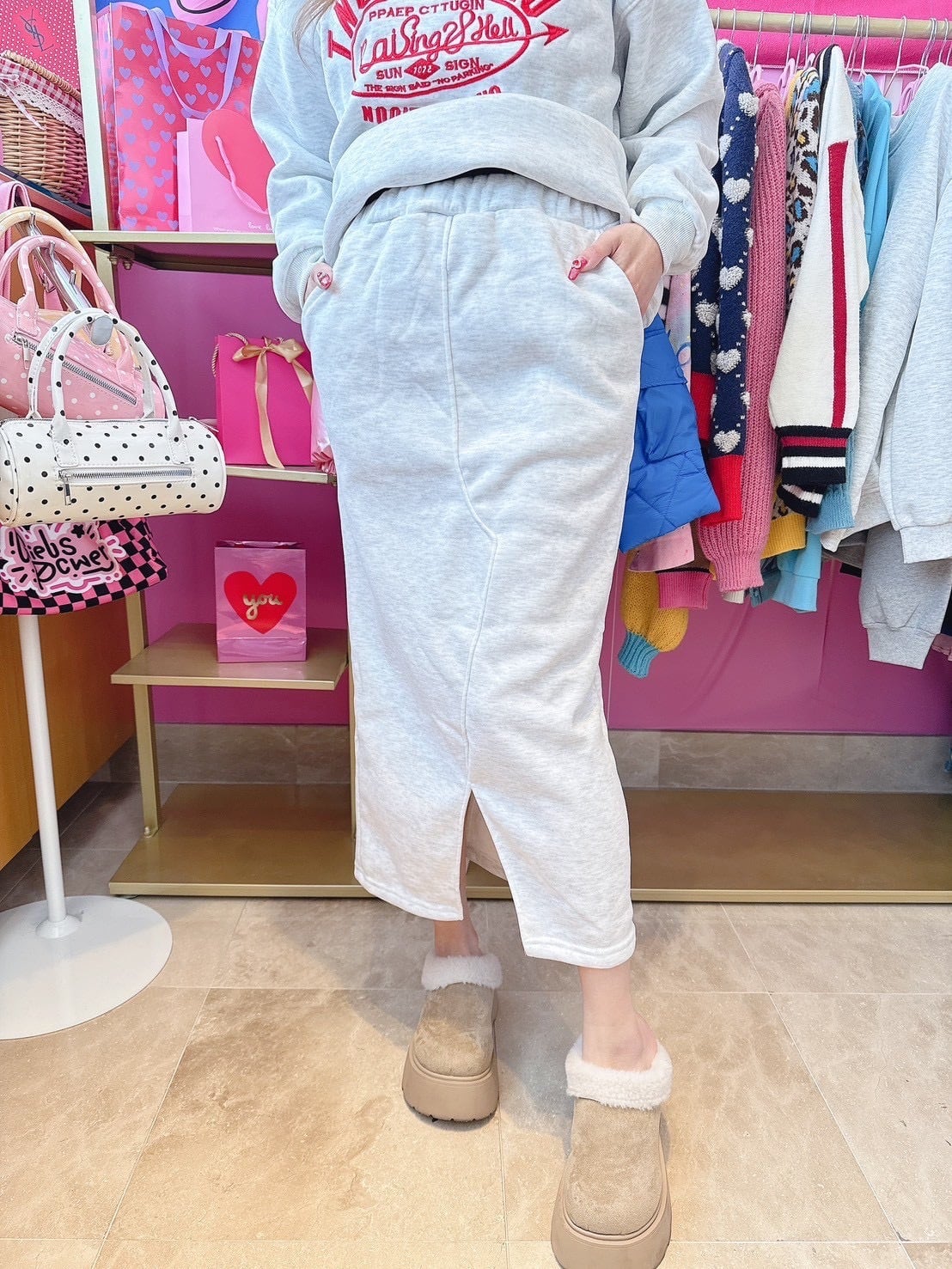 カジュアルロゴスカートセットアップ/裏起毛/韓国/レディースファッション/可愛い/おしゃれ/ラフ/カジュアル/大人女子/冬
