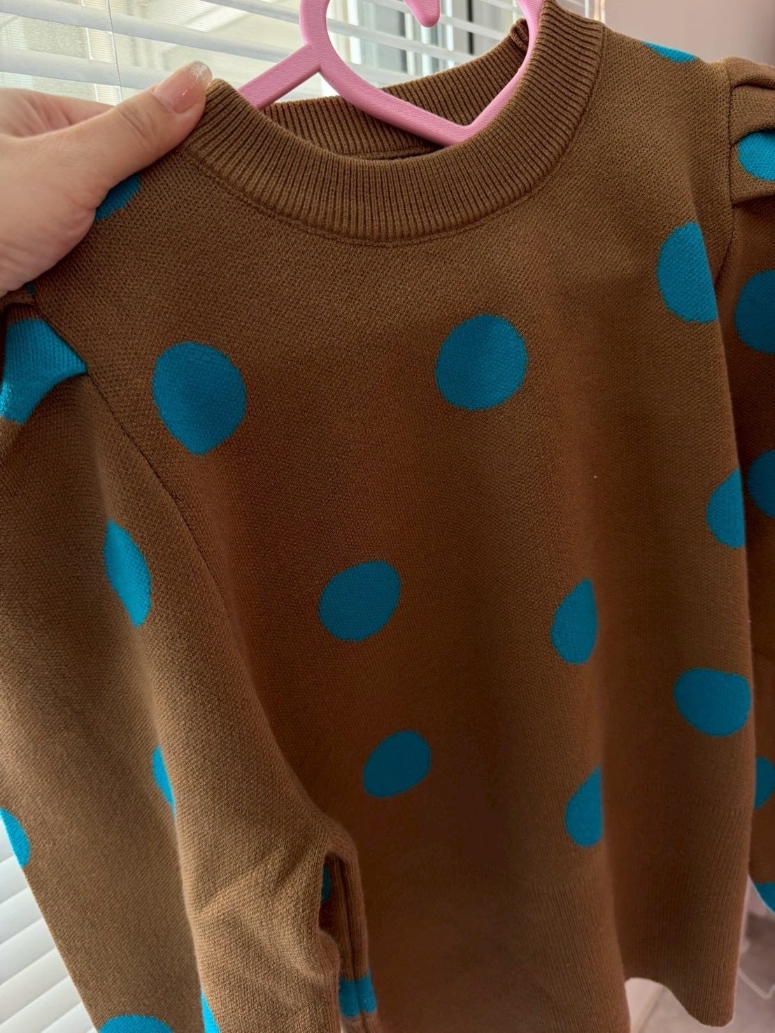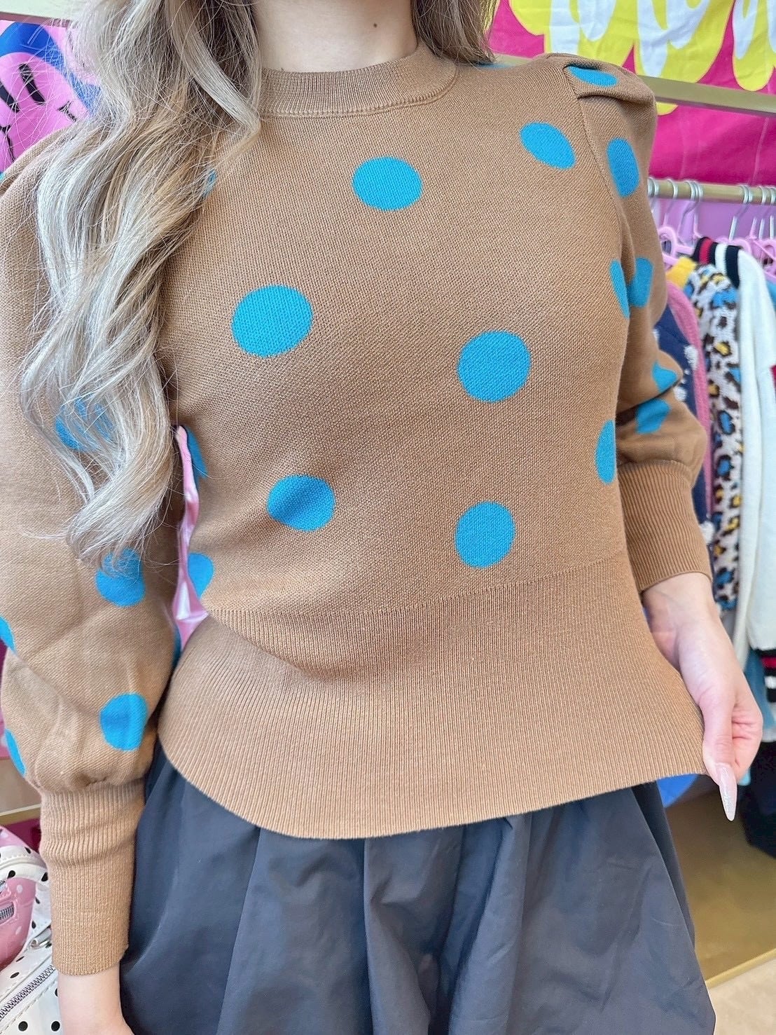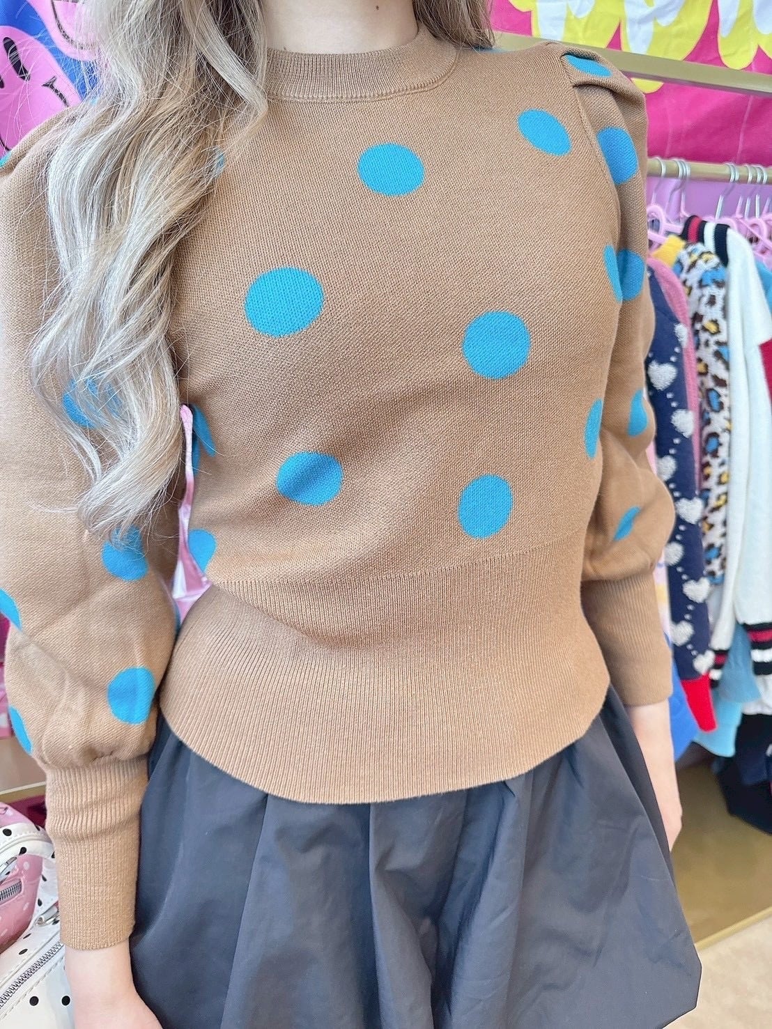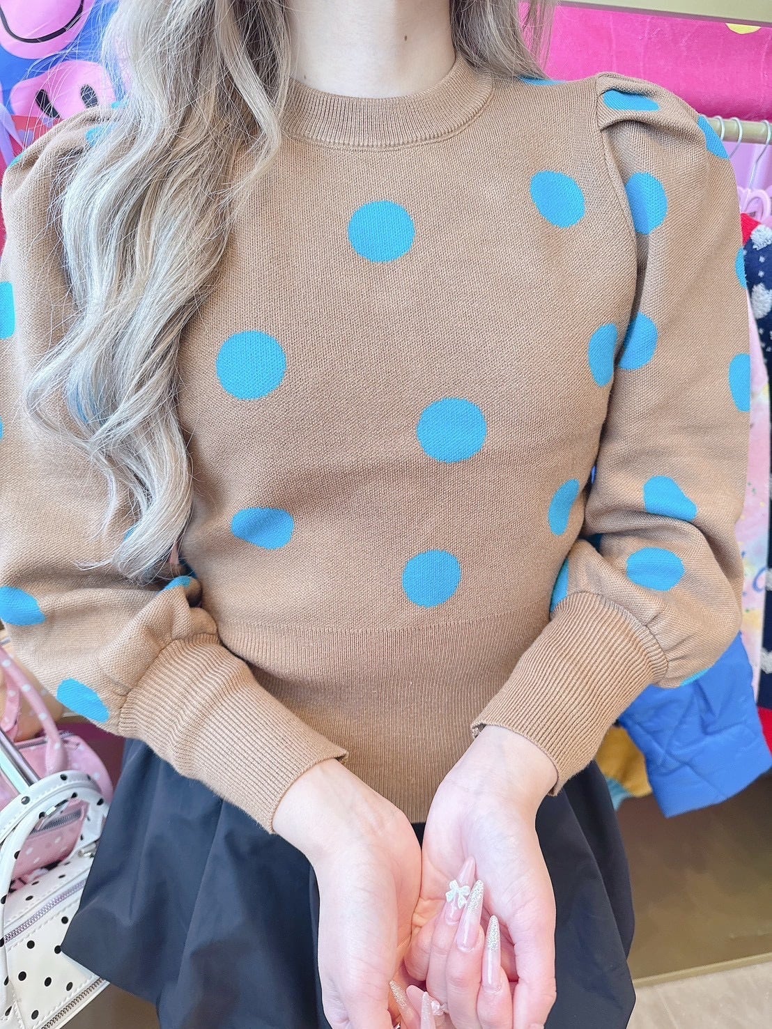 ドットパフスリーブニットトップス/韓国/レディースファッション/可愛い/おしゃれ/ラフ/カジュアル/上品/大人/秋/冬(6-239)