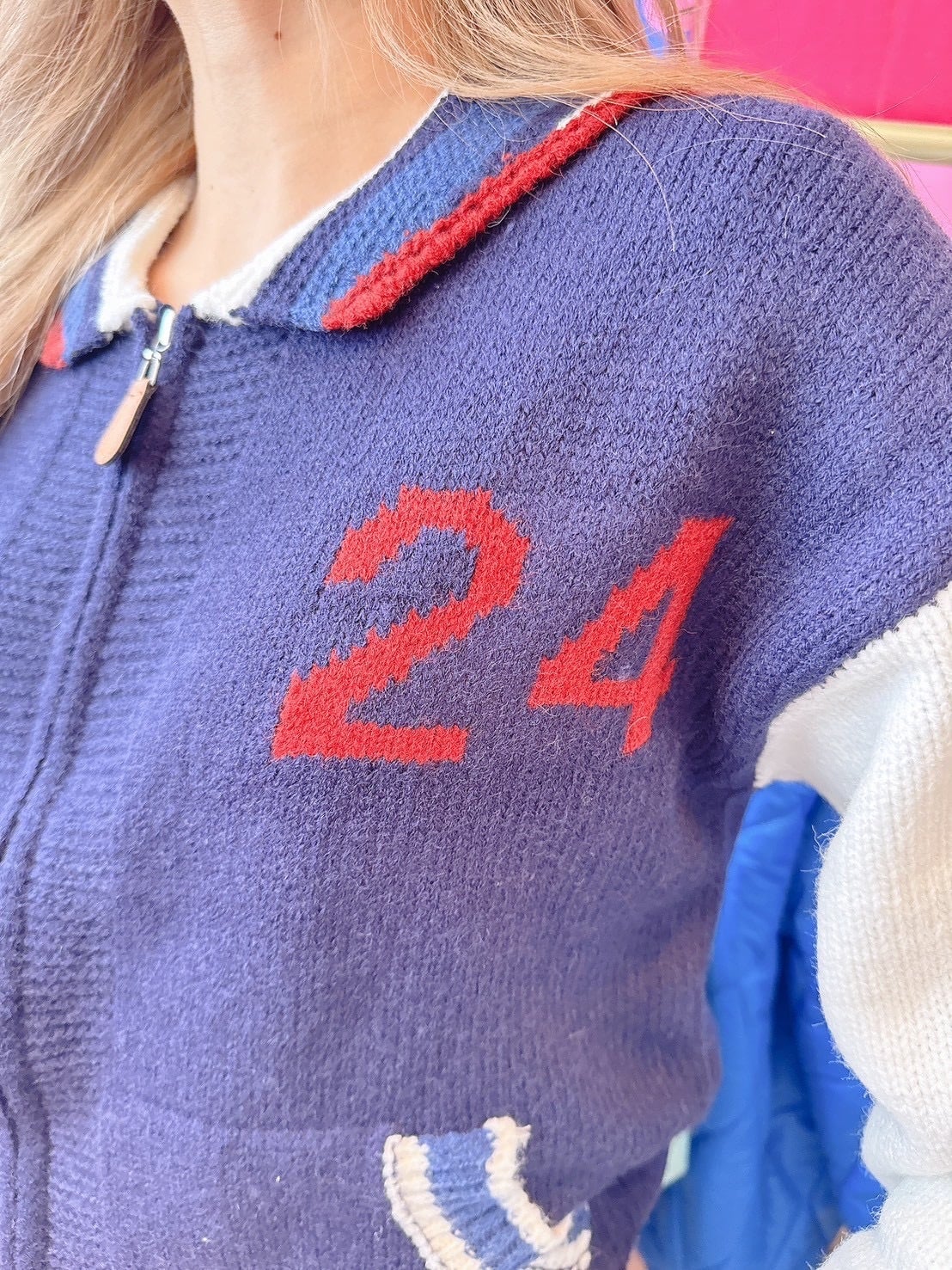 Navyカジュアルニットジャケット/韓国/レディースファッション/可愛い/おしゃれ/ラフ/フロントジッパー/アメリカン/秋/冬(1-193)