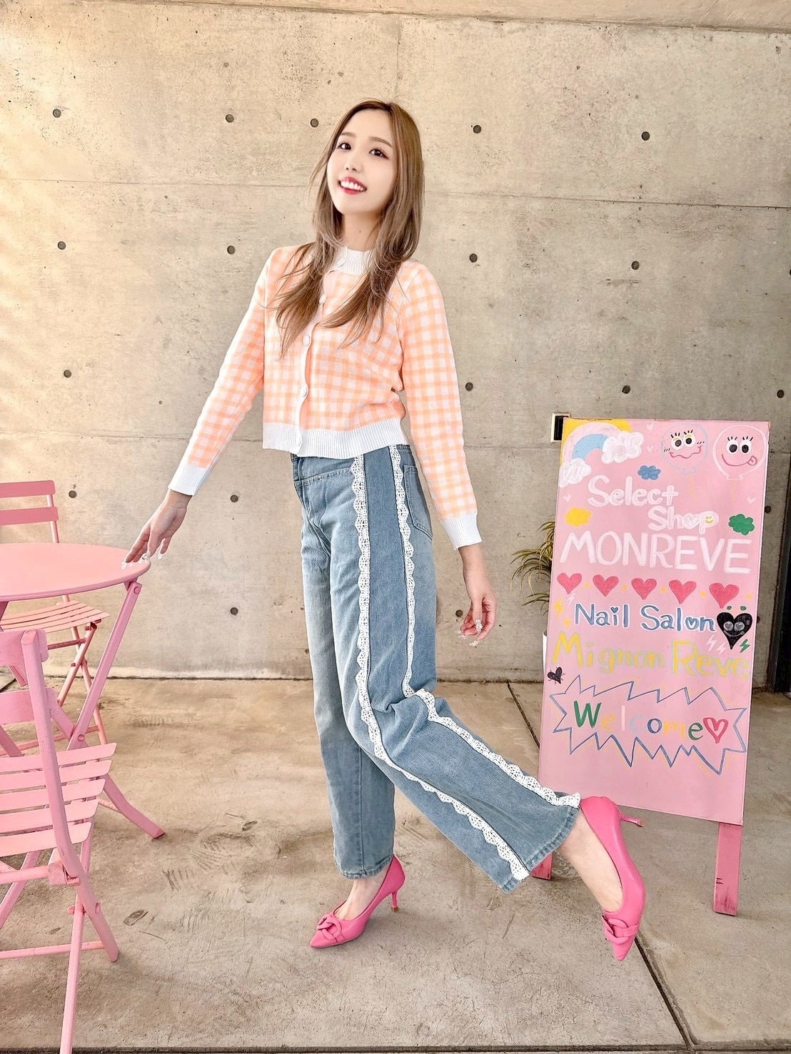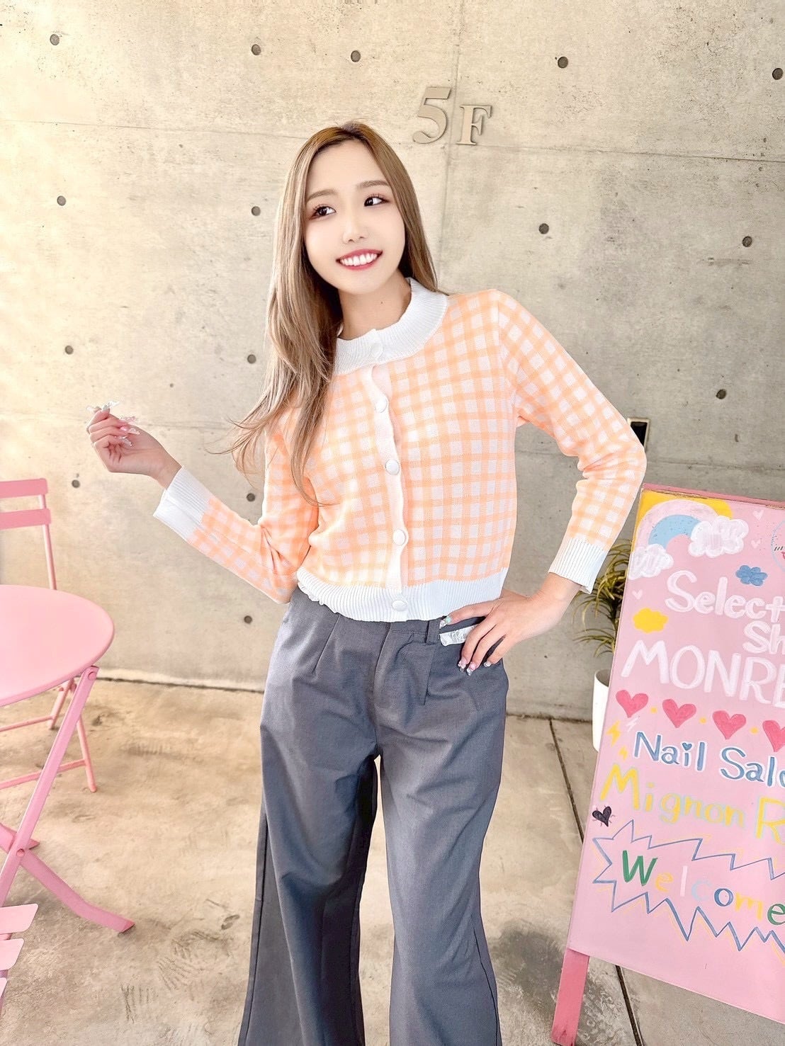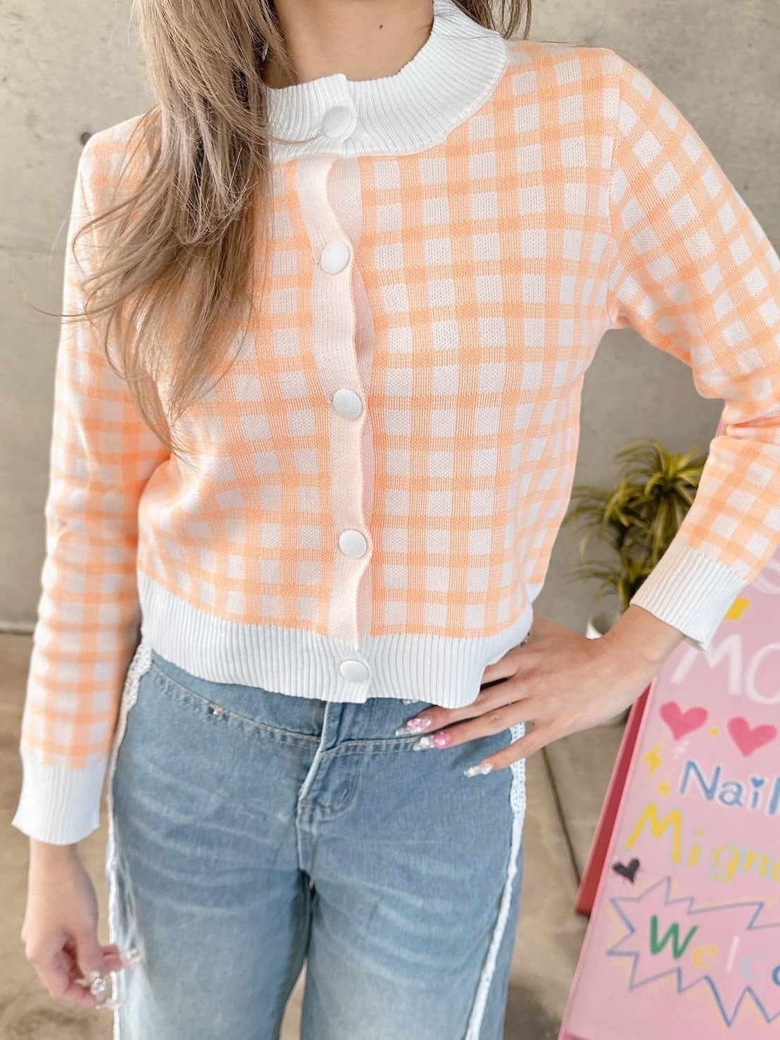 オシャレさと可愛さのあるチェック柄カーデ♡