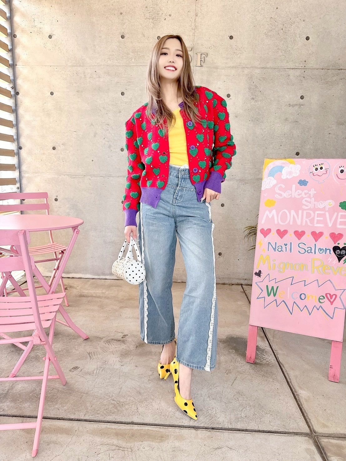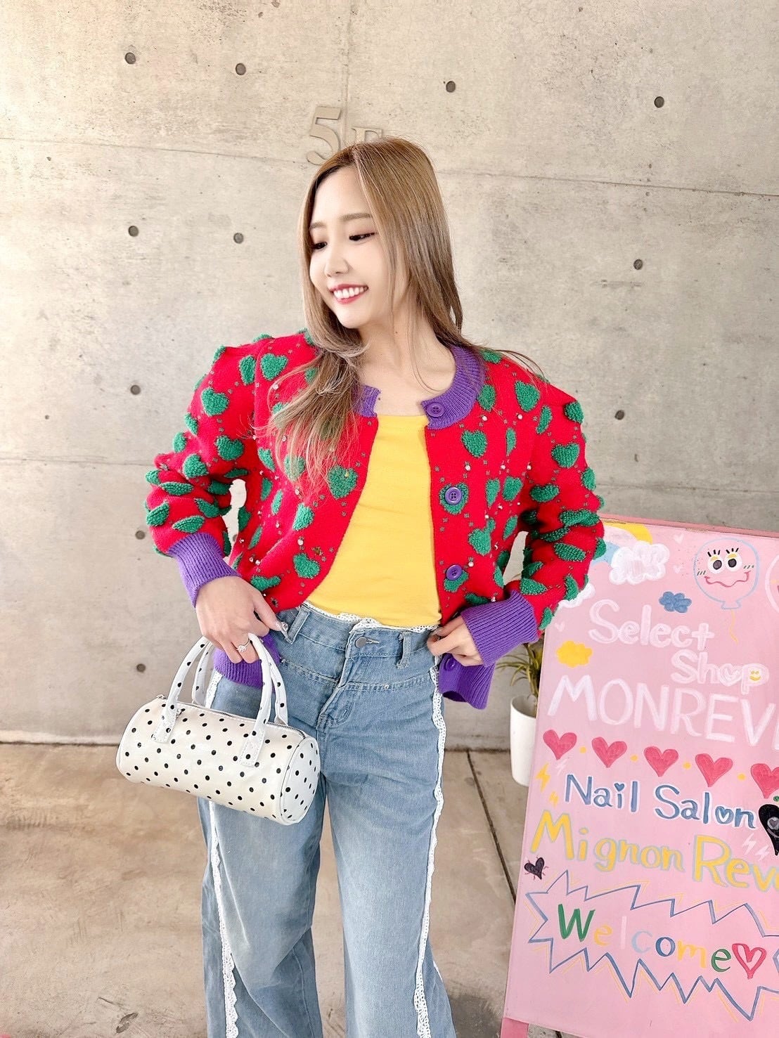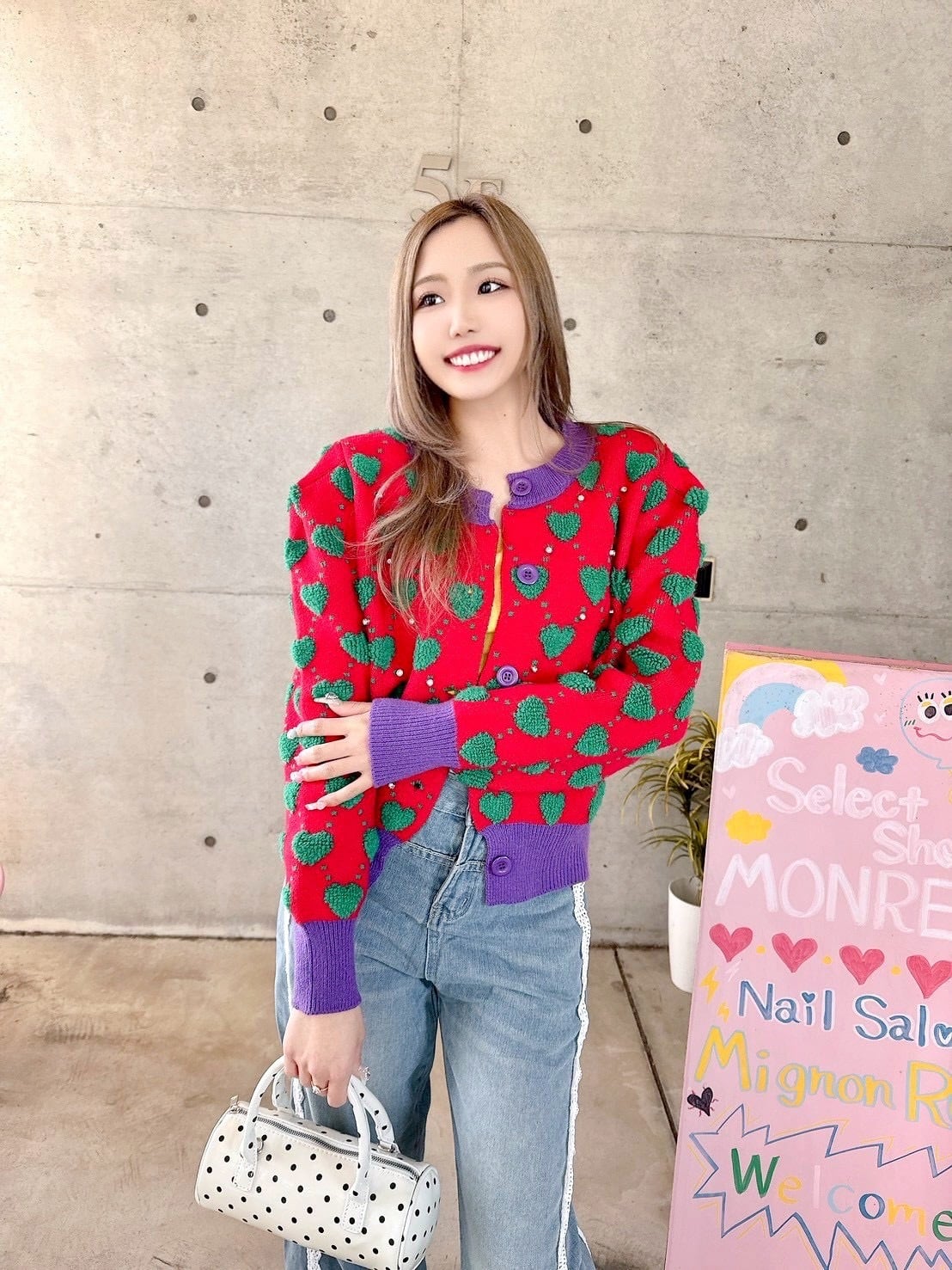 奇抜な配色でオシャレ感あるカーデ♡
