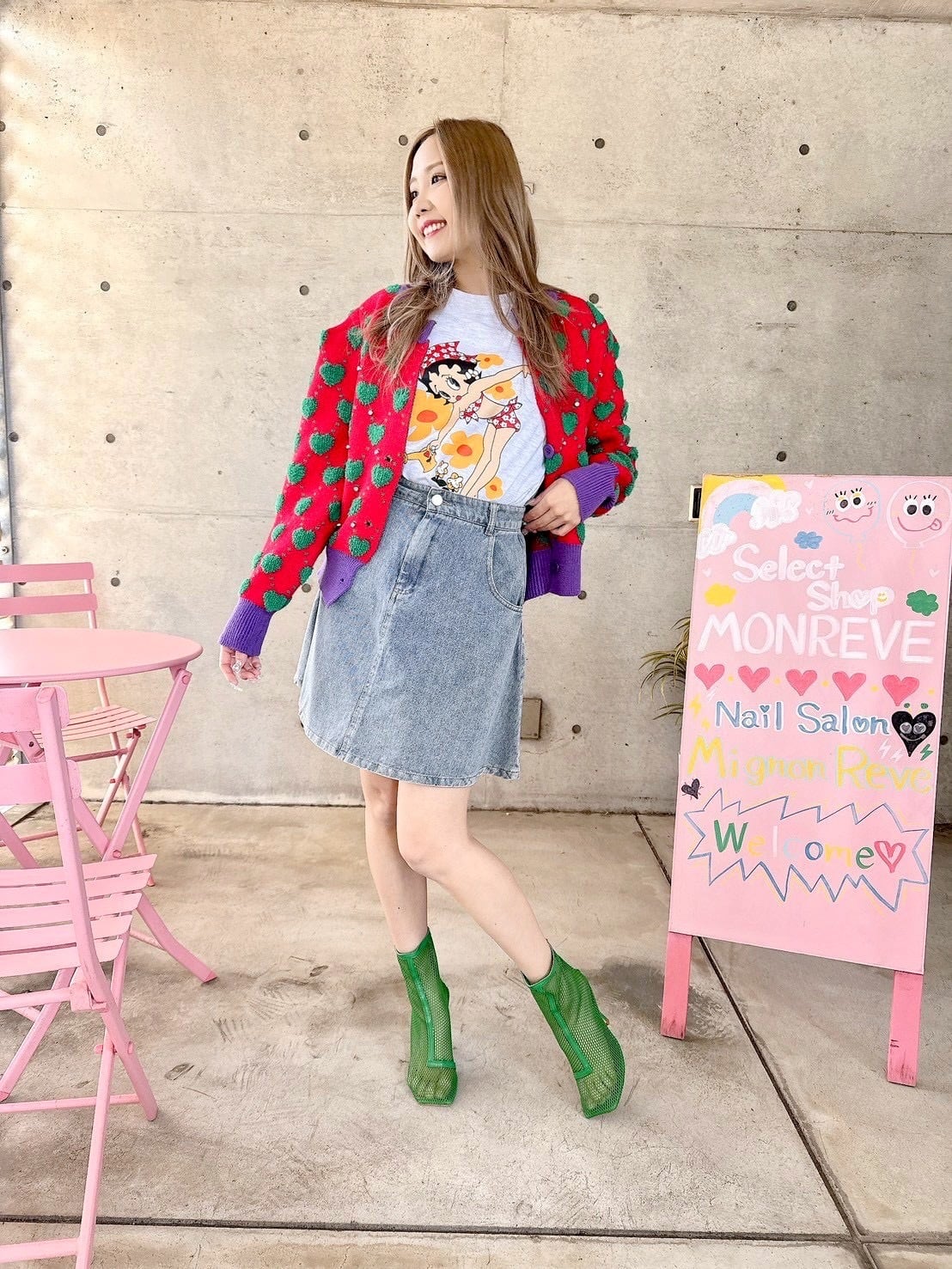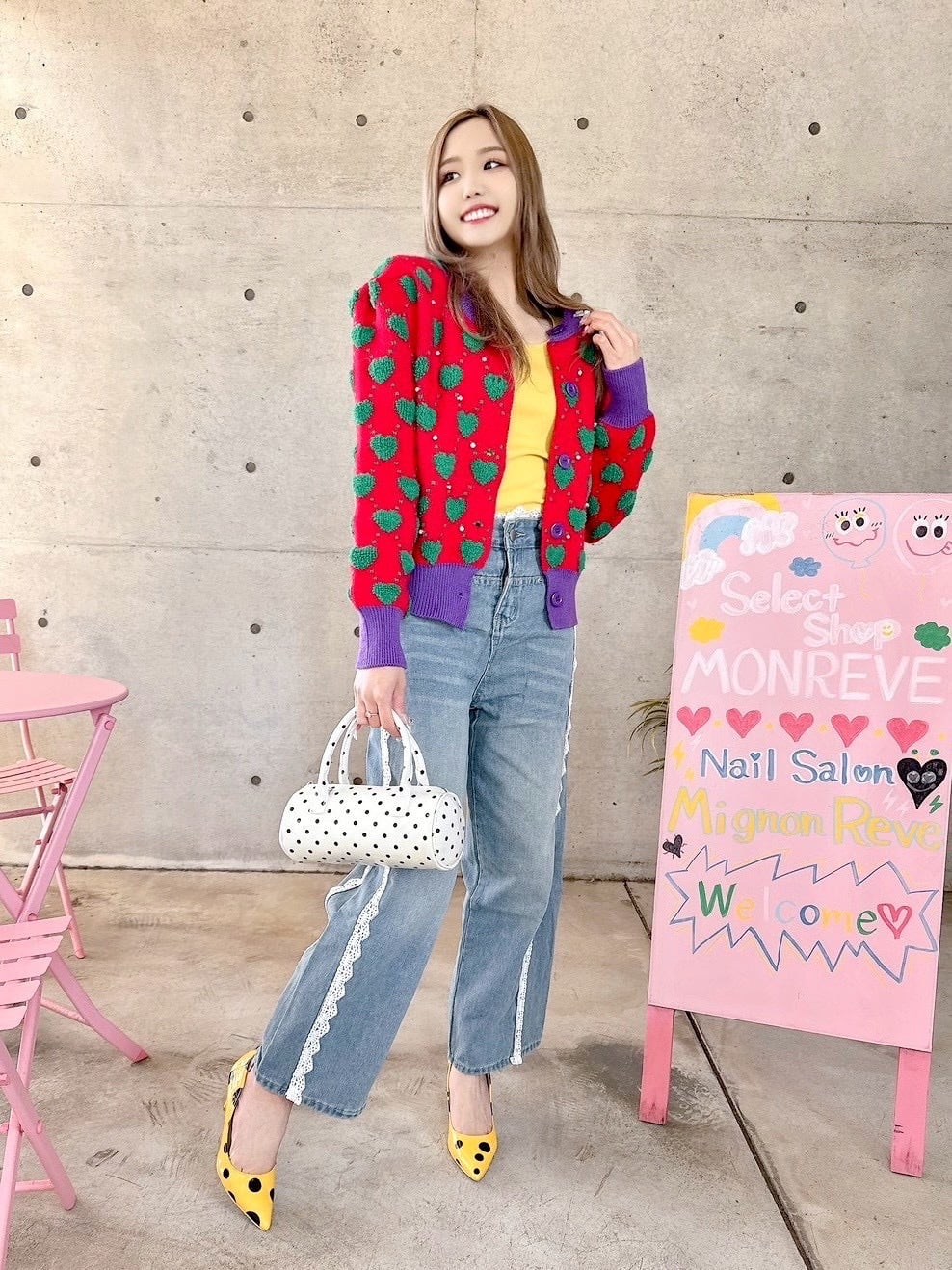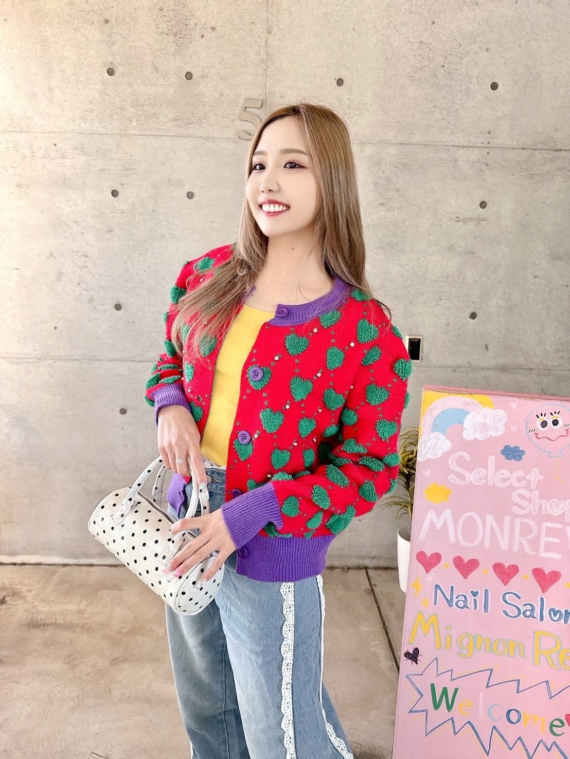 奇抜な配色でオシャレ感あるカーデ♡