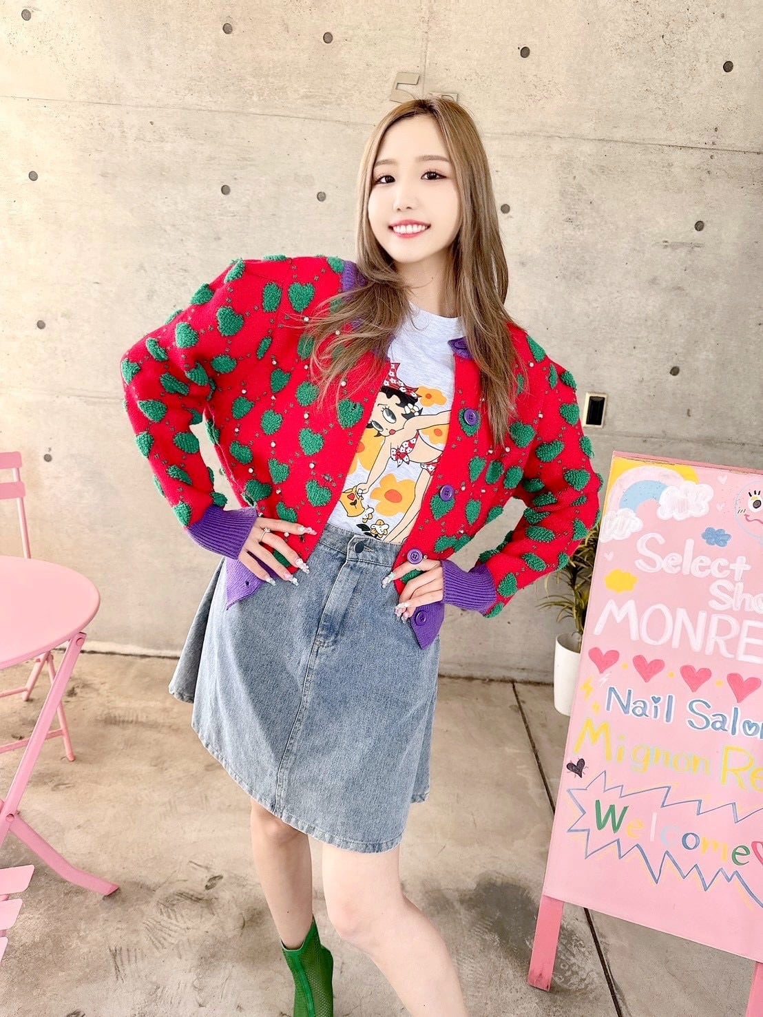 厚みのあるカーデでトップスとしても