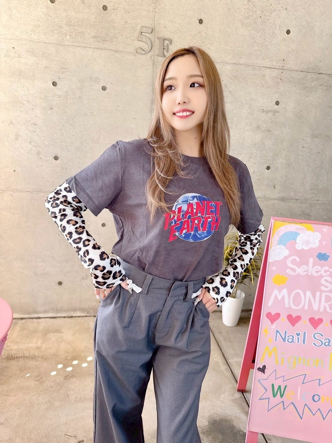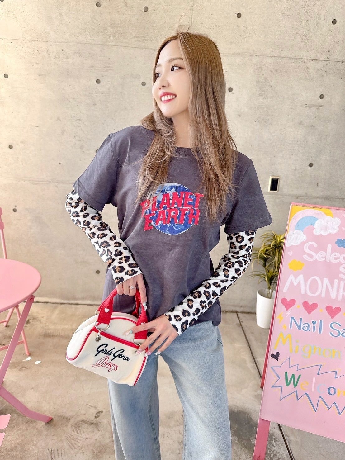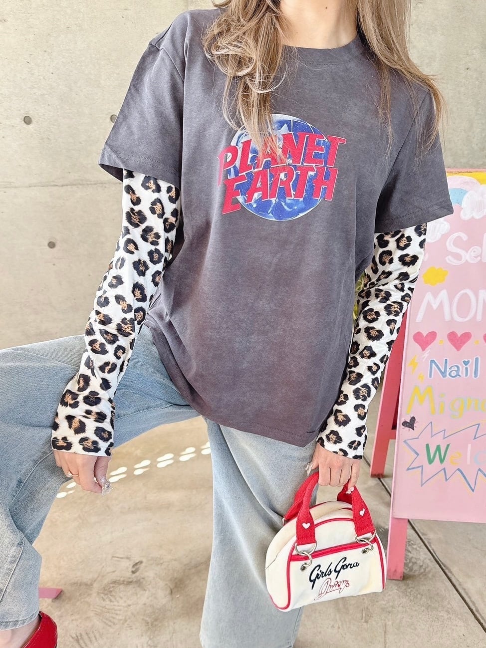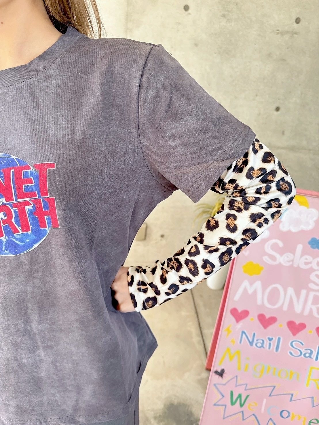 ロゴとレオパード柄の袖がカジュアルスタイルにピッタリ♡
