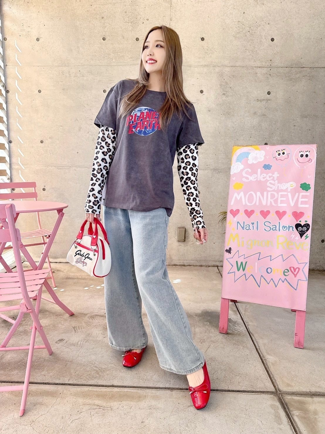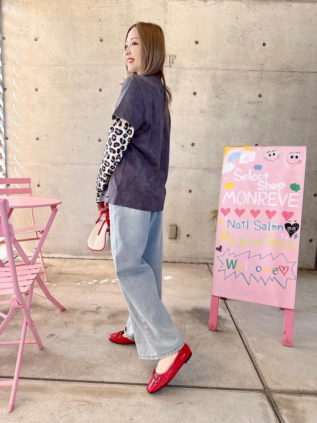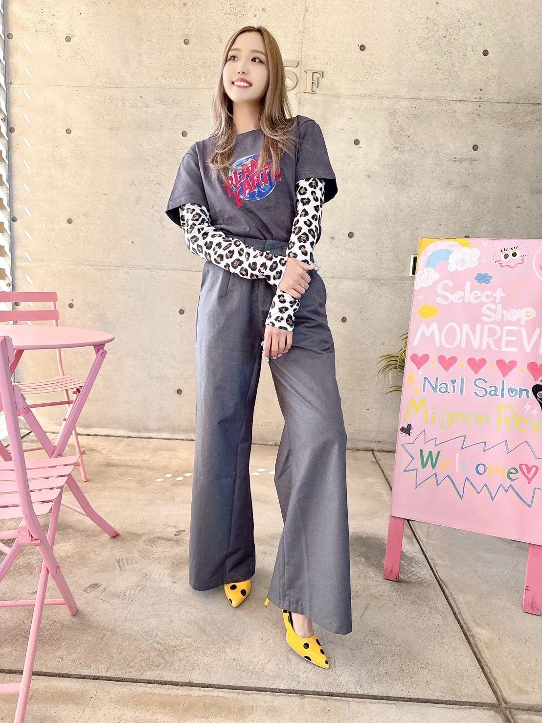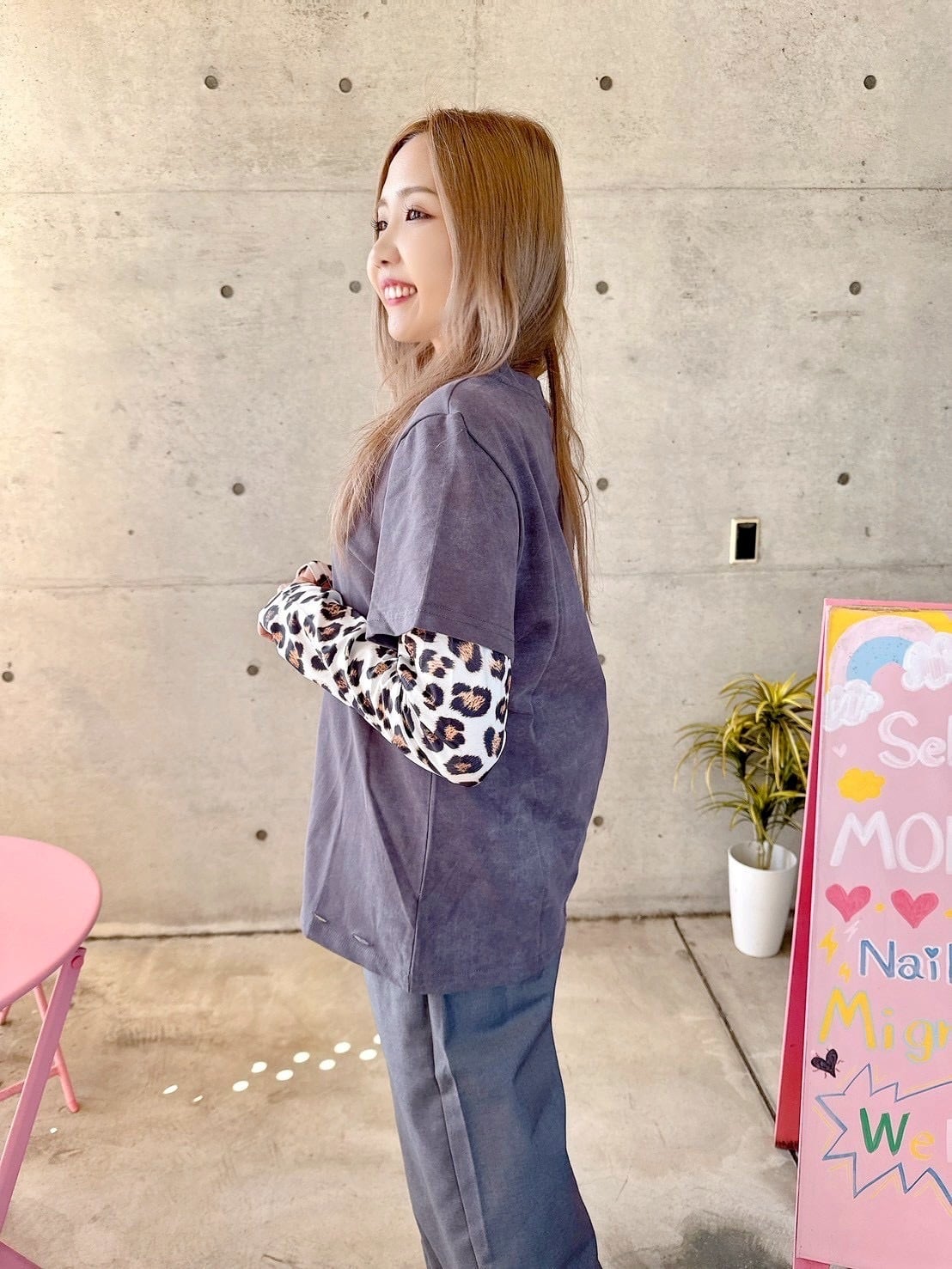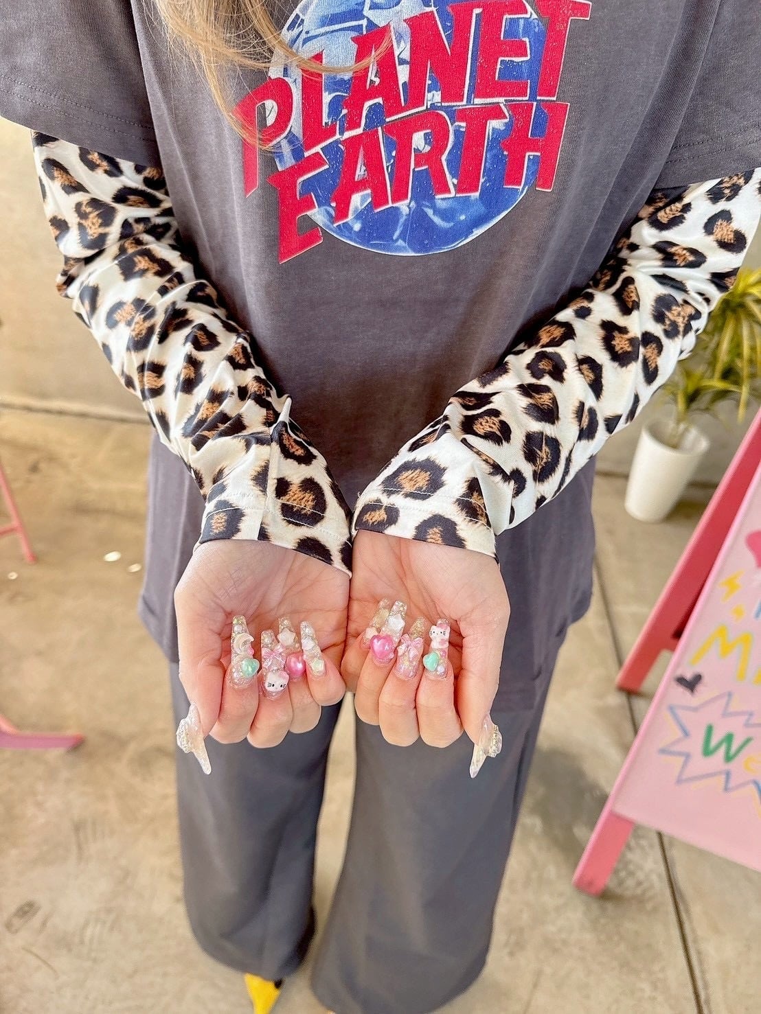 ロゴとレオパード柄の袖がカジュアルスタイルにピッタリ♡