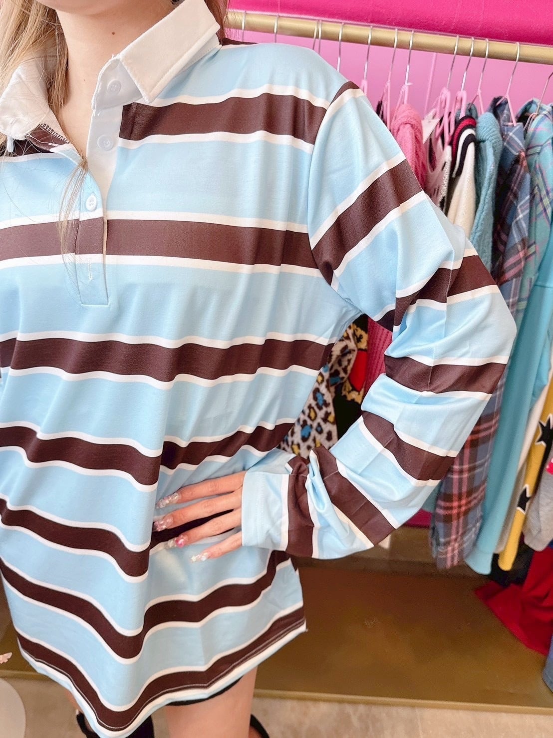 カジュアルボーダーポロシャツ♡韓国/レディースファッション/可愛い/おしゃれ/ラフ/可愛い/カジュアル/ストライプ/ボーダー/(6-242)